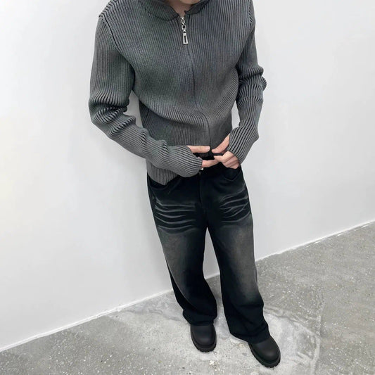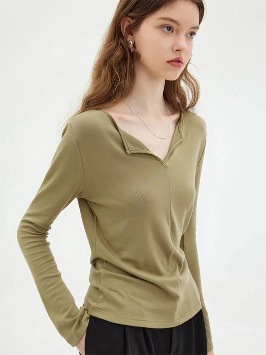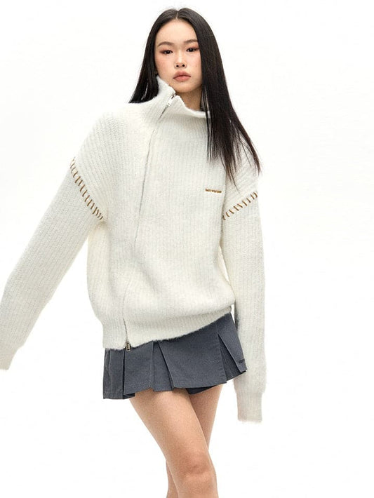 Color Block Print Knit Asymmetrical Long-Sleeve Top