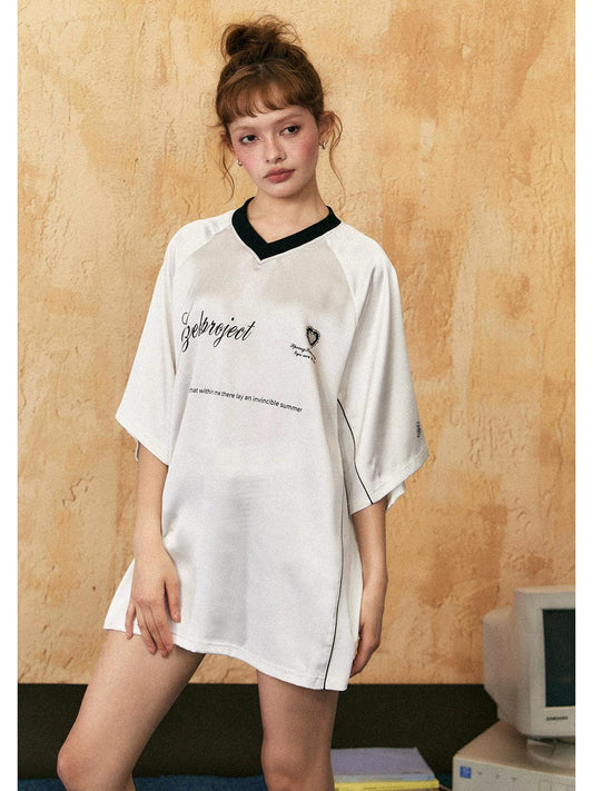 Ezek Feelproject Oversized Graphic T-Shirt - Unisex V-Neck Jersey With Contrast Trim And Logo Print