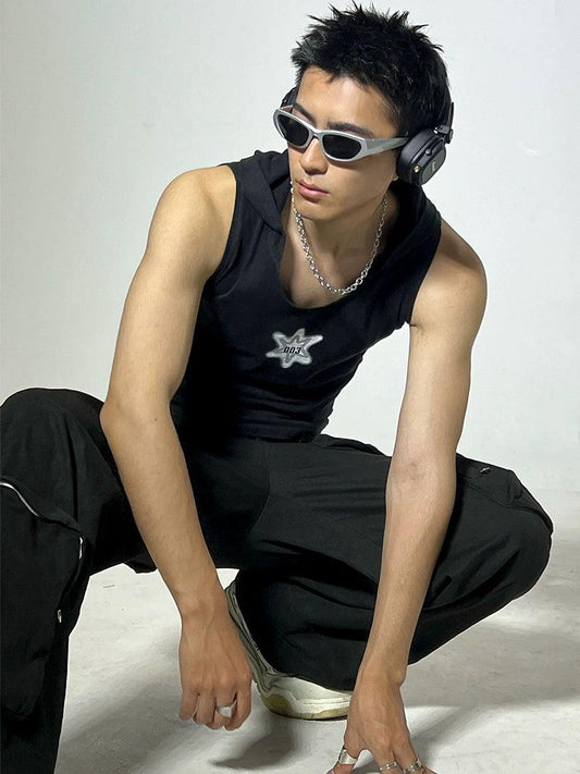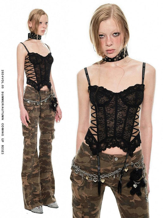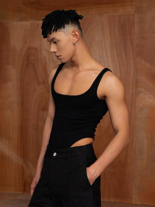 Devil Fashion Grunge Punk Distressed Tank Top - Black with Side Lace-Up and Ripped Details