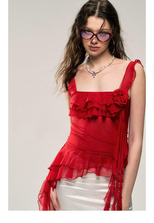 No Romance Floral Handkerchief Hem Camisole - Women'S Lace Trim Asymmetrical Tank Top