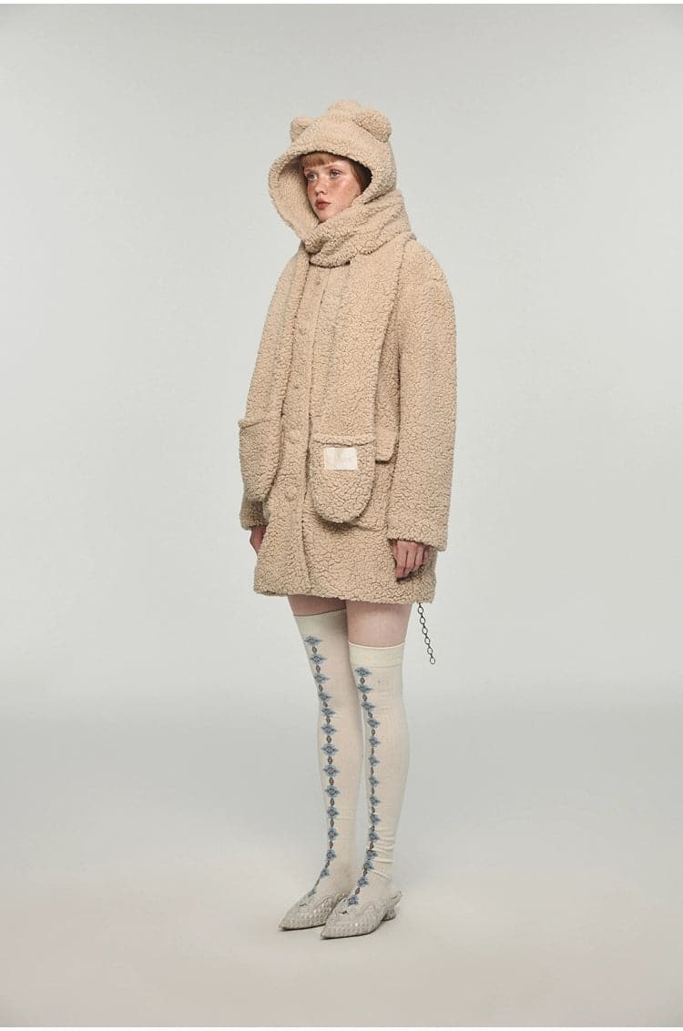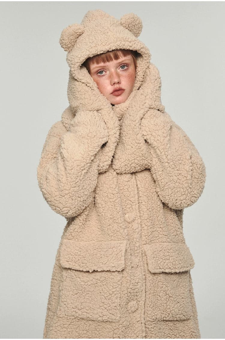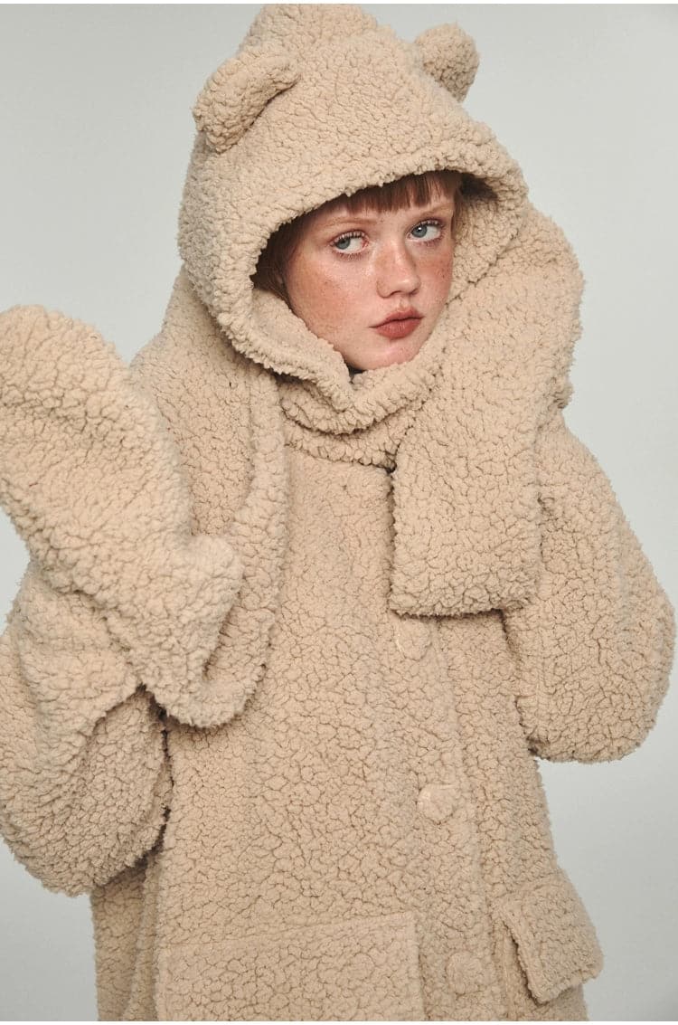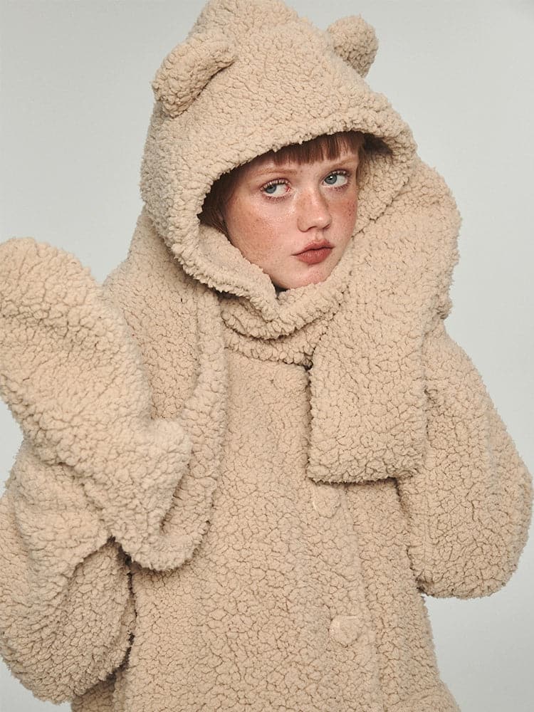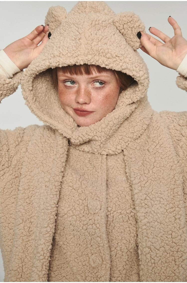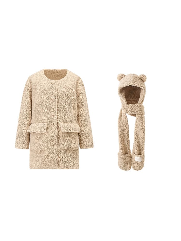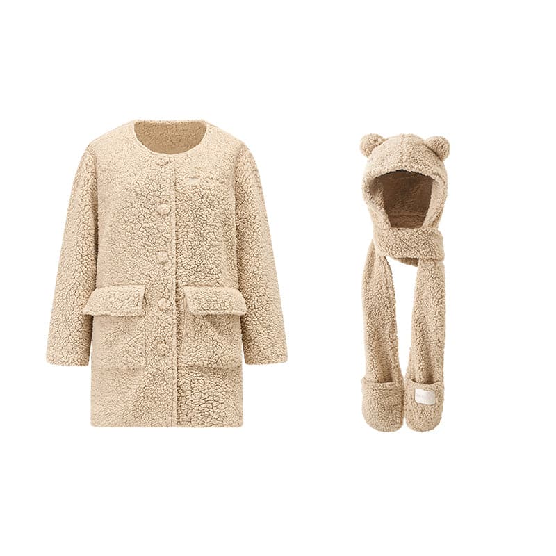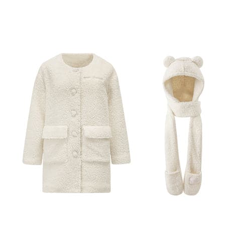 1Jinn Classic Regular Pajamas Set With Straight Cut Home Suit, Plush Jacket And Teddy Bear Ear Hat
