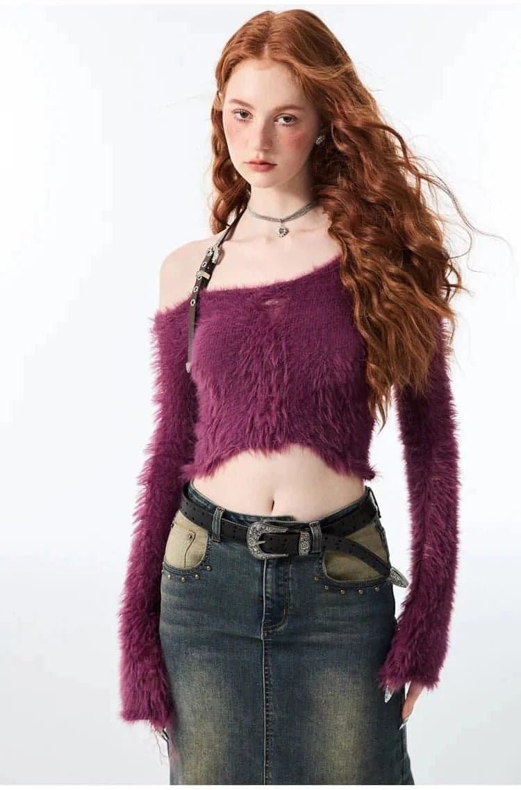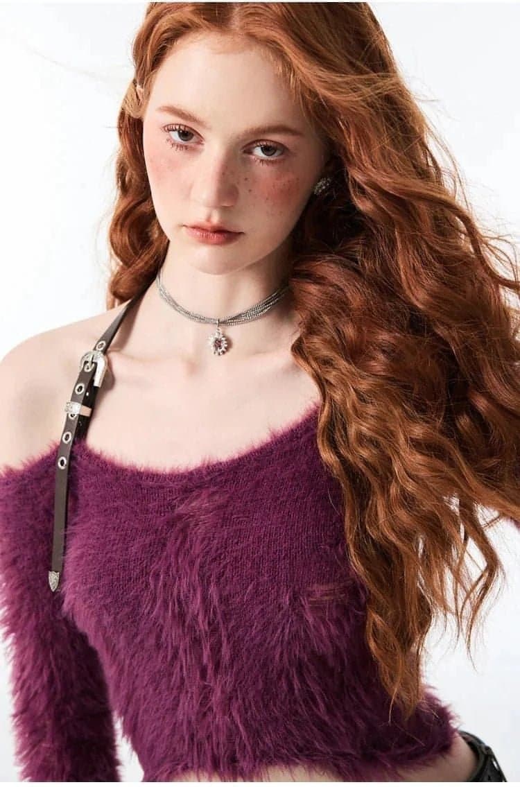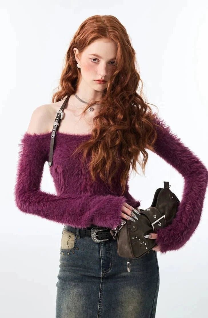 Make a statement in 1Jinn's Leather Halter Off Shoulder Knitwear! Featuring a halter neckline and off-the-shoulder silhouette. this one-of-a-kind design gives a fresh take on knitwear for a look that'll have you standing out from the crowd! Perfect for adding a dose of sass and style to any look. Who said knitwear has to be boring?