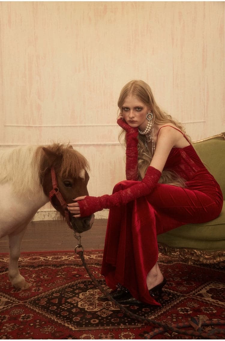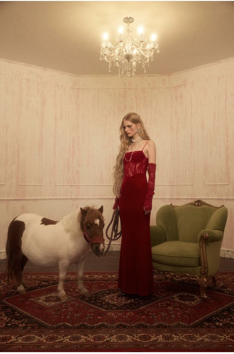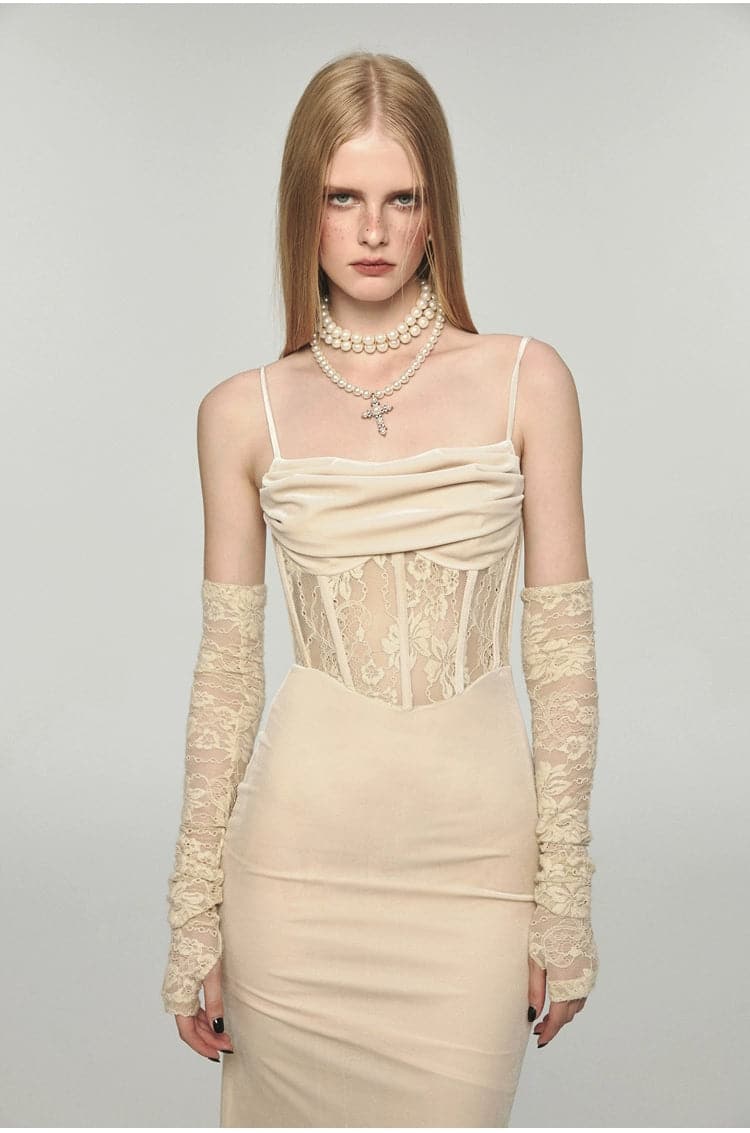 1Jinn Velvet Dress With Fishbone Straps