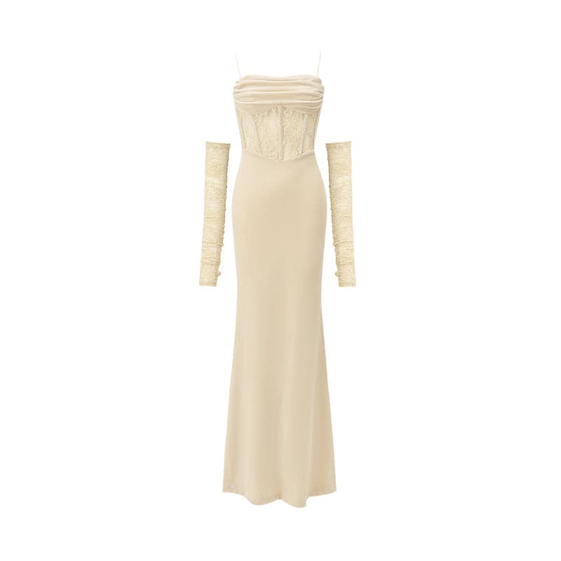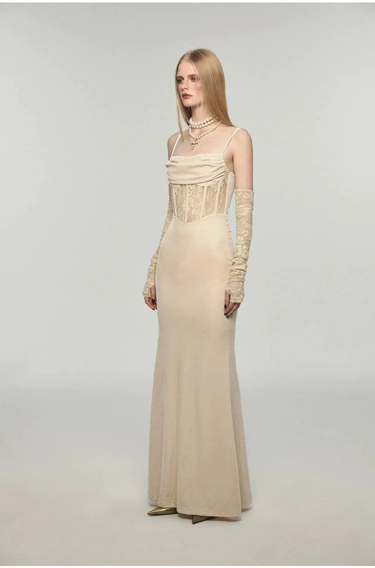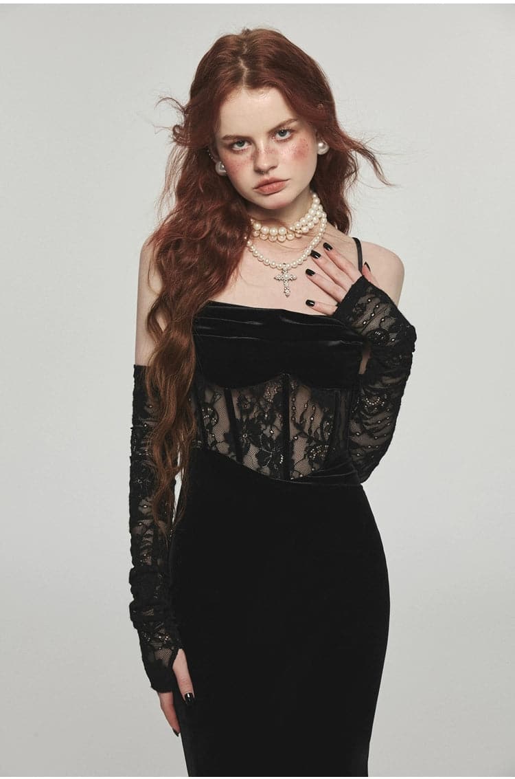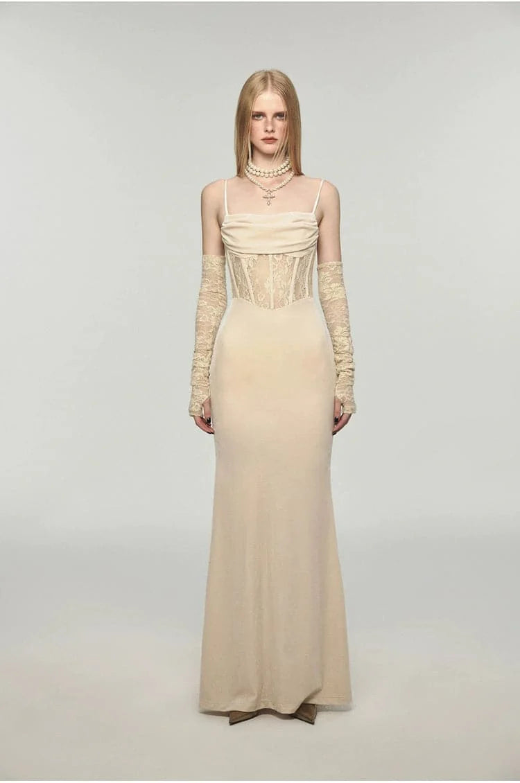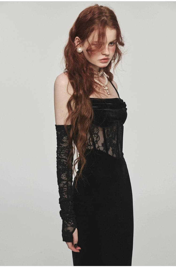This long velvet dress with its unique fishbone strap design exudes elegance. The slim. Hip-hugging silhouette offers a flattering fit. making it the perfect choice for any festive or formal event.