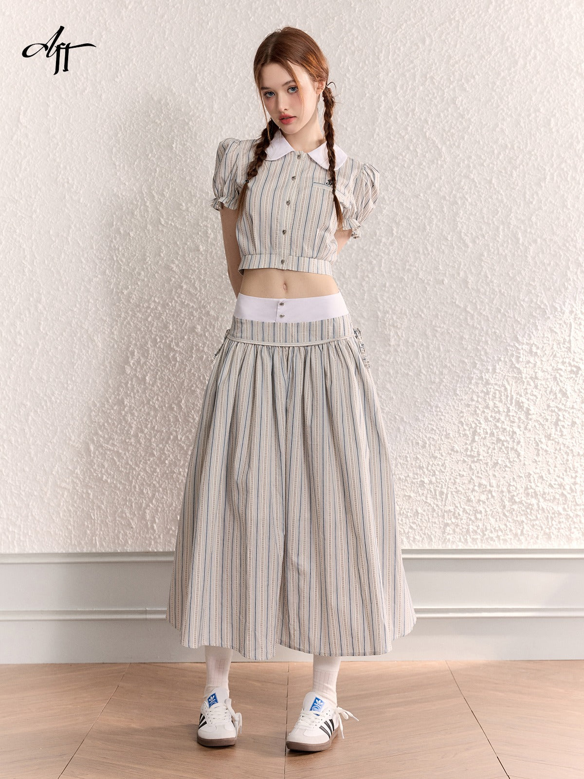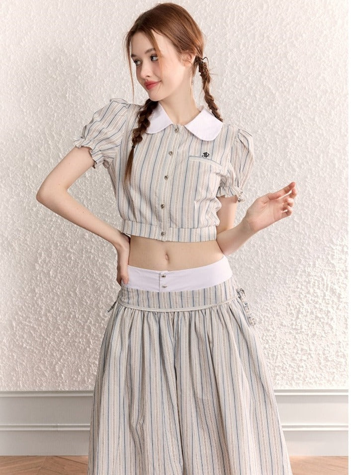 Original Doll Collar Shirt Maxi Dress Set-Up