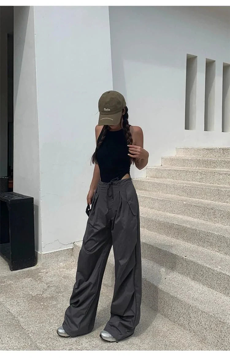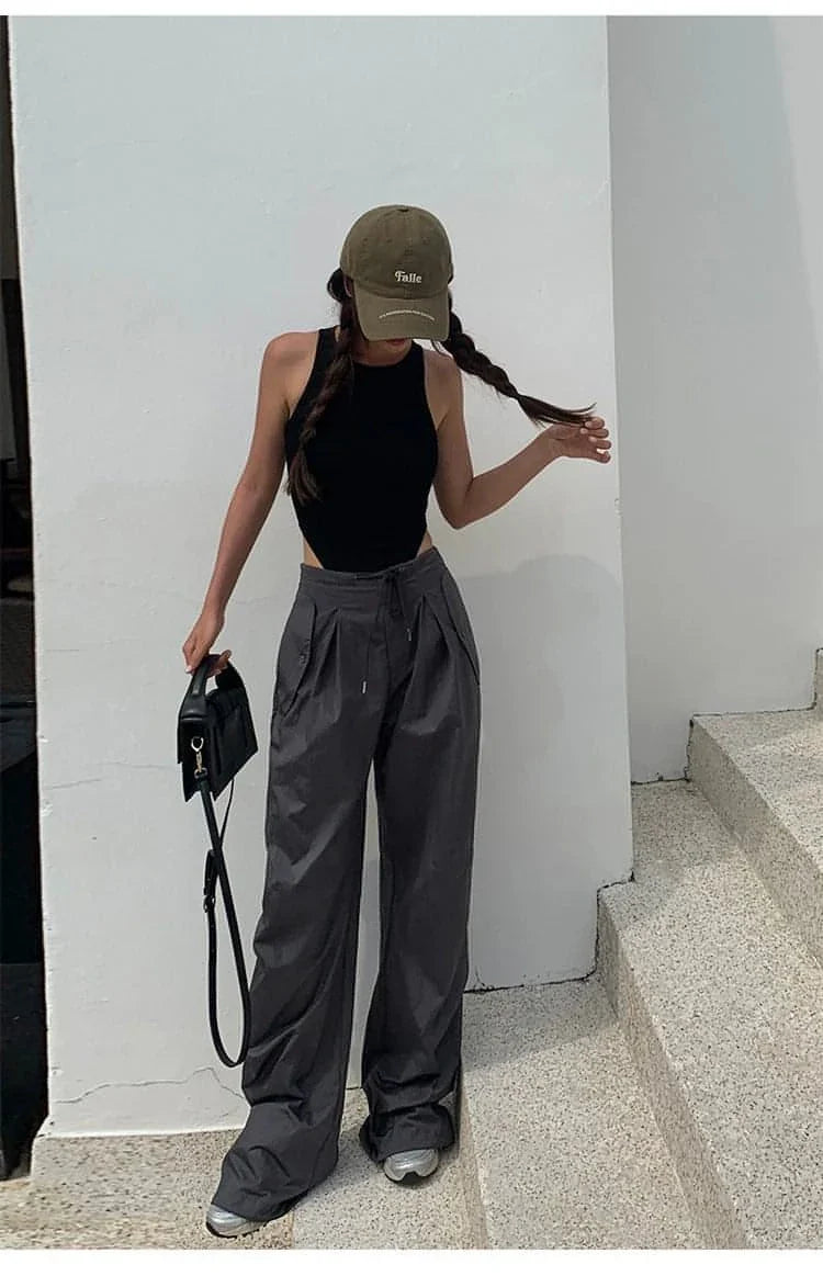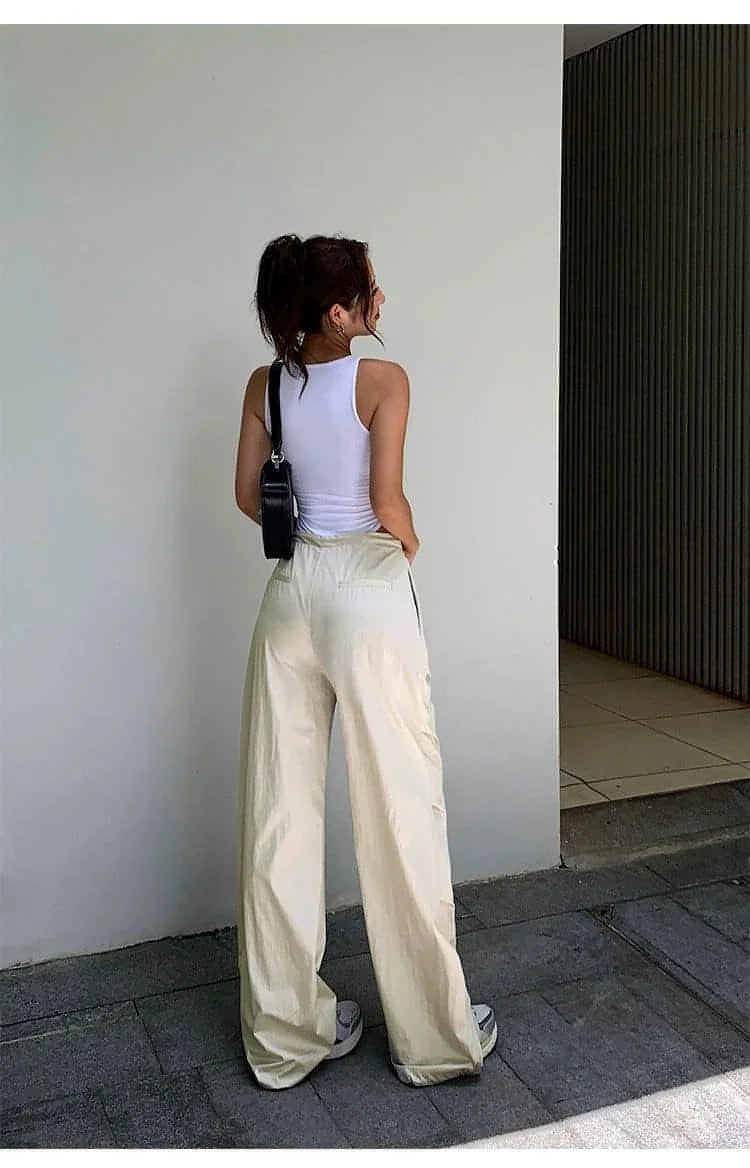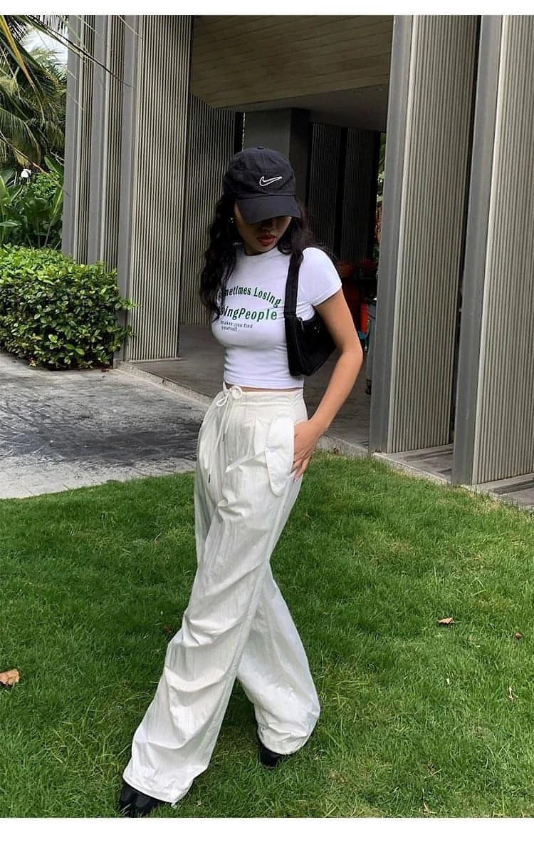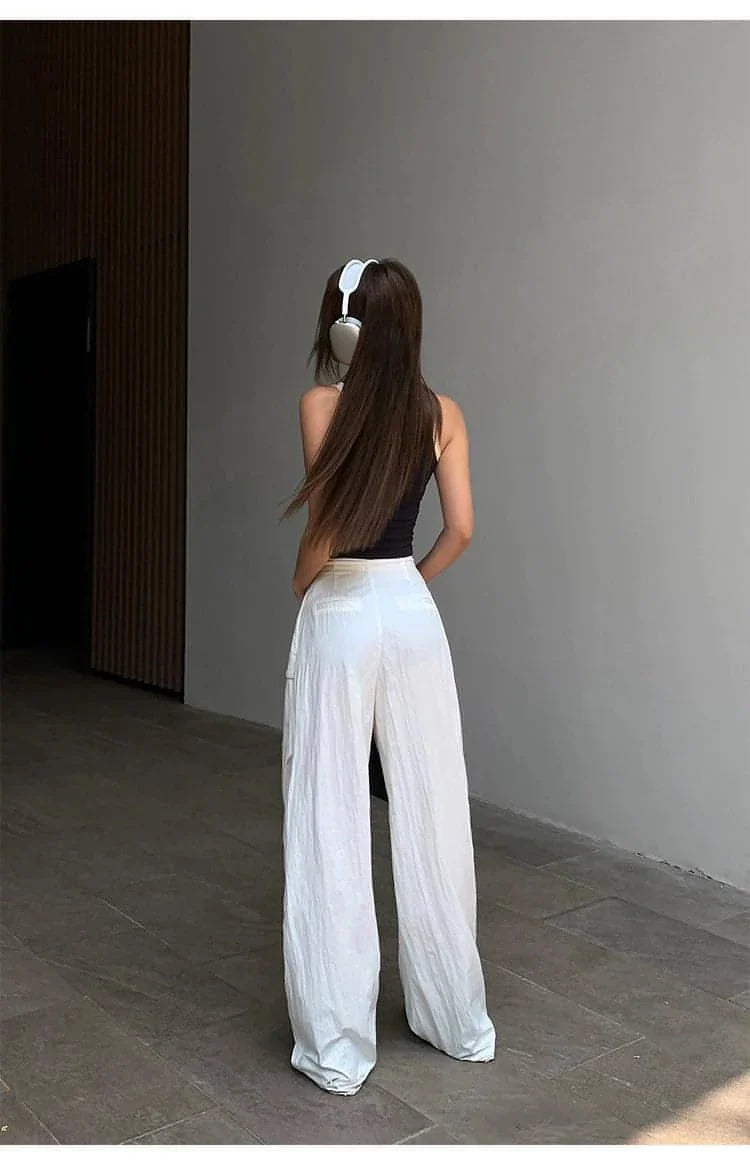 These pants feature a straight. wide-leg cut in a relaxed fit. perfect for casual wear. The retro-inspired design adds a touch of classic American style to your summer wardrobe. Comfort and vintage flair in one trendy piece.