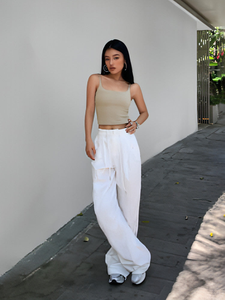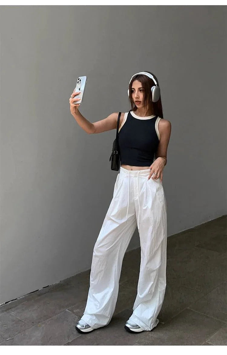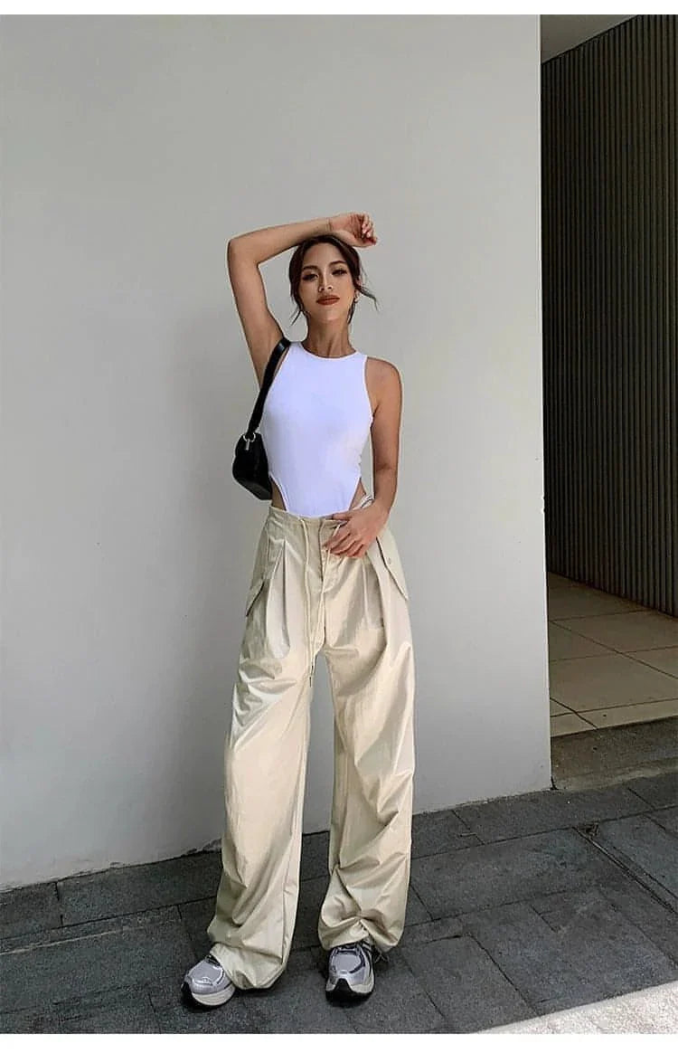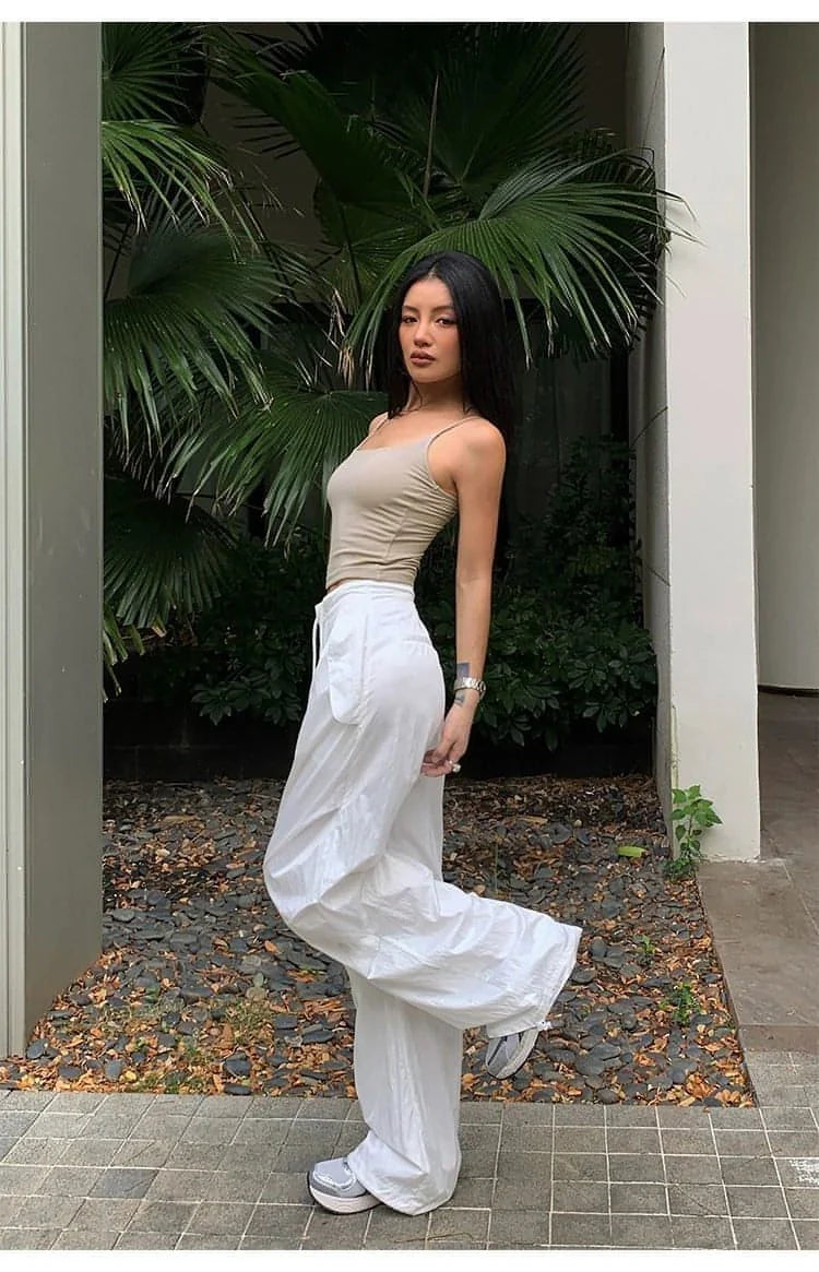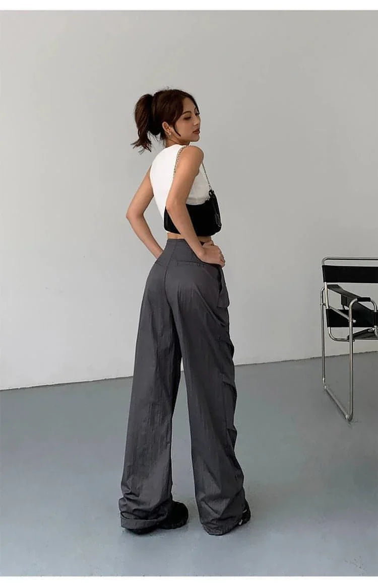 These pants feature a straight. wide-leg cut in a relaxed fit. perfect for casual wear. The retro-inspired design adds a touch of classic American style to your summer wardrobe. Comfort and vintage flair in one trendy piece.