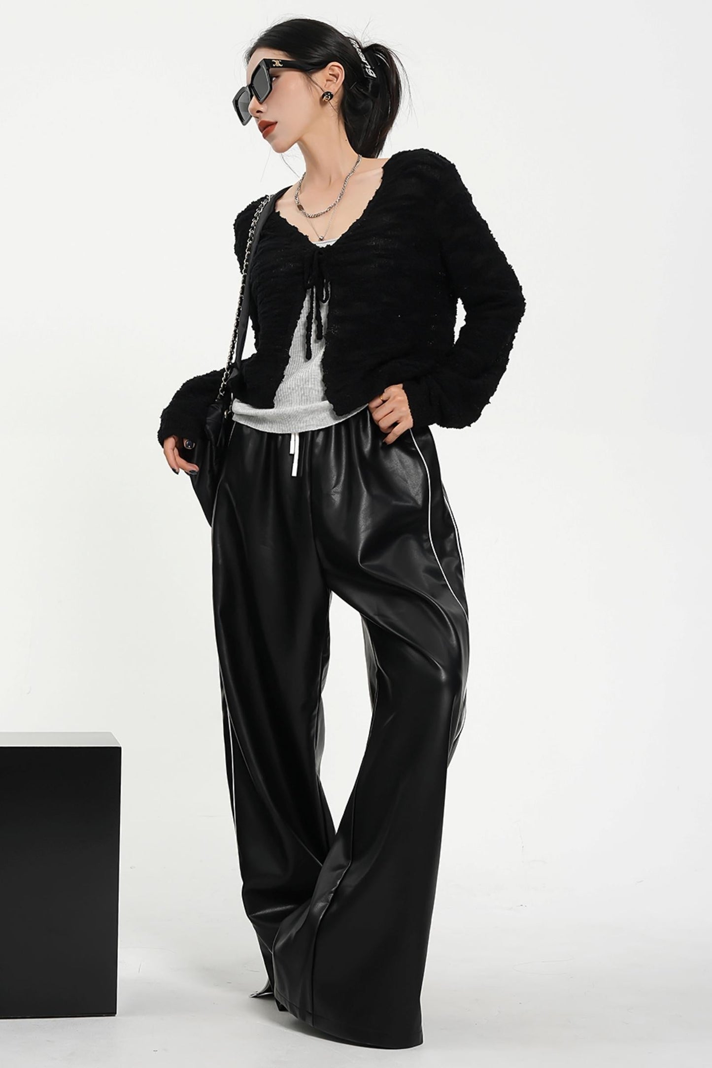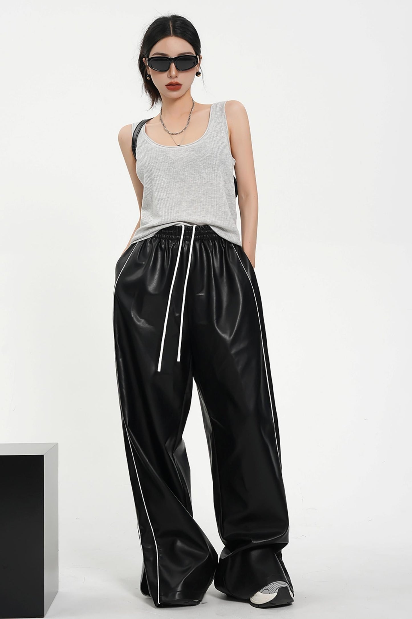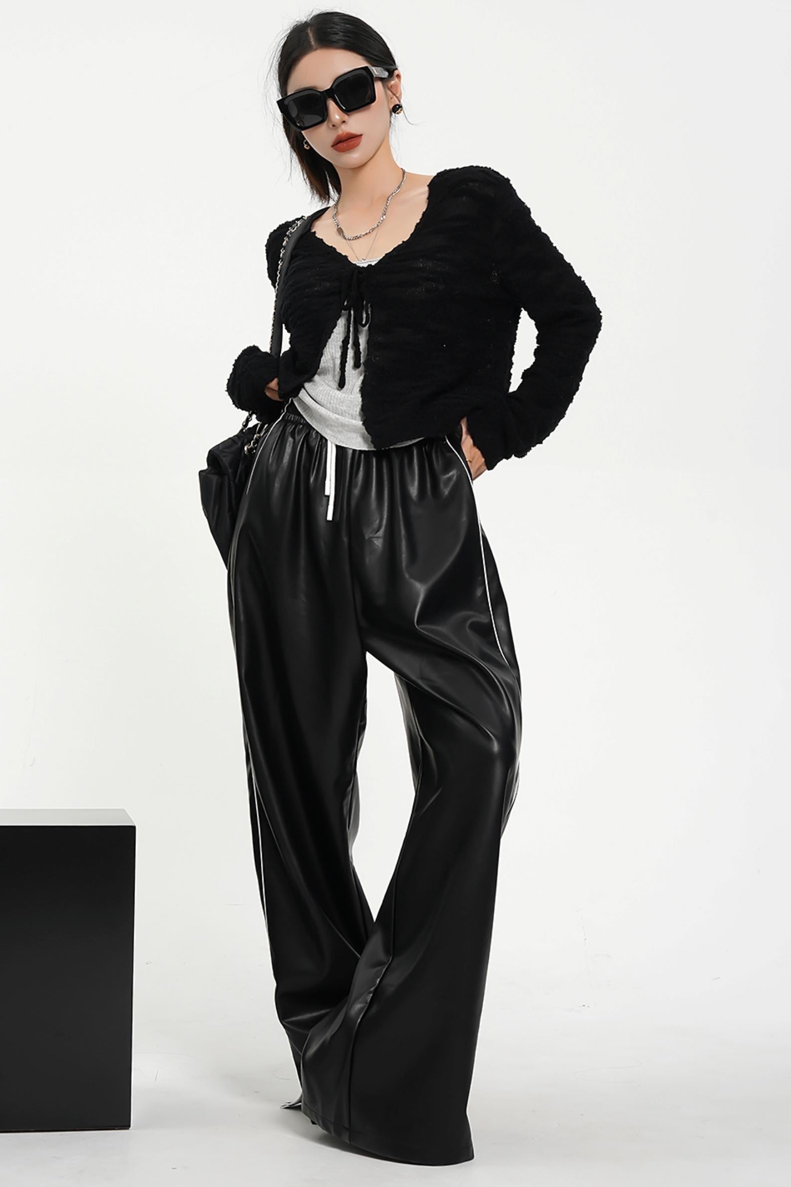 Elevate your sporty attire with our Luxe Satin-Look Drawstring Pants. Made with a wide leg design and a striped track bottom style. these pants offer both style and comfort. The drawstring waist allows for a customizable fit while the satin-look fabric adds a touch of luxury. Perfect for any fashion-forward athleisure look.
