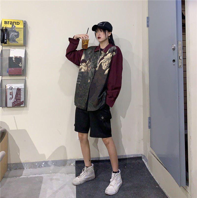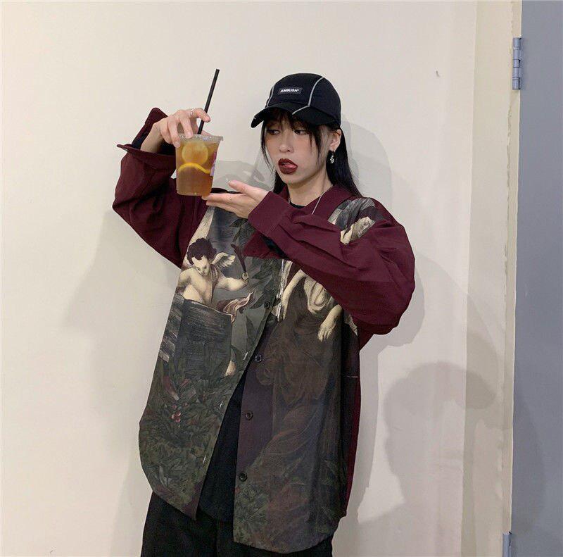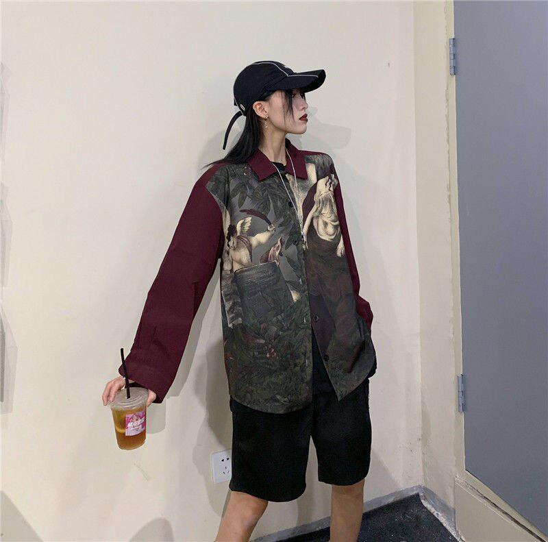 Infuse mystique into your ensemble with a long-sleeved shirt adorned with an angelic and nature print. Its classic collar and button-front fastening add a touch of professionalism to an otherwise whimsical piece.