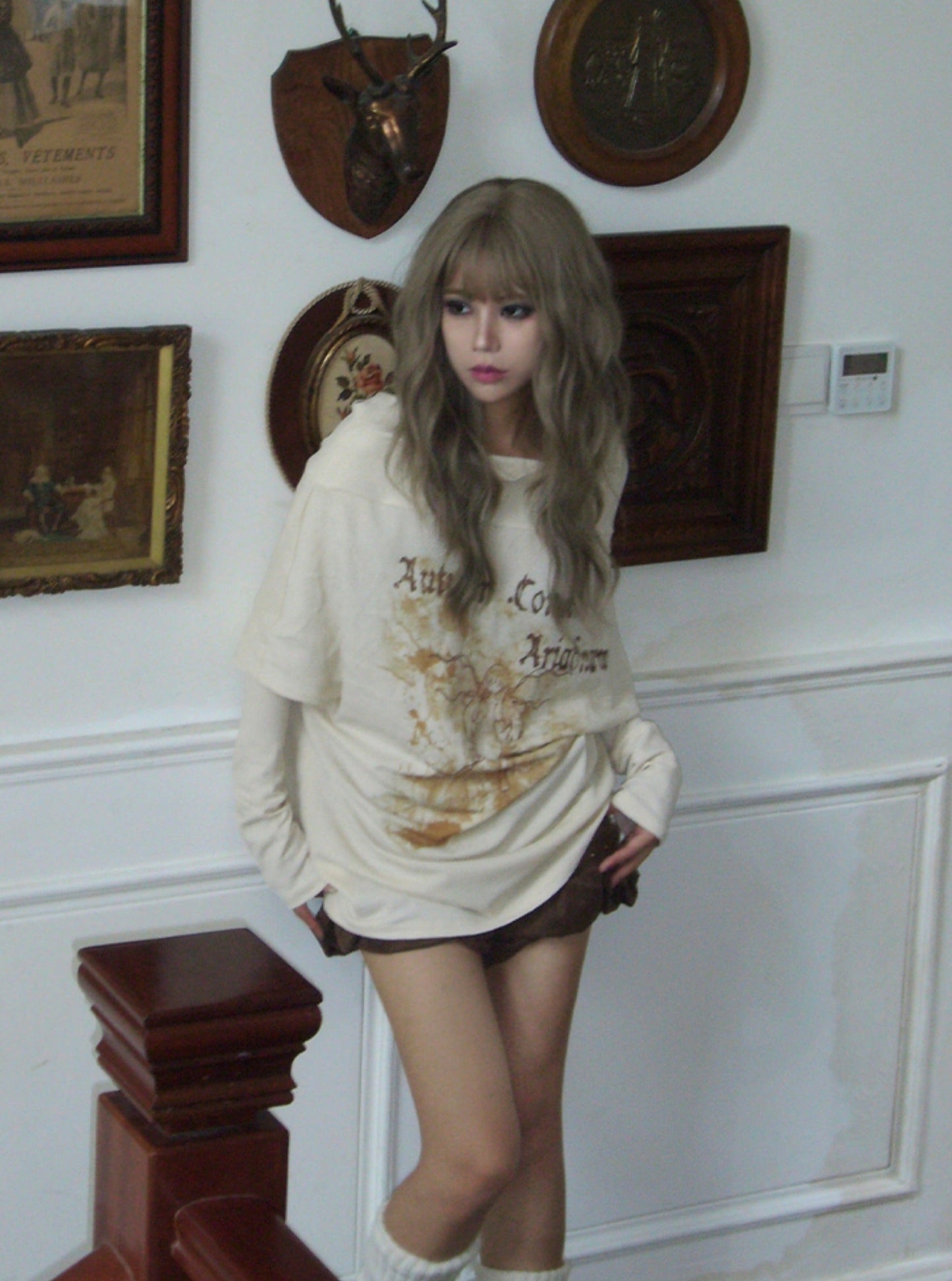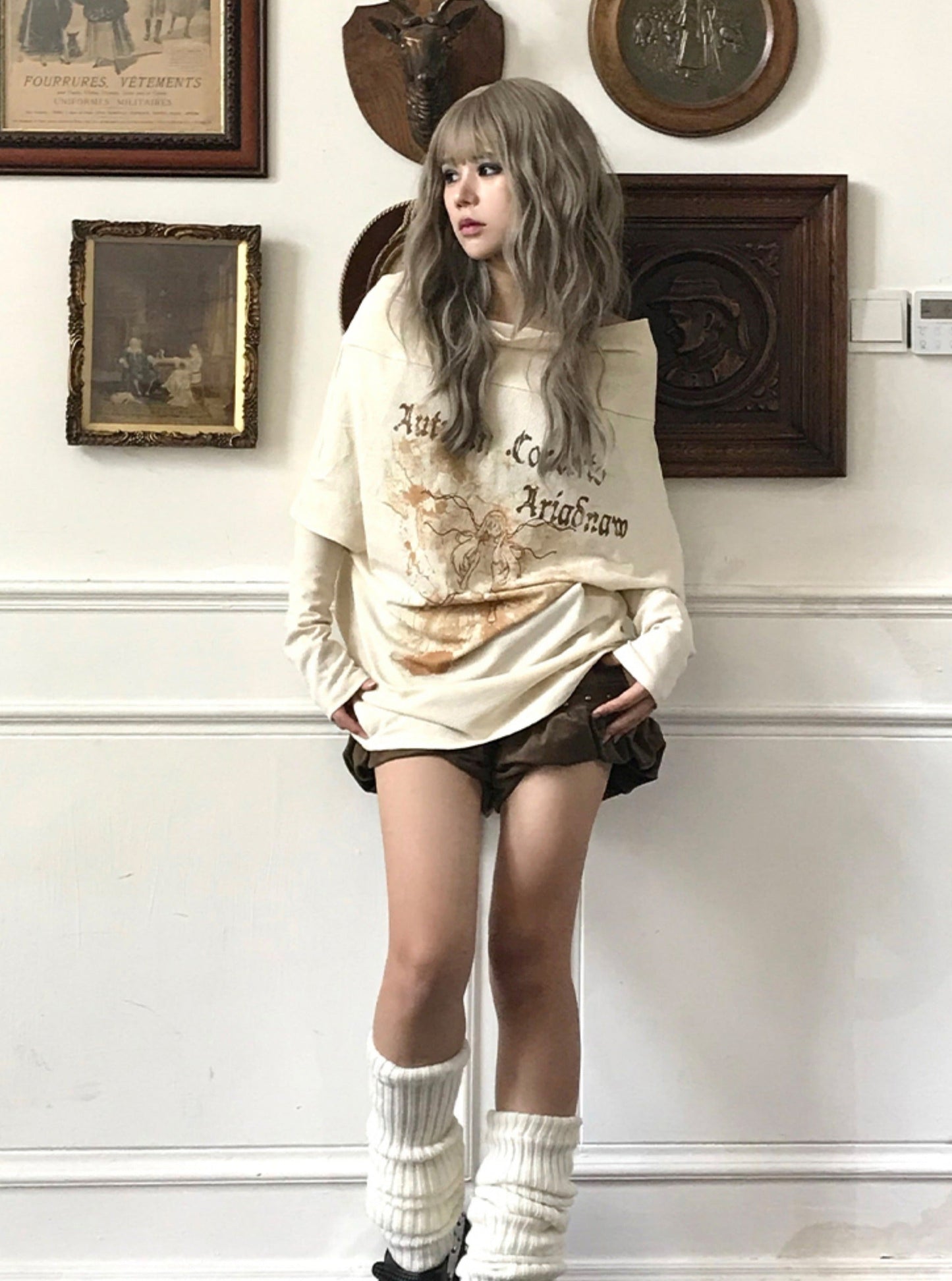 Cozy off-white sweatshirt featuring an antique-style graphic print. The design includes text in an old-fashioned font and sepia-toned decorative elements. giving it a weathered. vintage look. The loose-fitting style and long sleeves offer comfort and casual appeal.Â