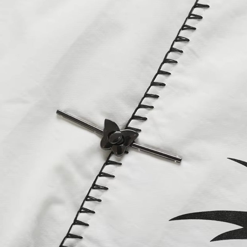 The Artsy White Shirt blends traditional elegance with modern simplicity. Crafted from lightweight fabric. it features intricate Chinese knot closures and a bold palm leaf print. adding a cultural and nature-inspired touch to your wardrobe.