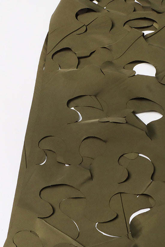 Walk in confidence with our street style hybrid skirts. This high-street contrast long skirt boasts an asymmetrical silhouette. with green fabric featuring cutouts throughout. mimicking the swaying of seagrass with every step you take. adding whimsy to your outfit. Featuring a high-rise cut. this spliced cutout skirt from our boutique is both flattering and fashion-forward for women. An exposed zipper adds an edgy flair while making it easy to slip on and off. Subtle stripes bring elegance. Perfect for a leisurely stroll with friends. exude confidence and turn heads effortlessly.