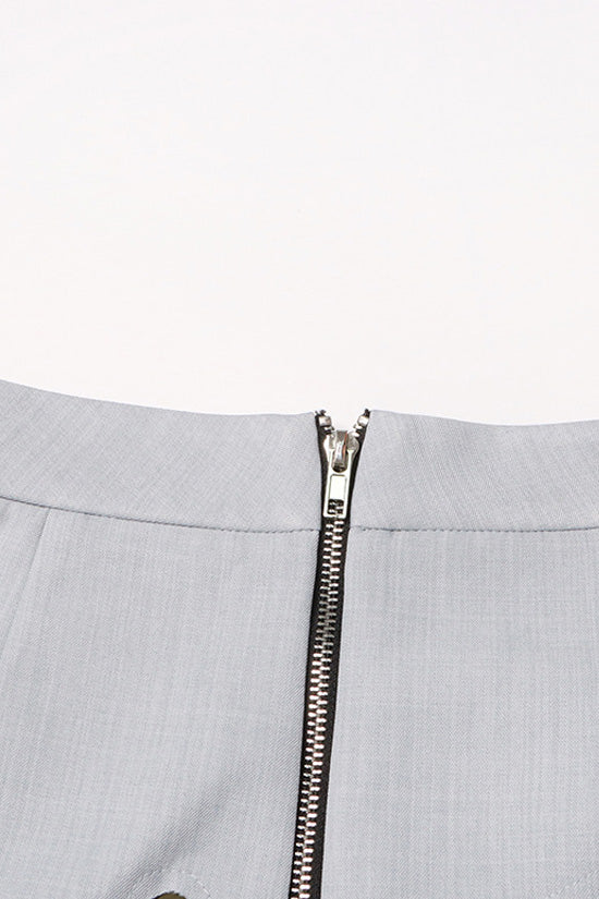 Asymmetric High Waist Exposed Zipper Laser Cut Out Hybrid Maxi Skirt
