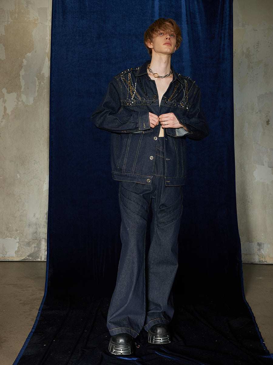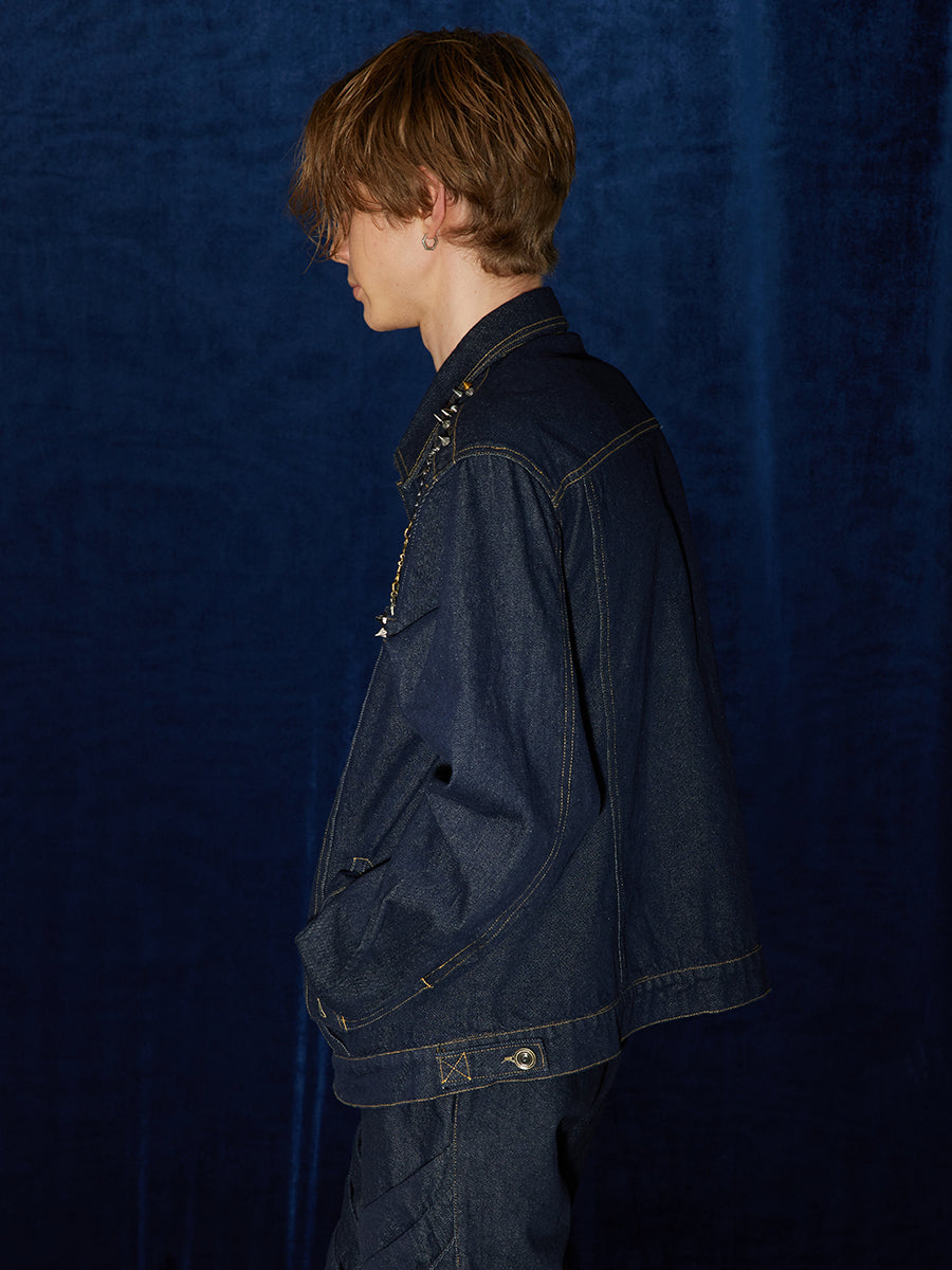 Introducing our Avant-Garde Chain-Embellished Denim Jacket - a stylish statement piece for the fashion-forward individual (and chain-lovers!). Made with high-quality denim and adorned with unique chain detailing. this jacket will elevate any outfit to the next level. Stand out from the crowd with this bold and playful addition to your wardrobe.