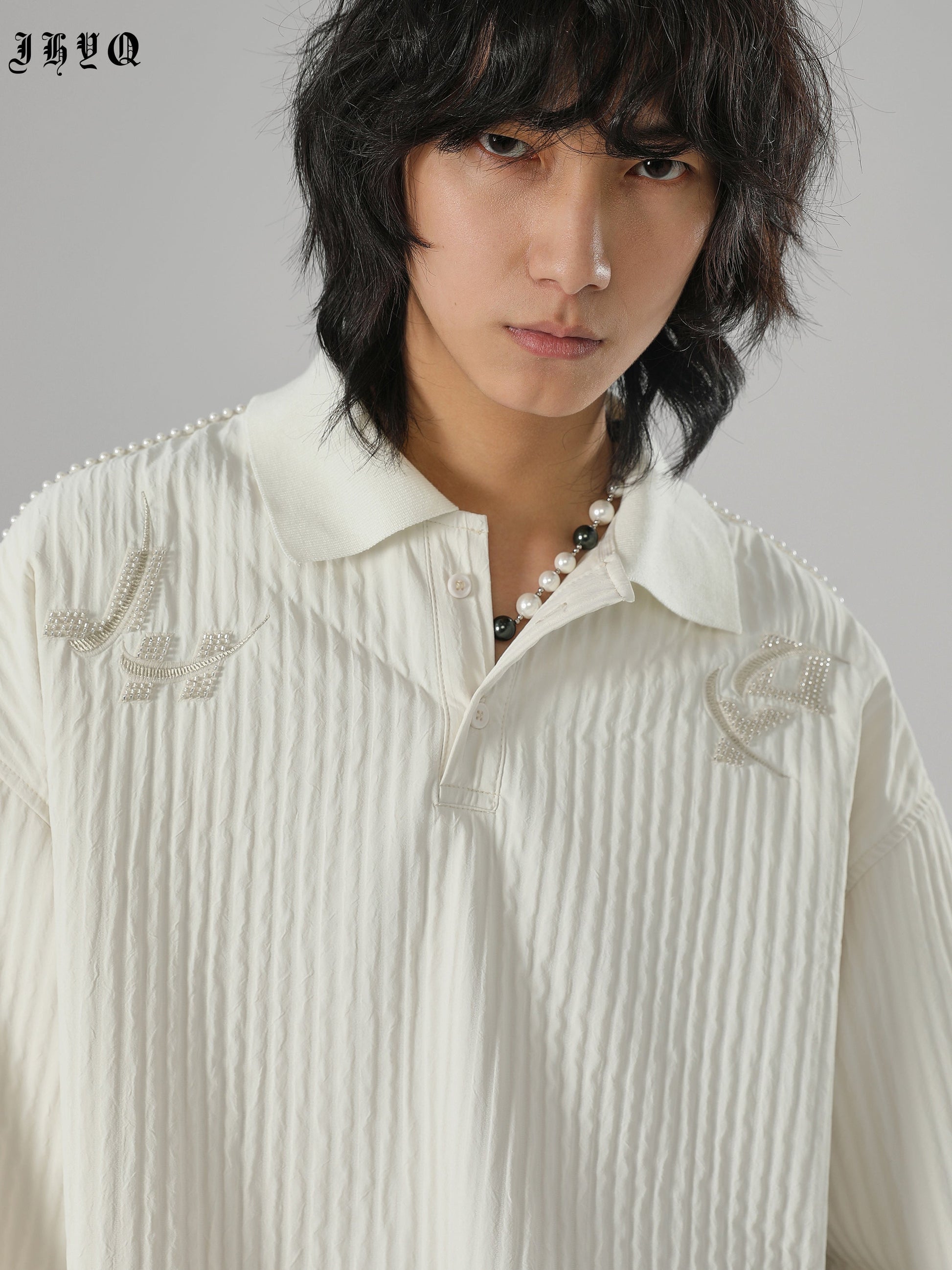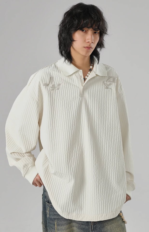Discover sophistication and style with our Beaded Embroidery Long Sleeve Polo Shirt. This shirt features intricate beaded embroidery that adds a touch of elegance to any outfit. It's perfect for both casual and semi-formal occasions.