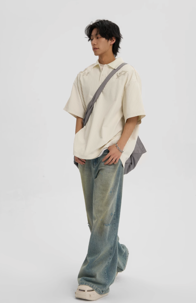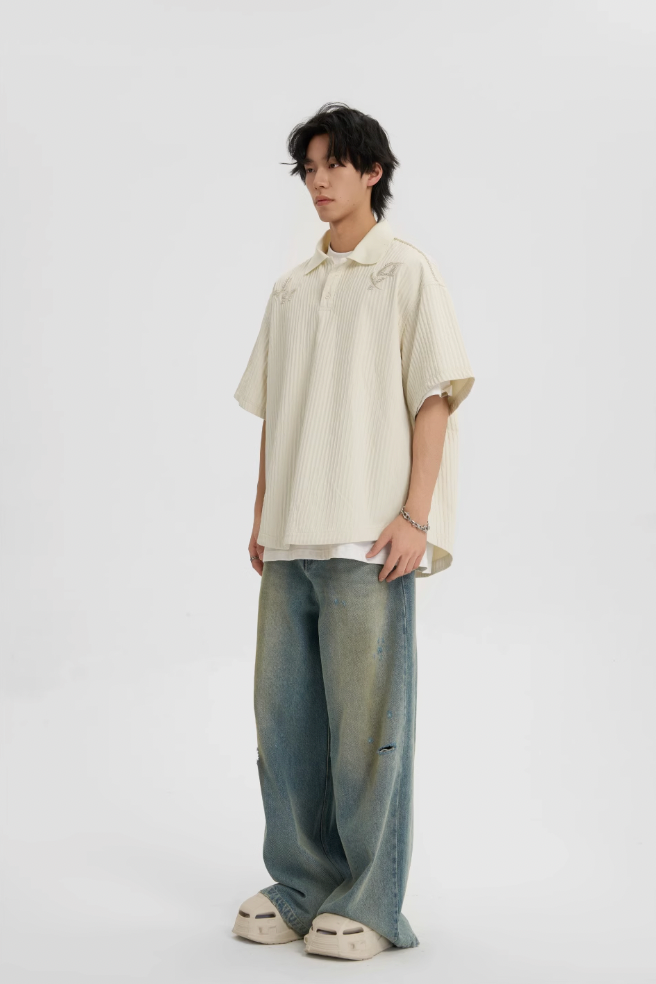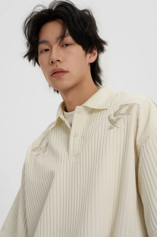 Introducing the Beaded Embroidery Short Sleeve Polo Shirt. a perfect blend of classic style and contemporary fashion. This polo shirt is meticulously crafted to offer a sophisticated look that enhances any wardrobe.