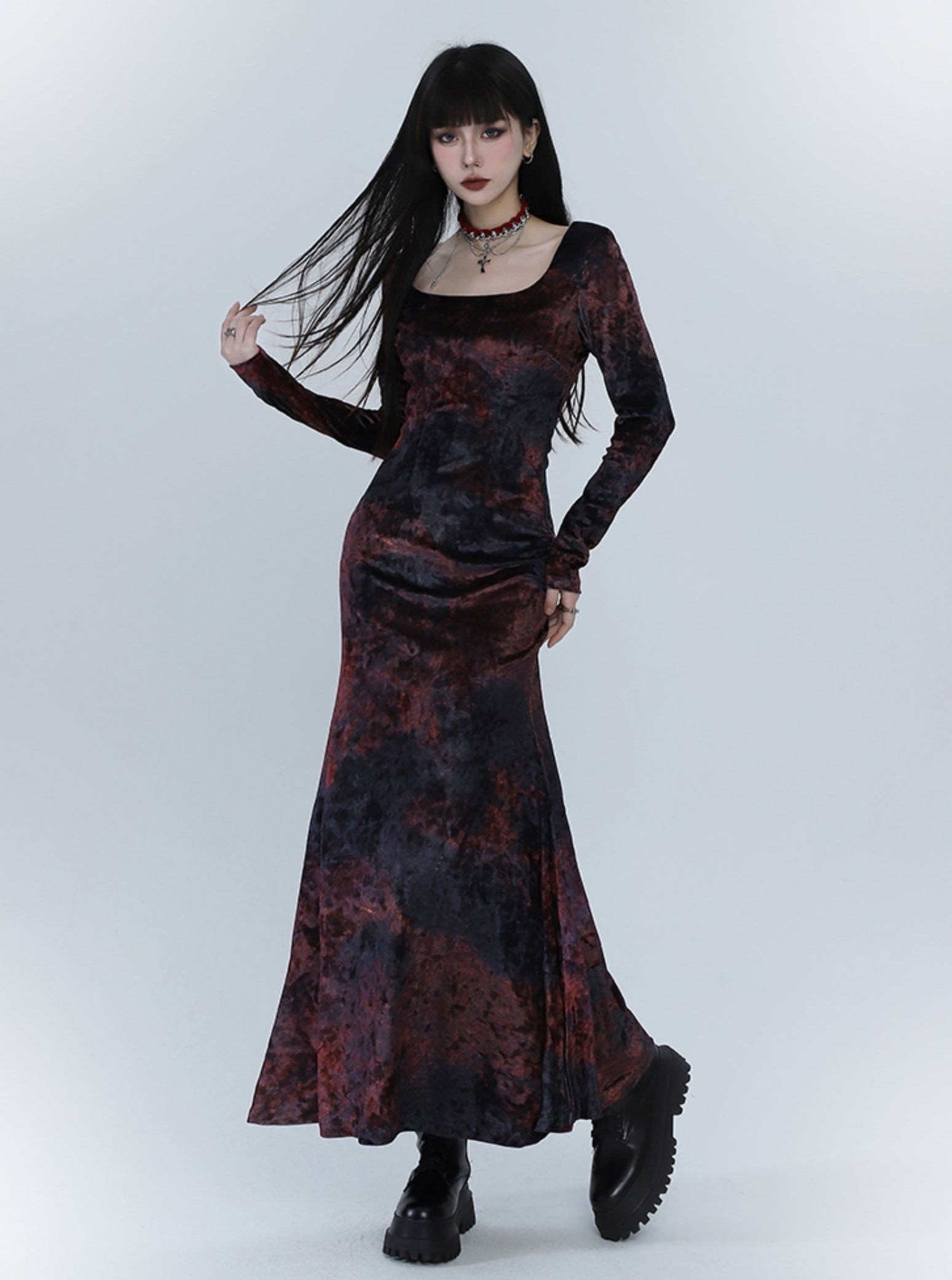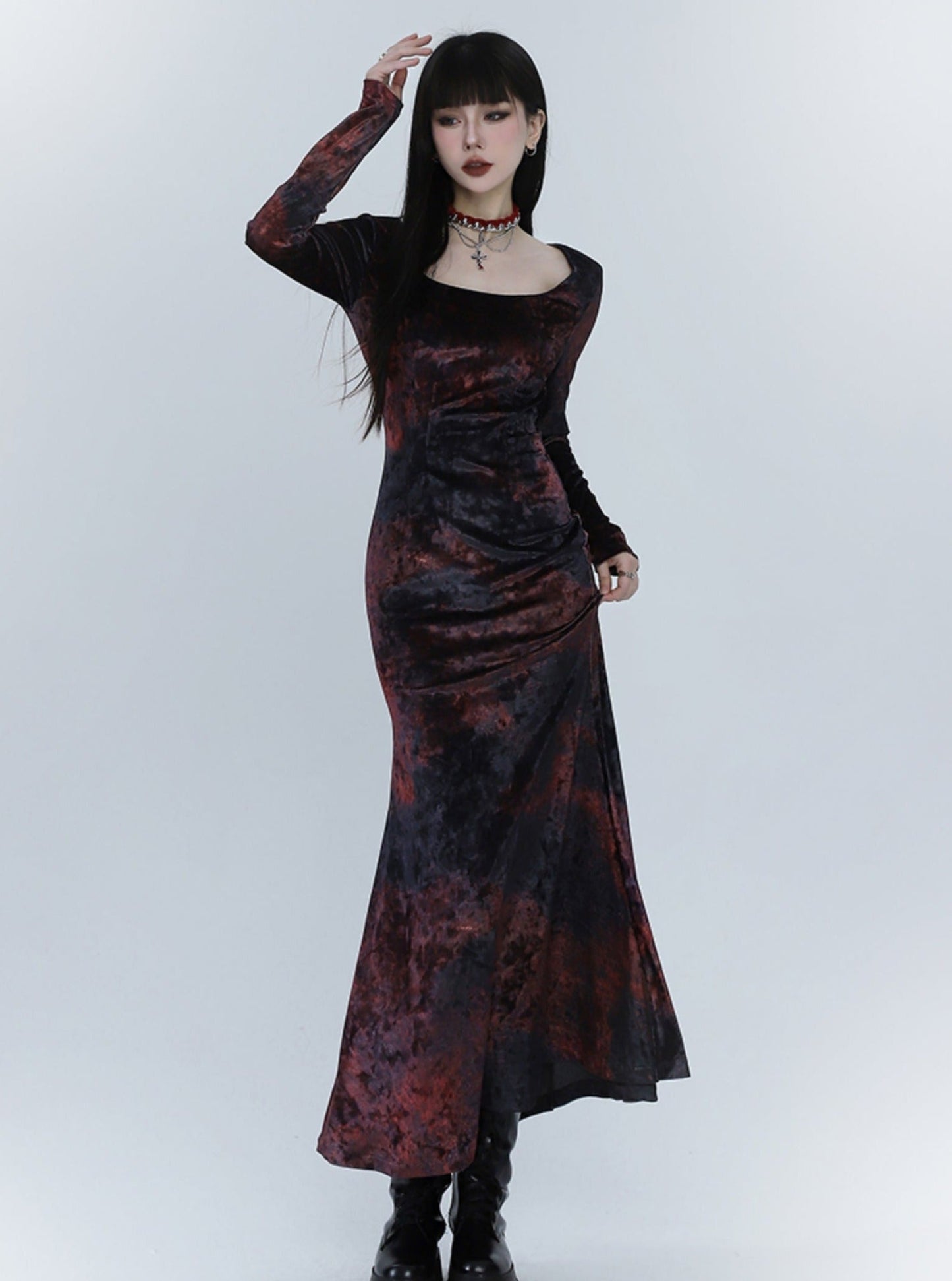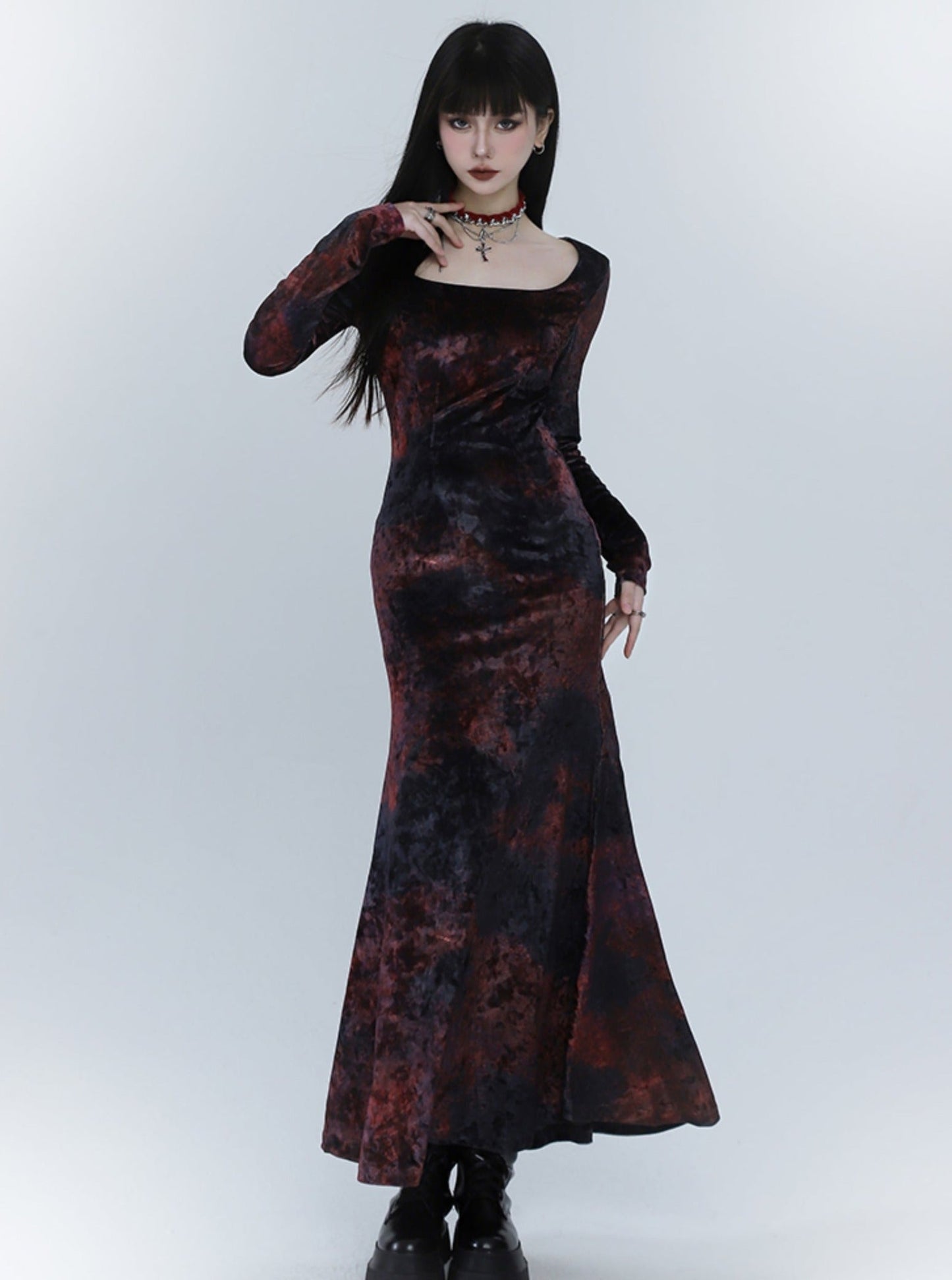 Black And Red Velvet Fishtail Dress