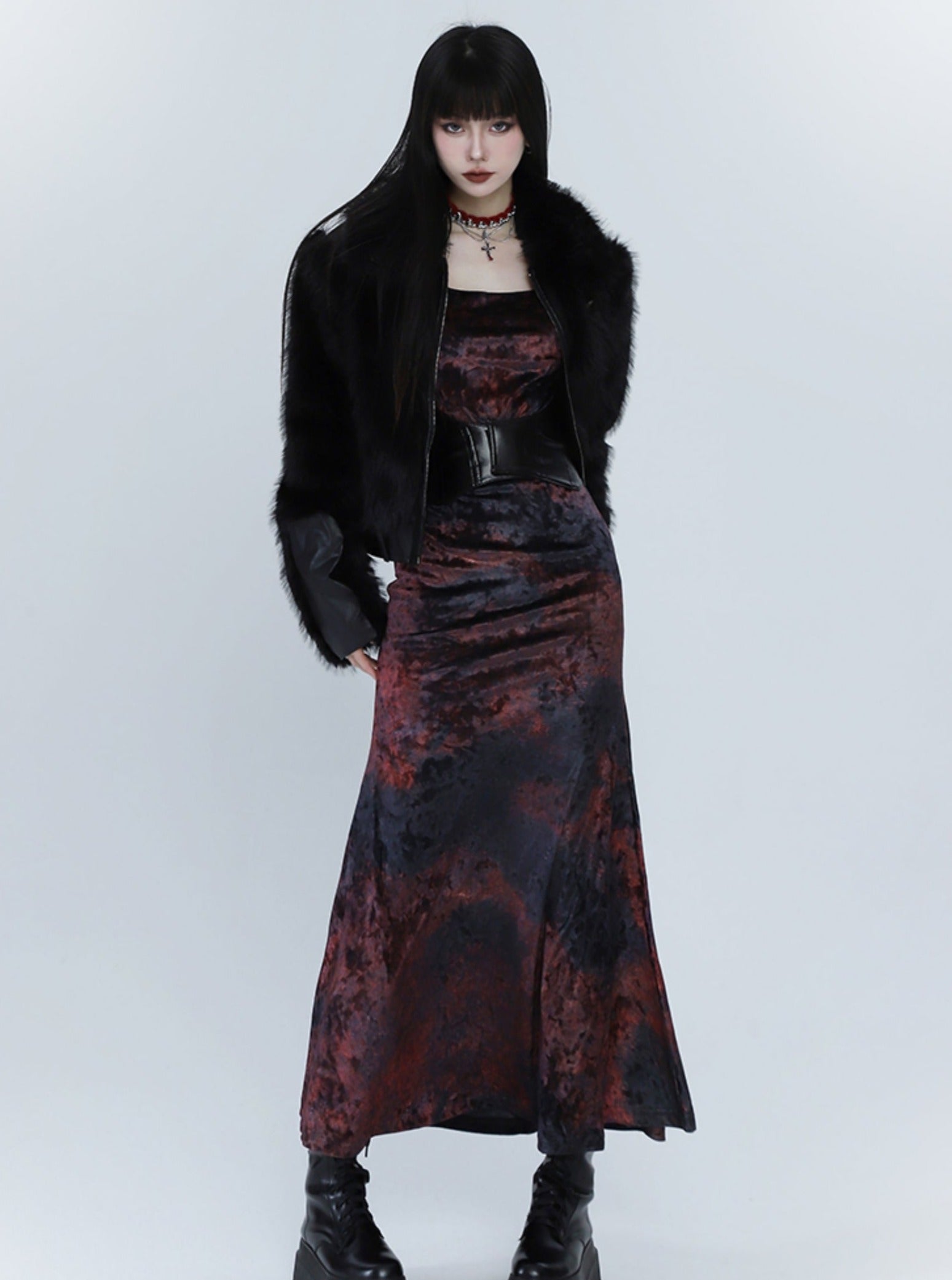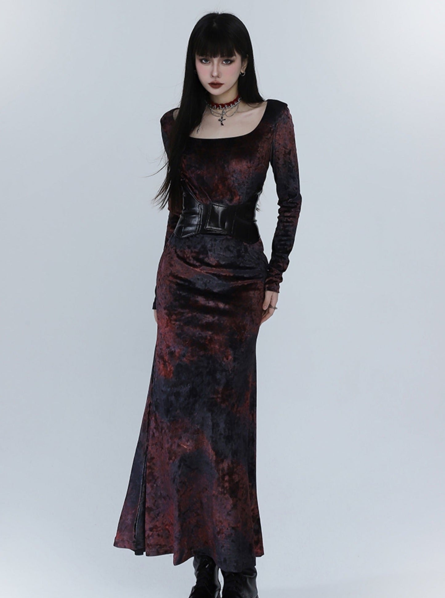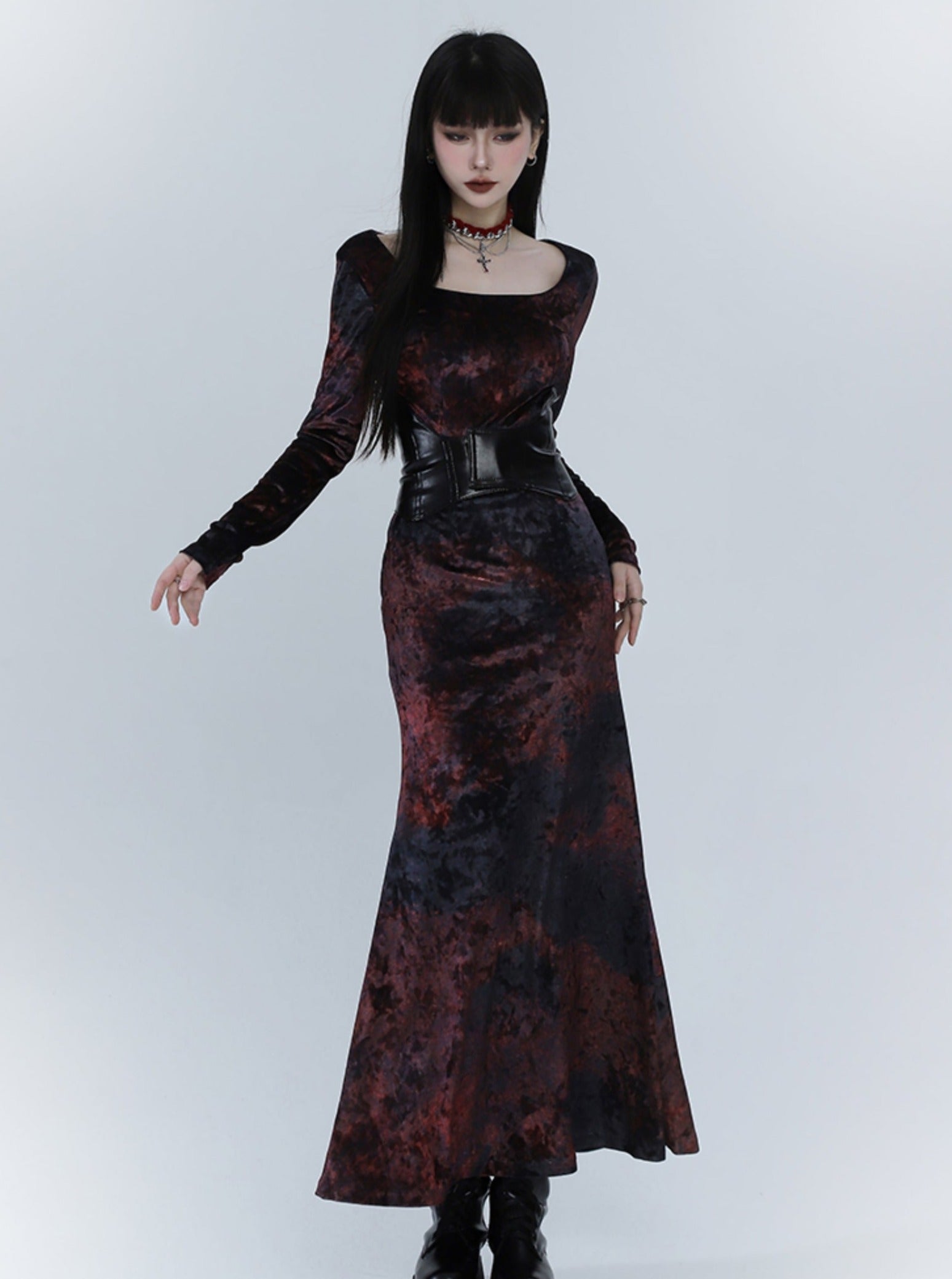 Black And Red Velvet Fishtail Dress