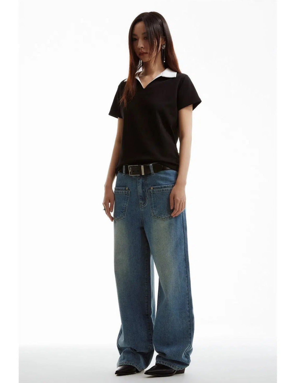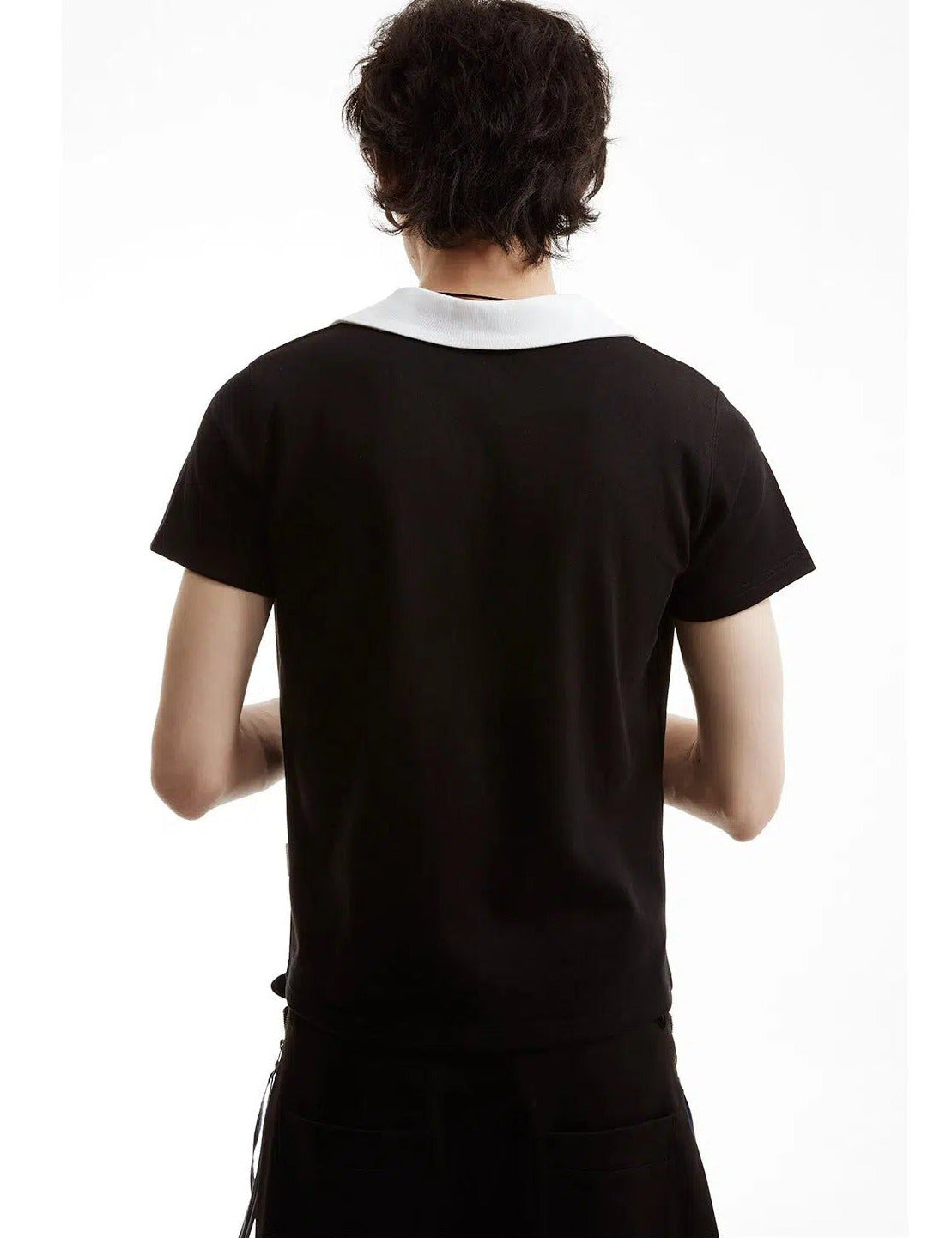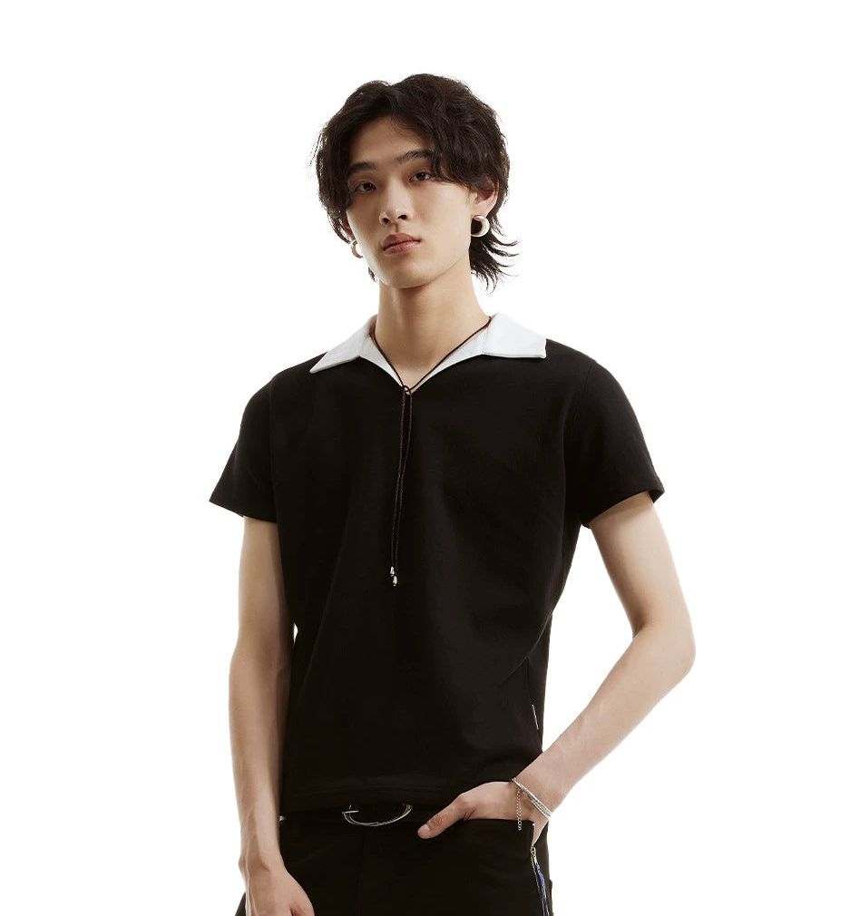 Black And White Contrast V-Neck Polo