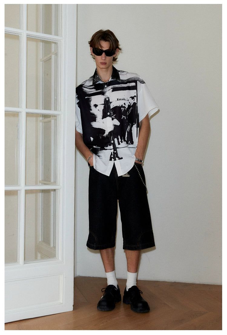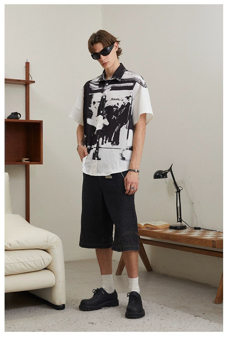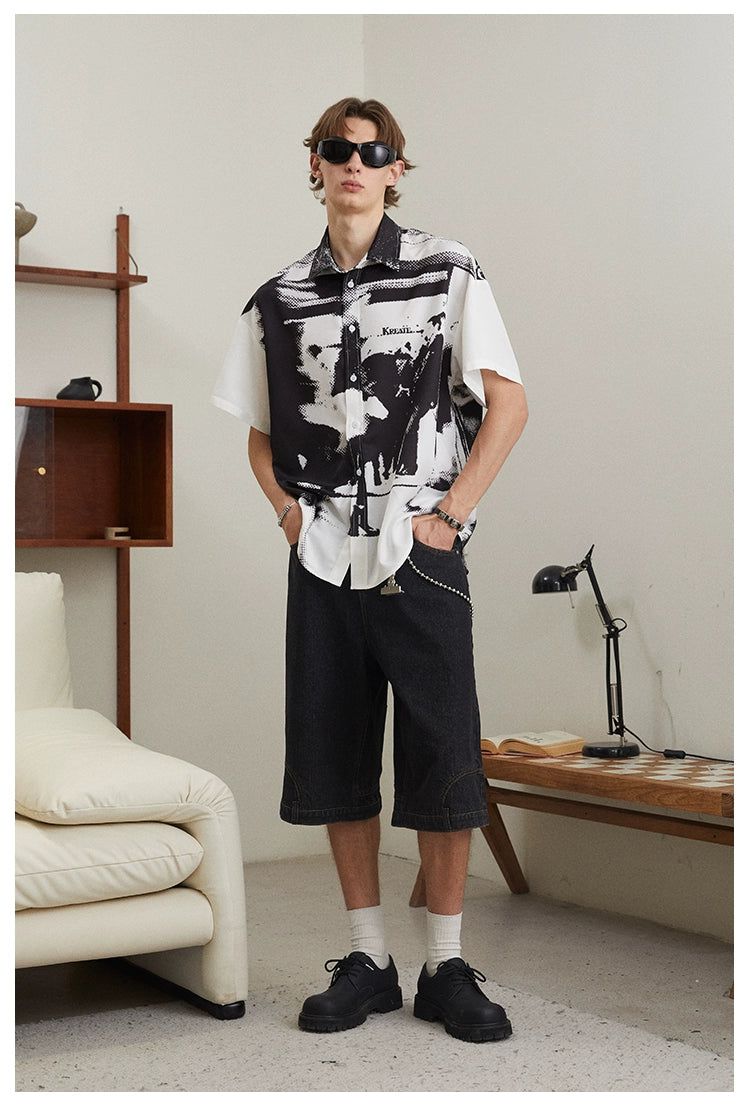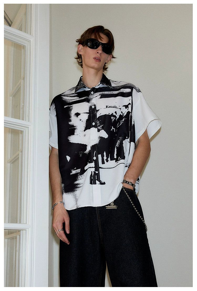 Upgrade your wardrobe with our stylish Black and White Half Tone Graphic Shirt. Perfect for any casual occasion. this shirt offers a modern design and a comfortable fit.