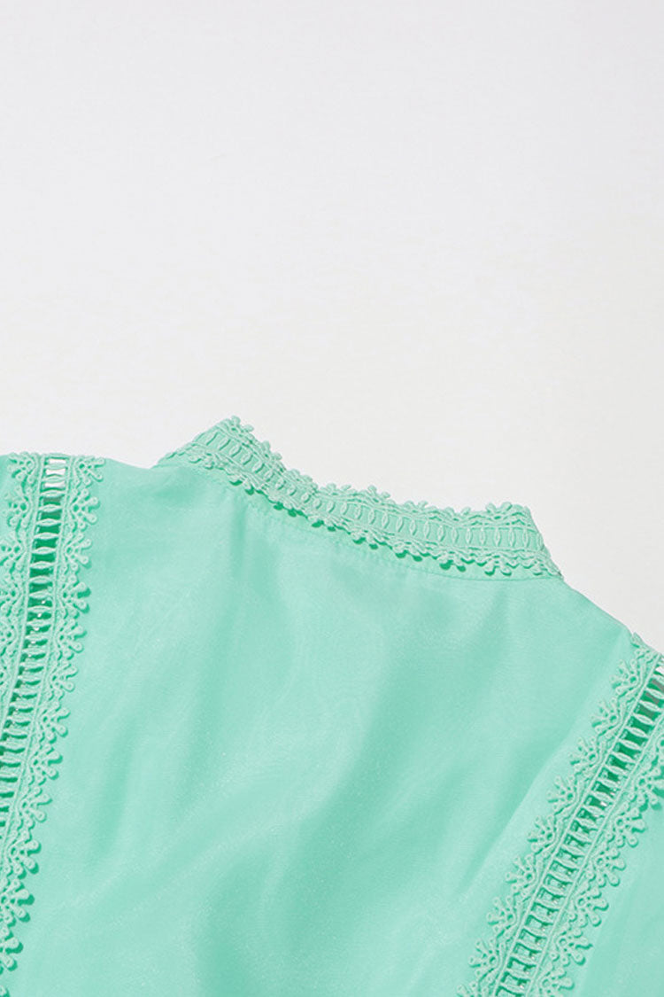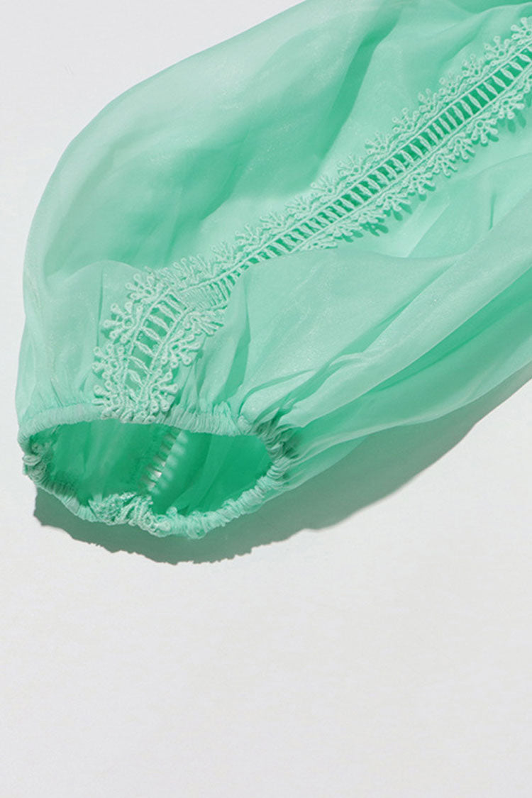Flowy shirt dresses for women are great for anything from casual beach outings to chic evening dinners. and this boho-style maxi dress from Yutuku Boutique is a prime example. With its voluminous silhouette and refined details. it seamlessly transitions between laid-back and upscale settings. The mock neck. puffy blouson sleeves. and intricate guipure lace panels add a touch of whimsy. while the self-tie waist sash and button-up front provide a flattering. customizable fit. Lined for added comfort and presented in a stunning turquoise hue. this breezy A-line dress is a versatile and luxury outfit for any occasion.