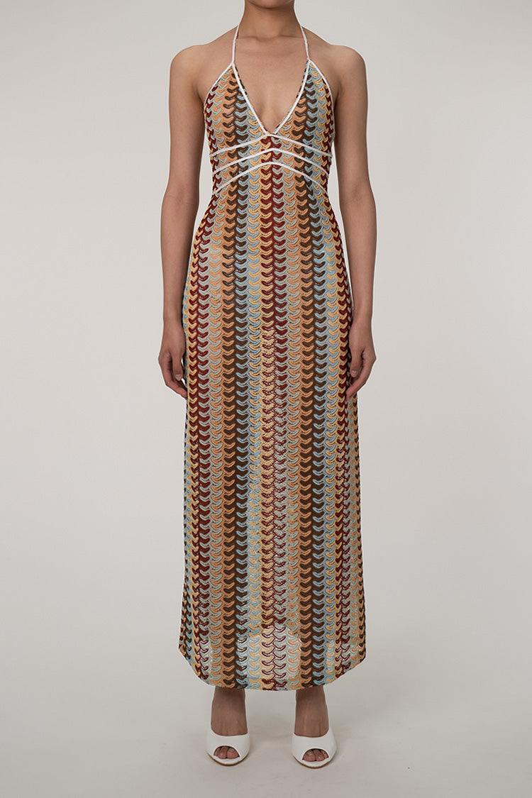 Boho Chevron Crochet Open Knit Halter Beach Vacation Maxi Sundress