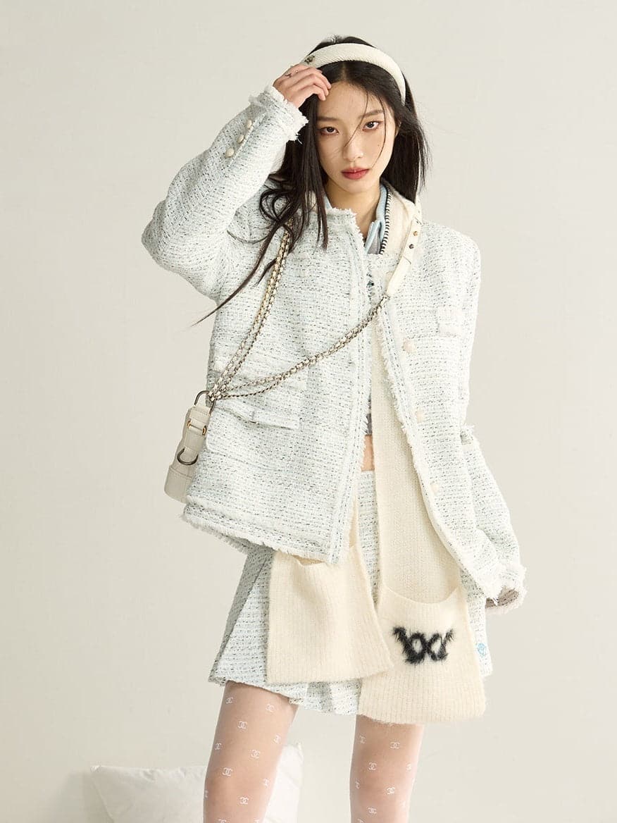 - Muffler Material: 10% Wool. 45% Nylon. 30% Polyester. 15% Acrylic