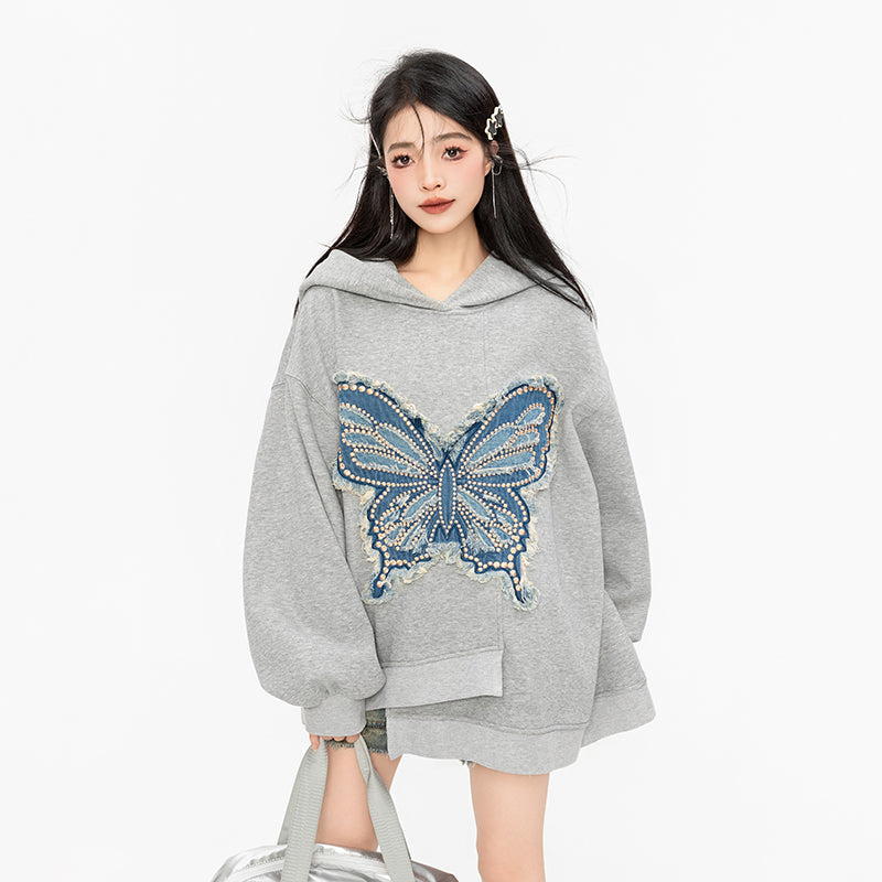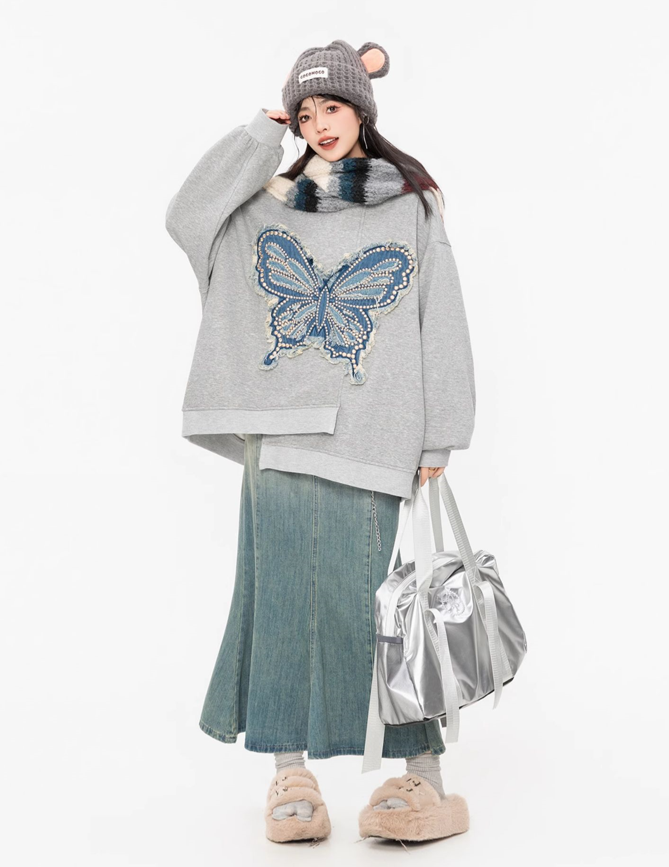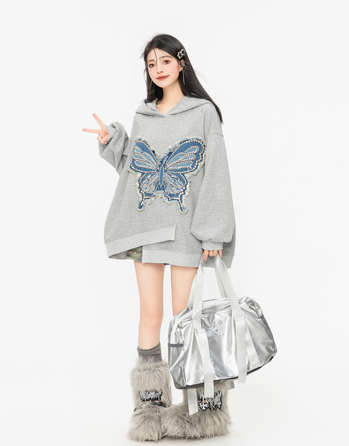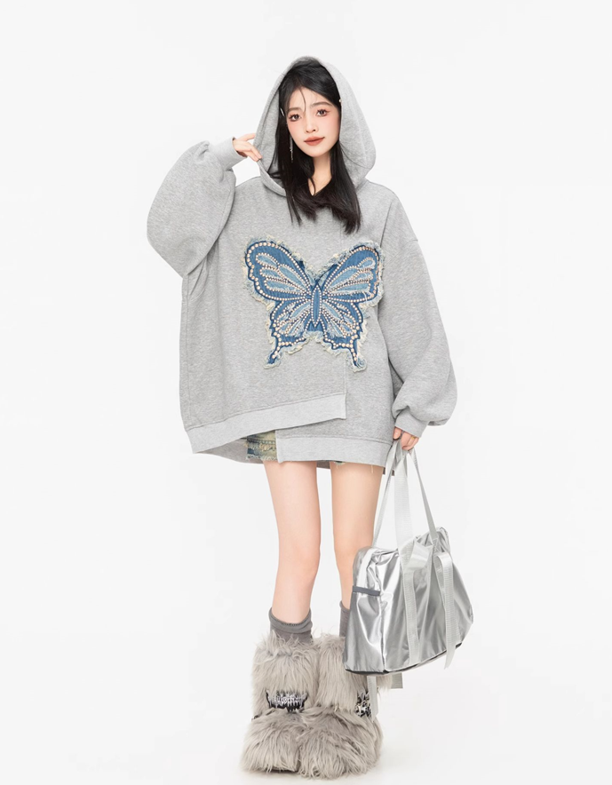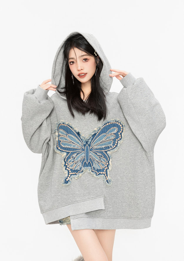 Experience comfort and style with our Butterfly Dream Oversized Hoodie. This gray hoodie features a striking blue butterfly design on the front. perfect for those who want to make a statement. The oversized fit and extra-long sleeves provide maximum comfort and a trendy look. Available in sizes S to XL to suit various body types.