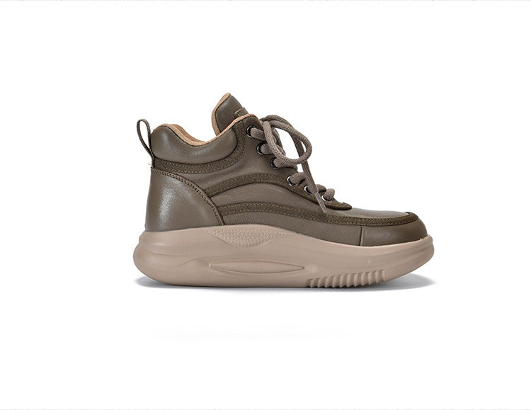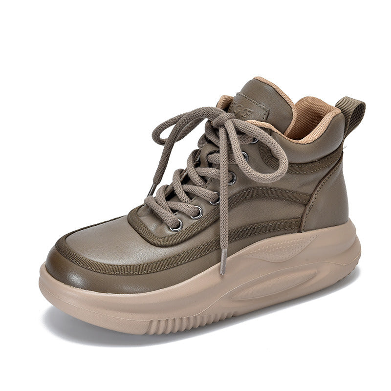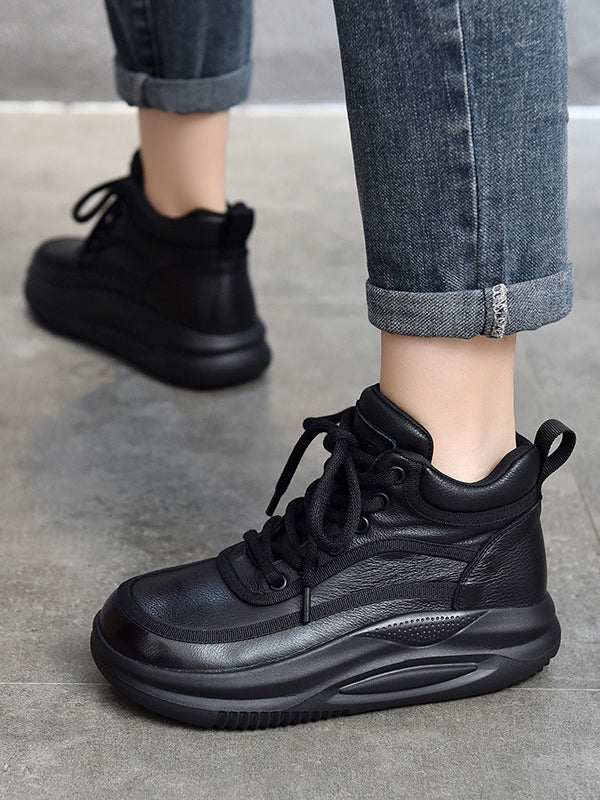Casual Leather Colorblocked Thick Bottom Boots