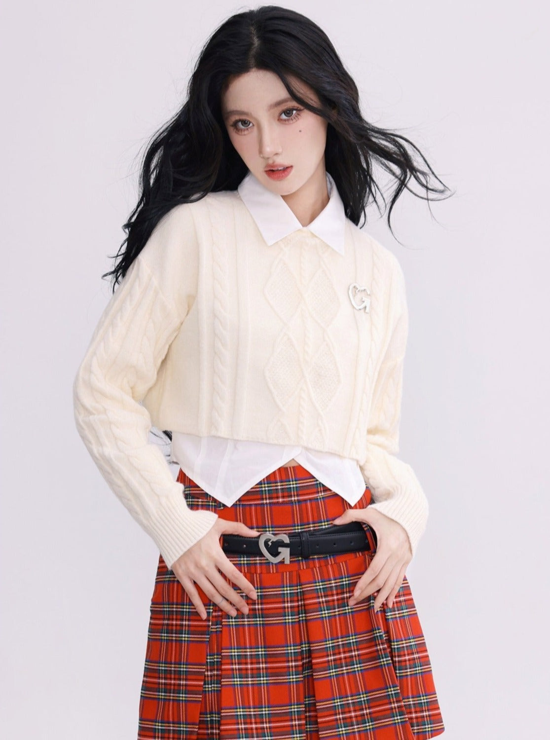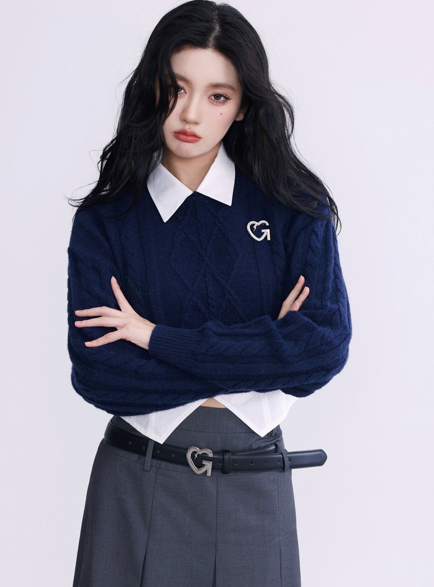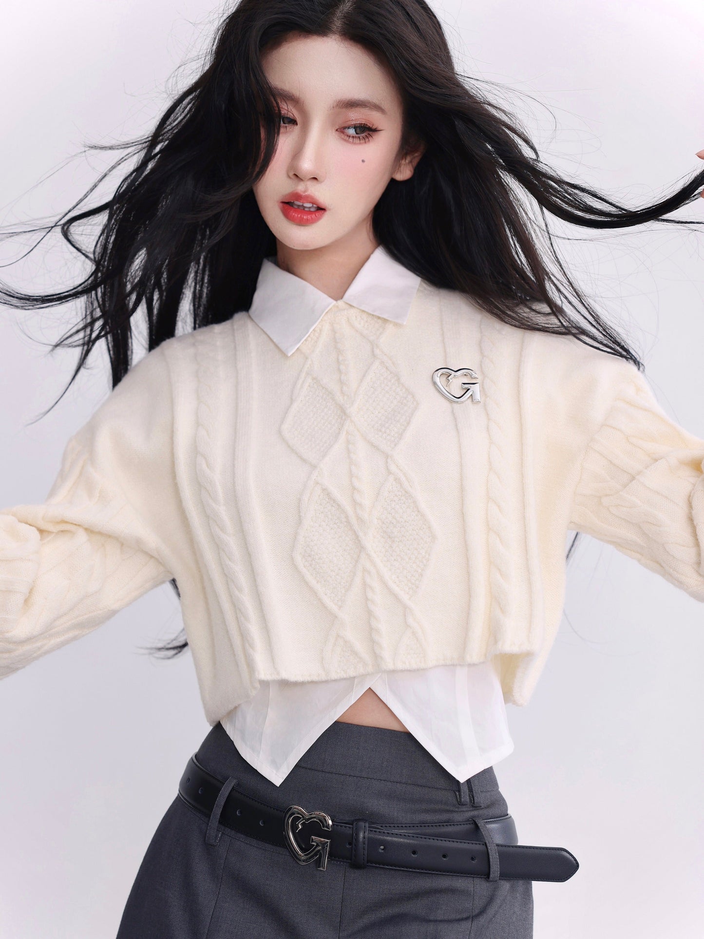 Stay warm and stylish in our CG Diamond Knit Cropped Sweater. Made with high-quality materials. this sweater boasts a luxurious diamond knit pattern. The cropped design adds a modern touch to this classic piece. Keep cozy while looking effortlessly chic.