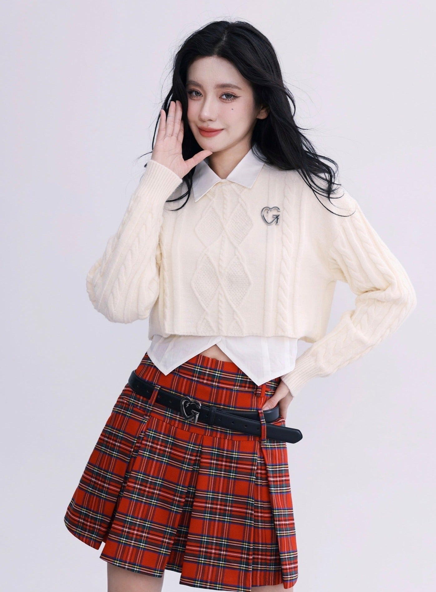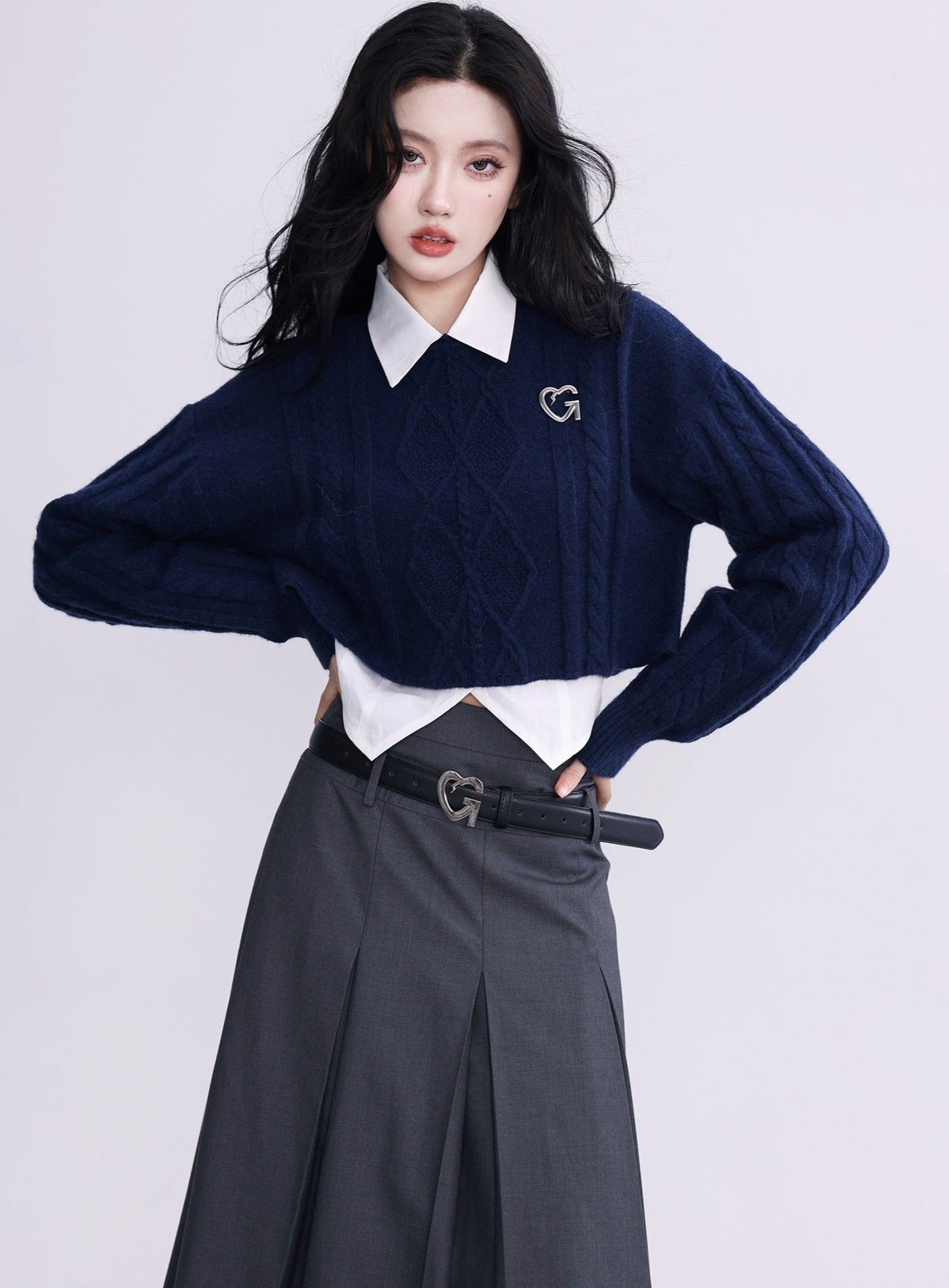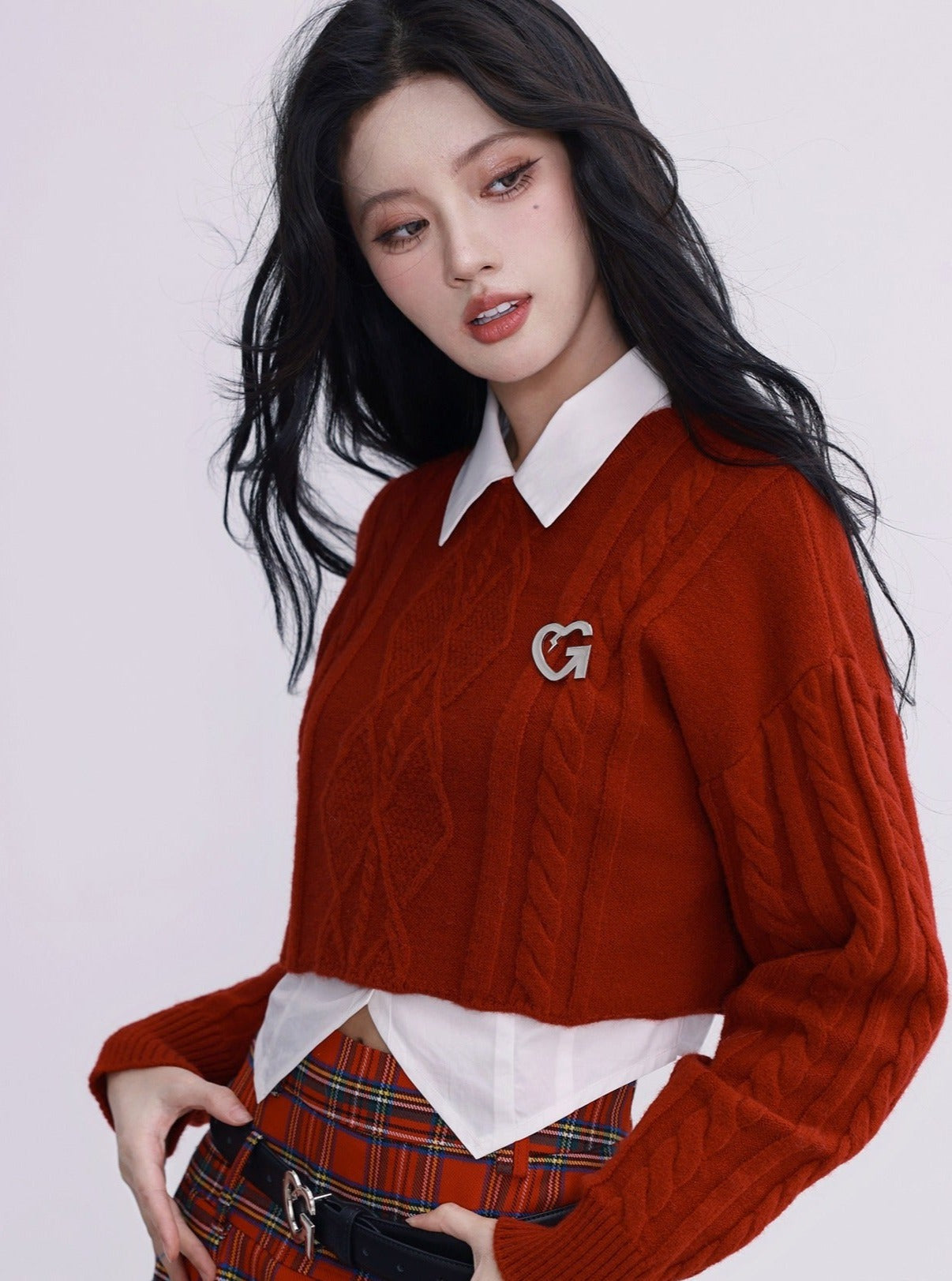 Stay warm and stylish in our CG Diamond Knit Cropped Sweater. Made with high-quality materials. this sweater boasts a luxurious diamond knit pattern. The cropped design adds a modern touch to this classic piece. Keep cozy while looking effortlessly chic.