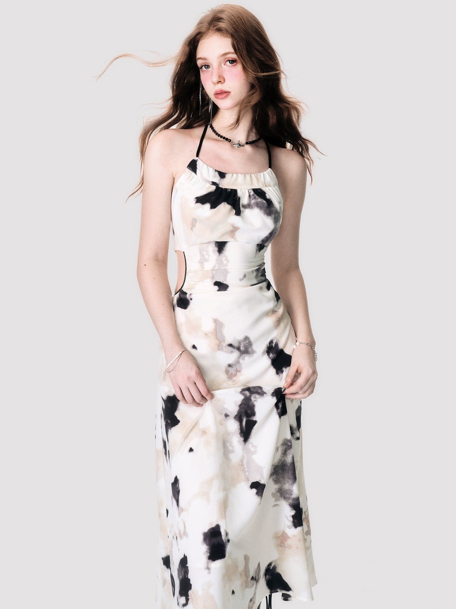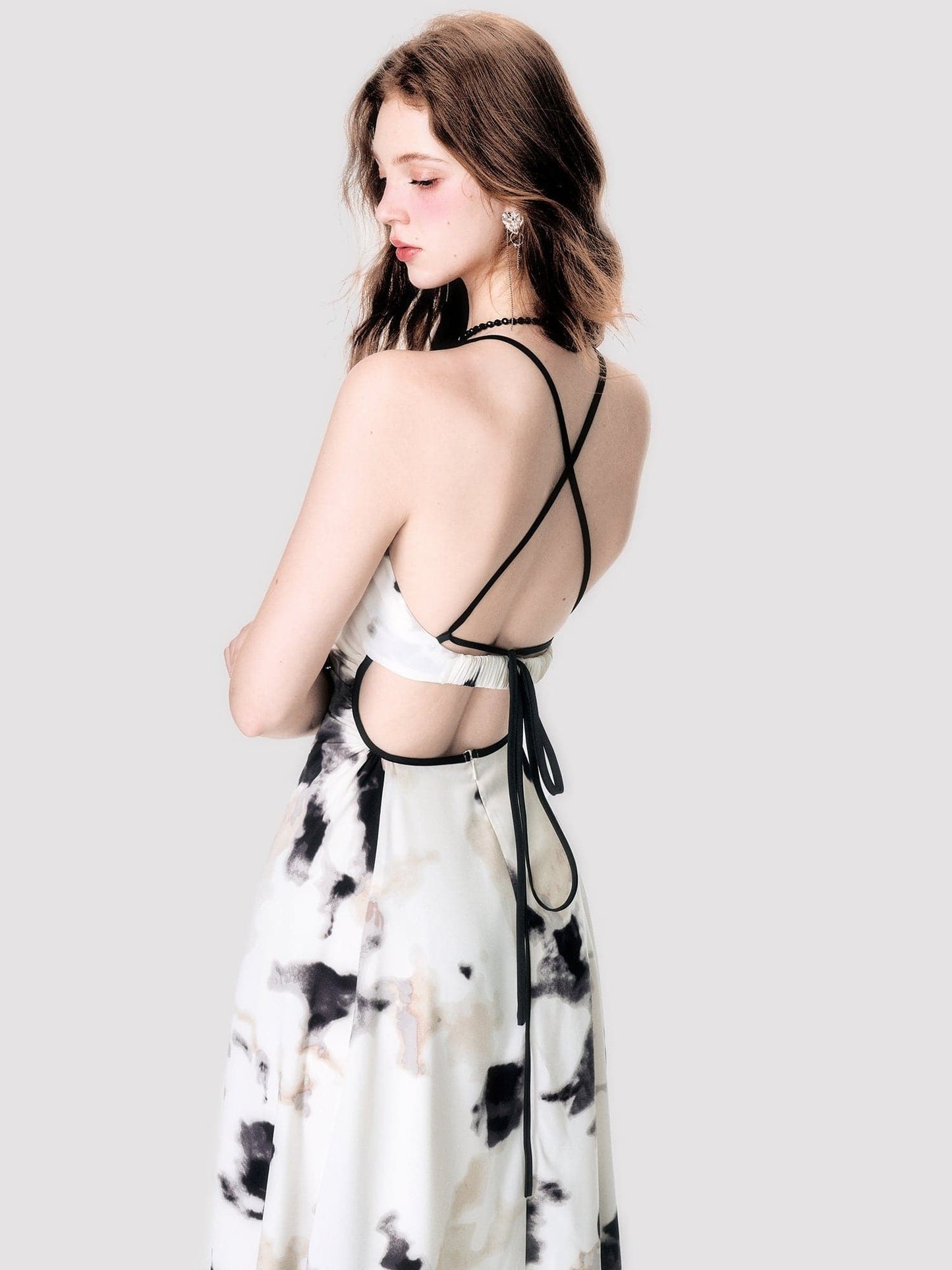 Chic Back-Open Tie-Dye Ciffon One-Piece