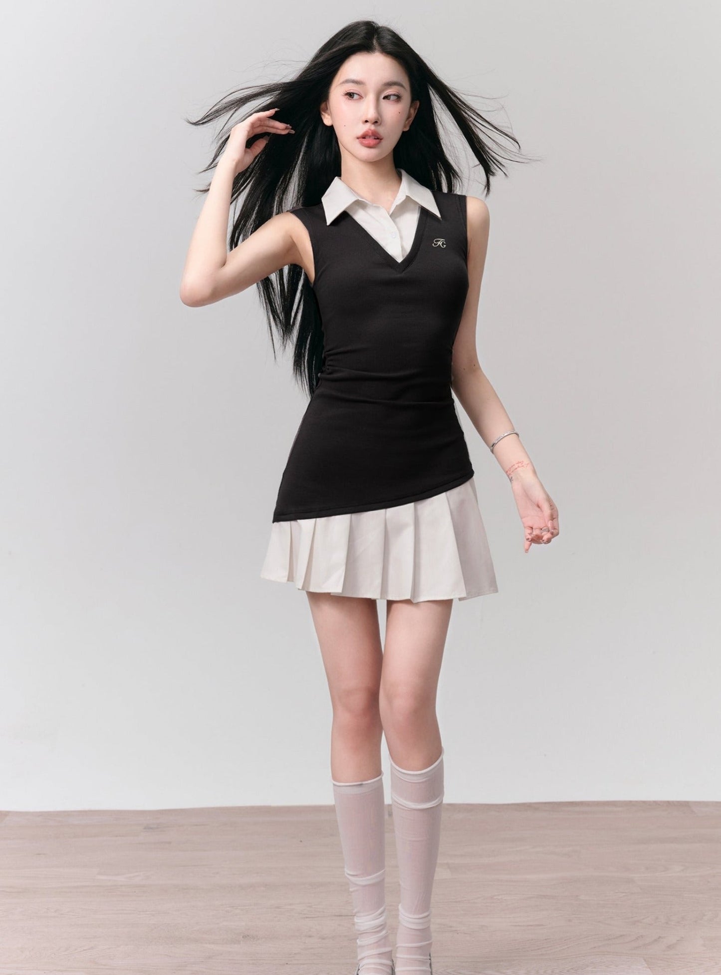 Upgrade your wardrobe with our Chic Contrast Collared Mini Dress Duo. With its stylish collared design. this dress adds a touch of sophistication to your look. Made with high-quality materials. it offers both comfort and style. Perfect for any occasion. this dress is a must-have for any fashion-forward individual.