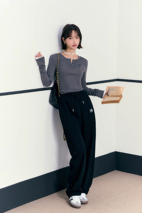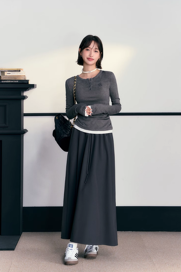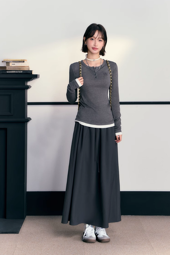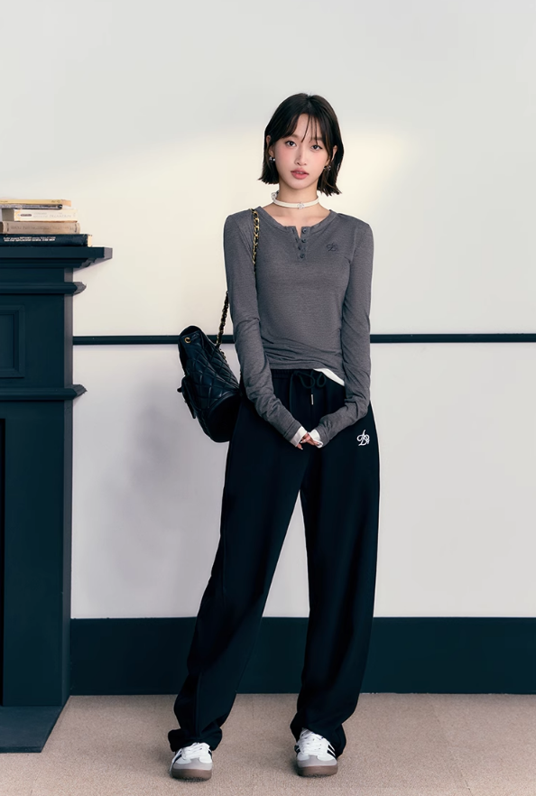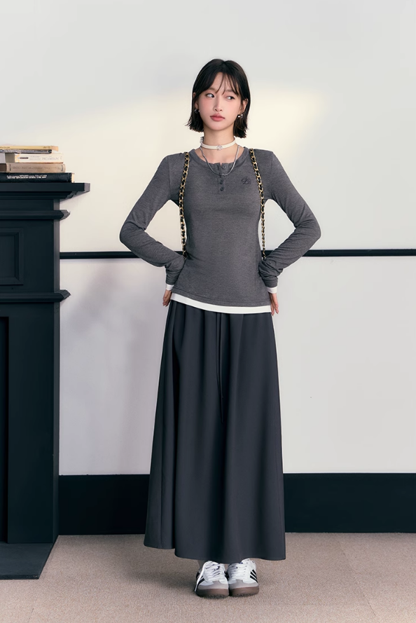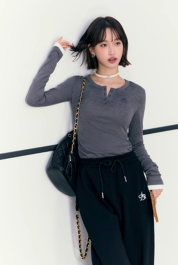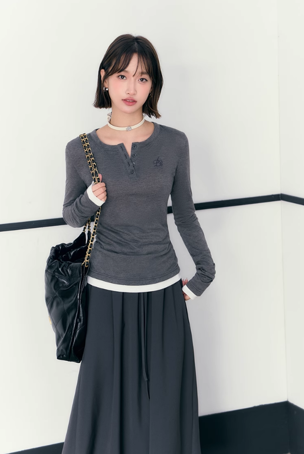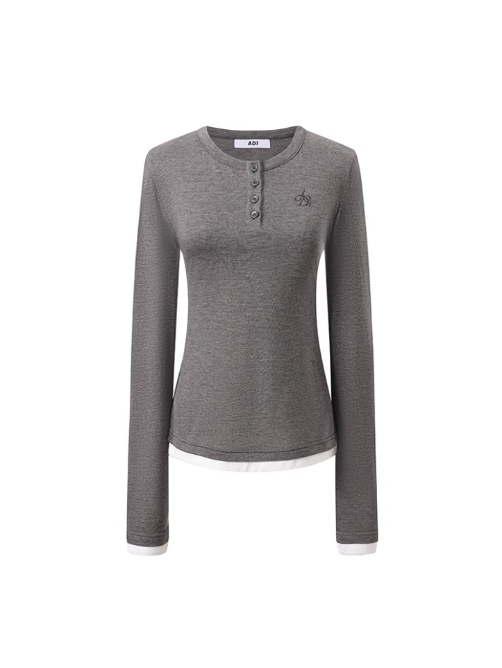 Classic Heather Gray Long Sleeve Henley Top: Fitted Women's Casual Knit Shirt with Button Placket