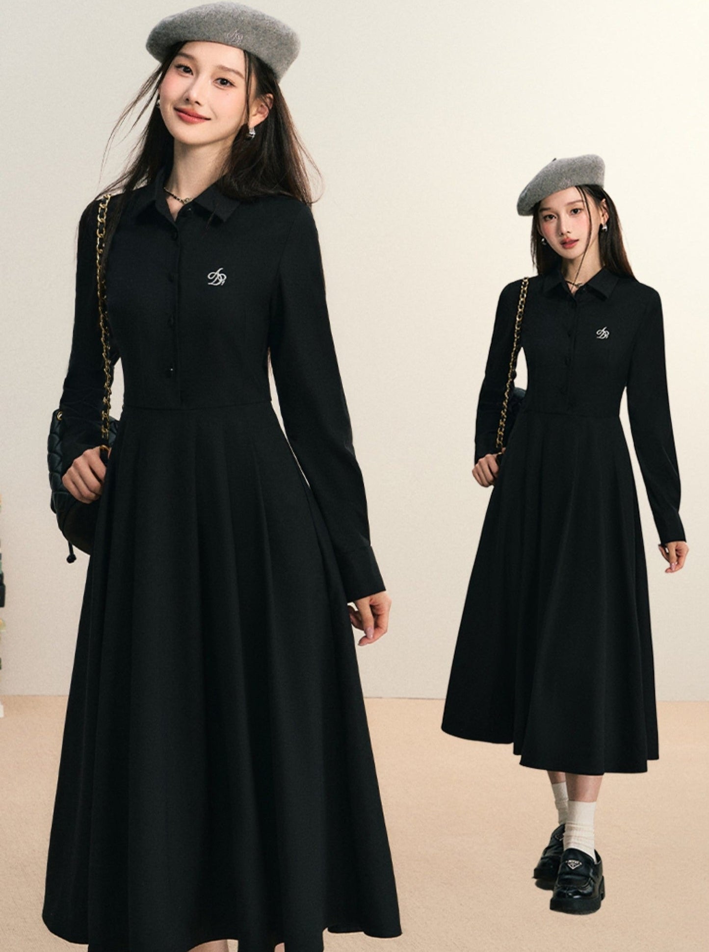 Embrace timeless elegance with our Classic Shirt Dress. Featuring a long-sleeve midi design and a pleated skirt. this dress offers effortless sophistication. The perfect choice for any occasion. whether it's a business meeting or a night out. this dress will make you stand out in style.