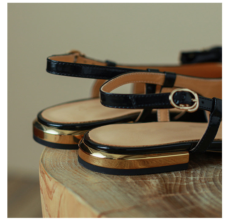 Classic Splicing Bow Low-Heel Sandals