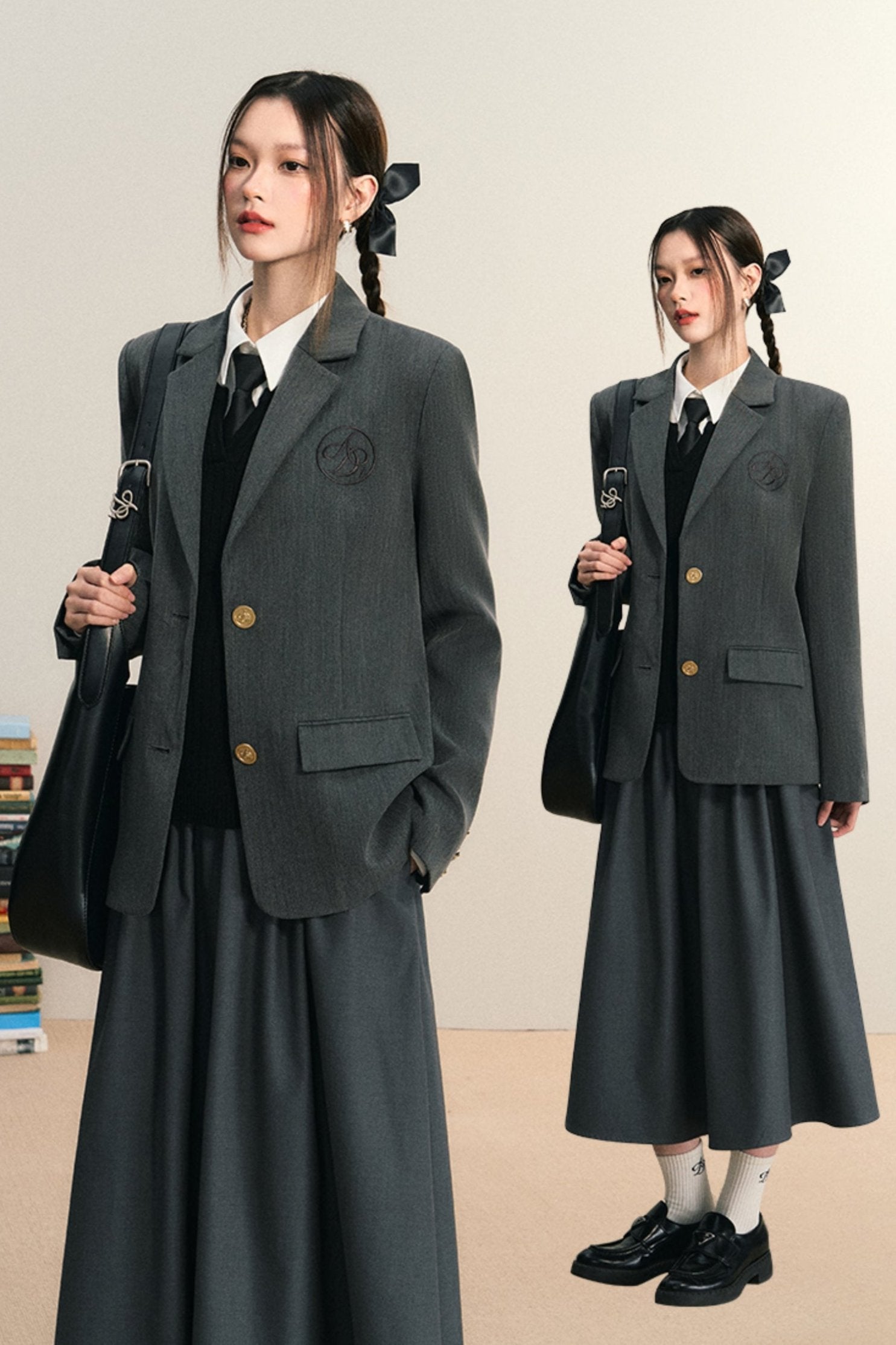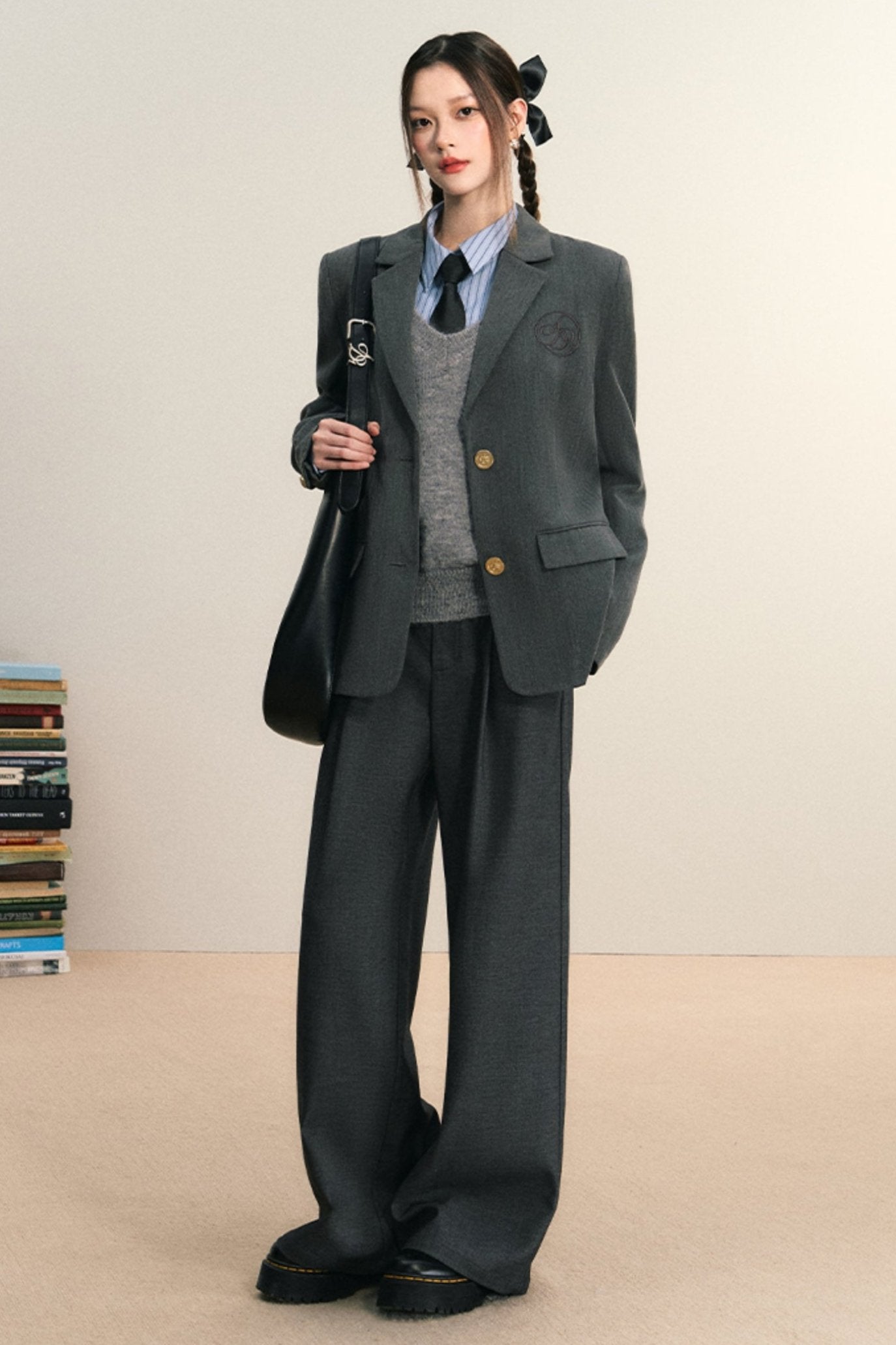 Classic Two-Button Blazer: Tailored Suit Jacket with Embroidered Logo