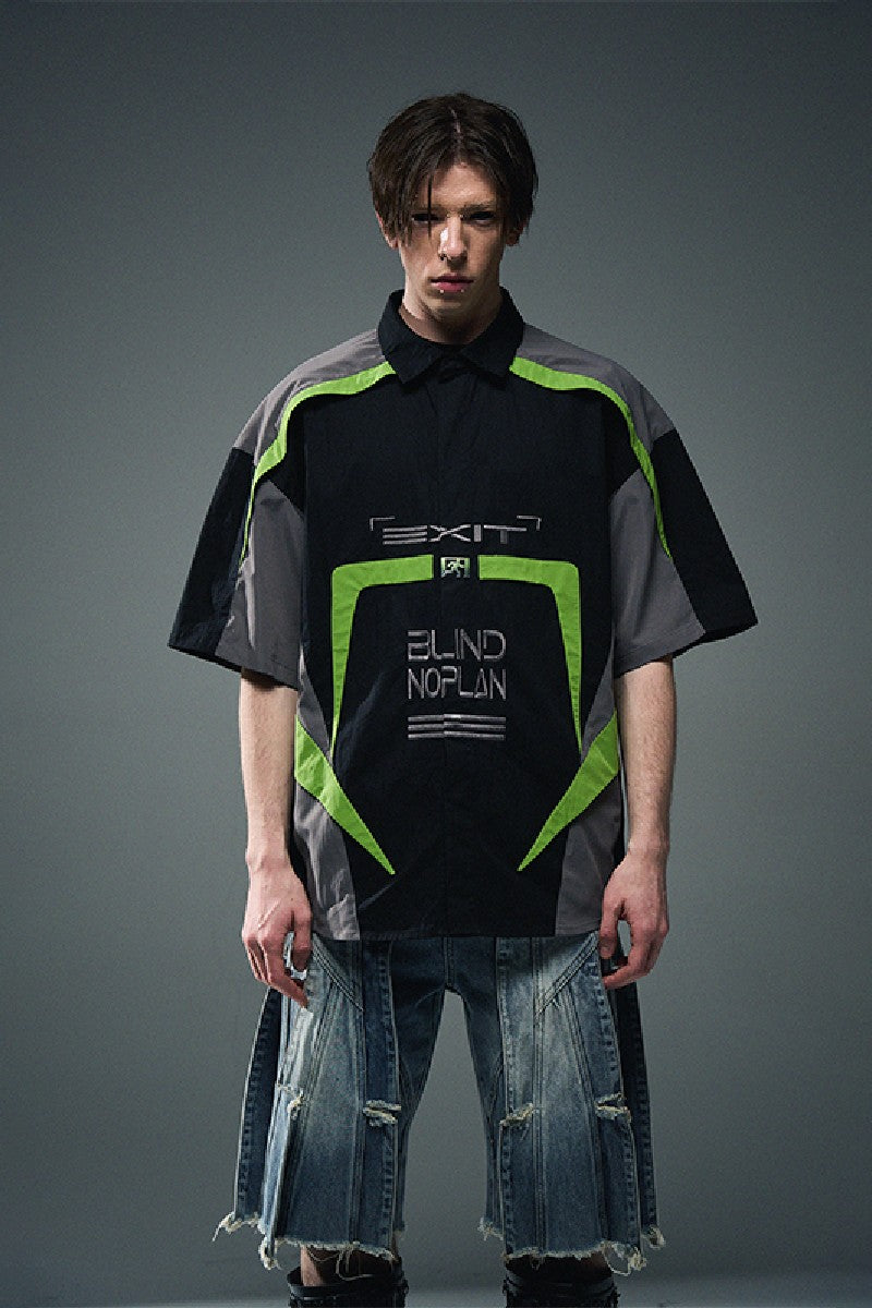Colorblock Racing Zip Heavy Embroidery T-Shirt