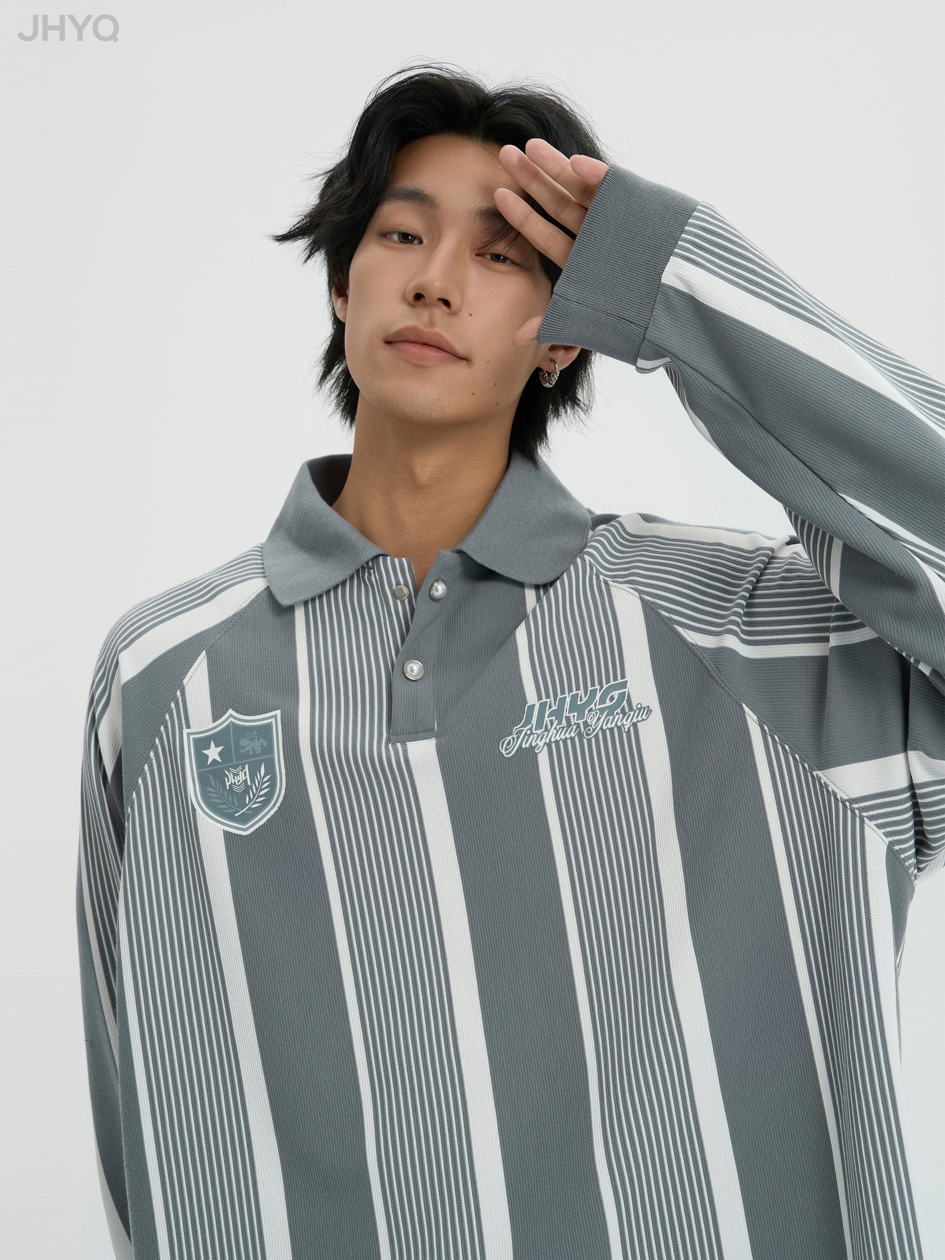 Contrast Striped Long Sleeve Polo Shirt