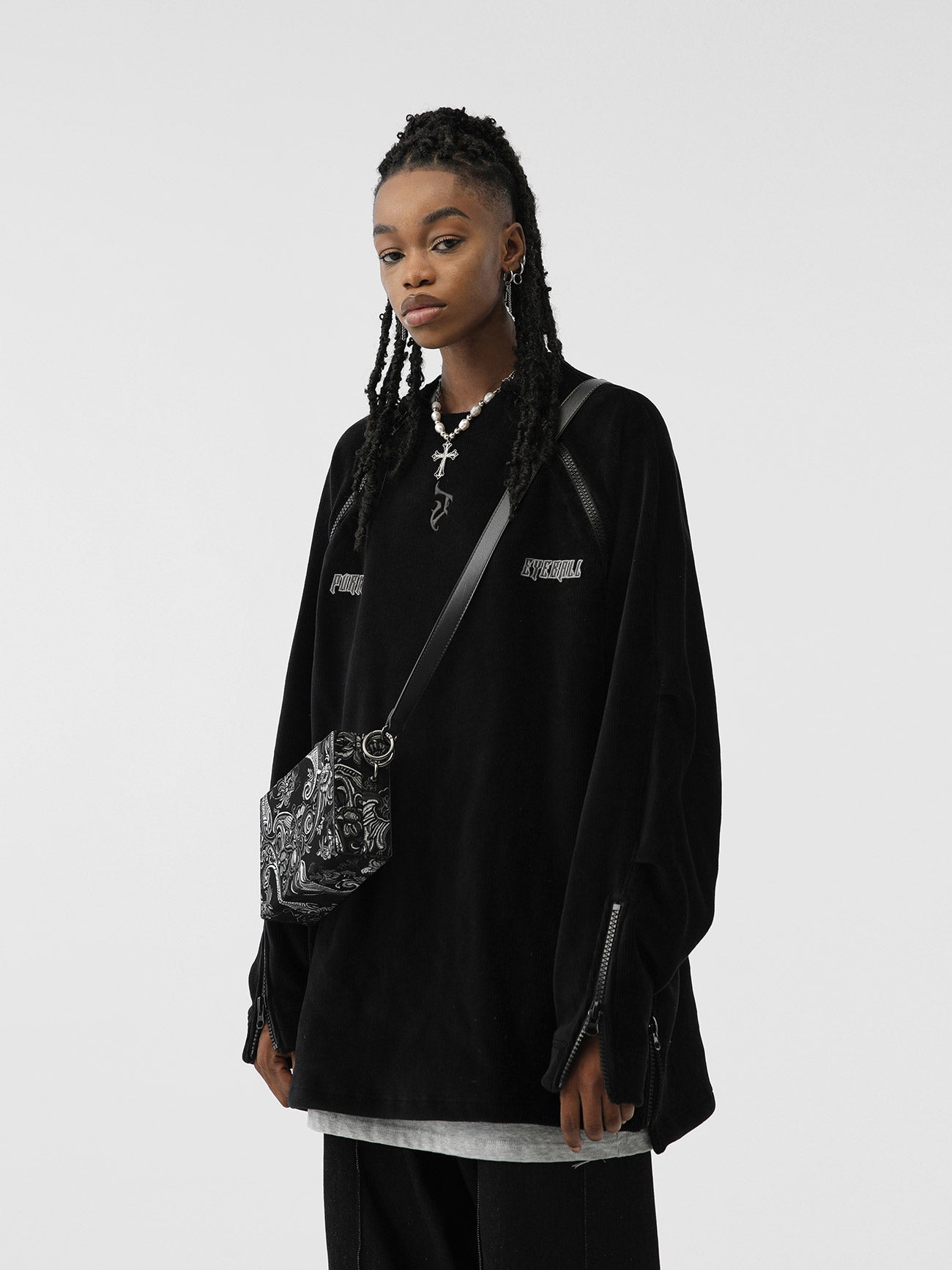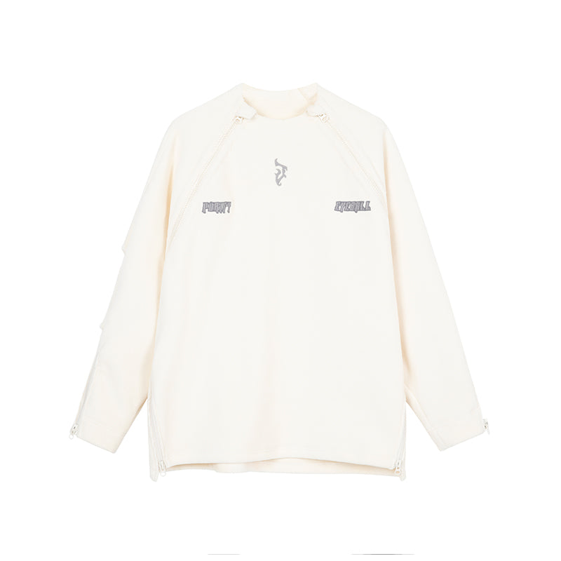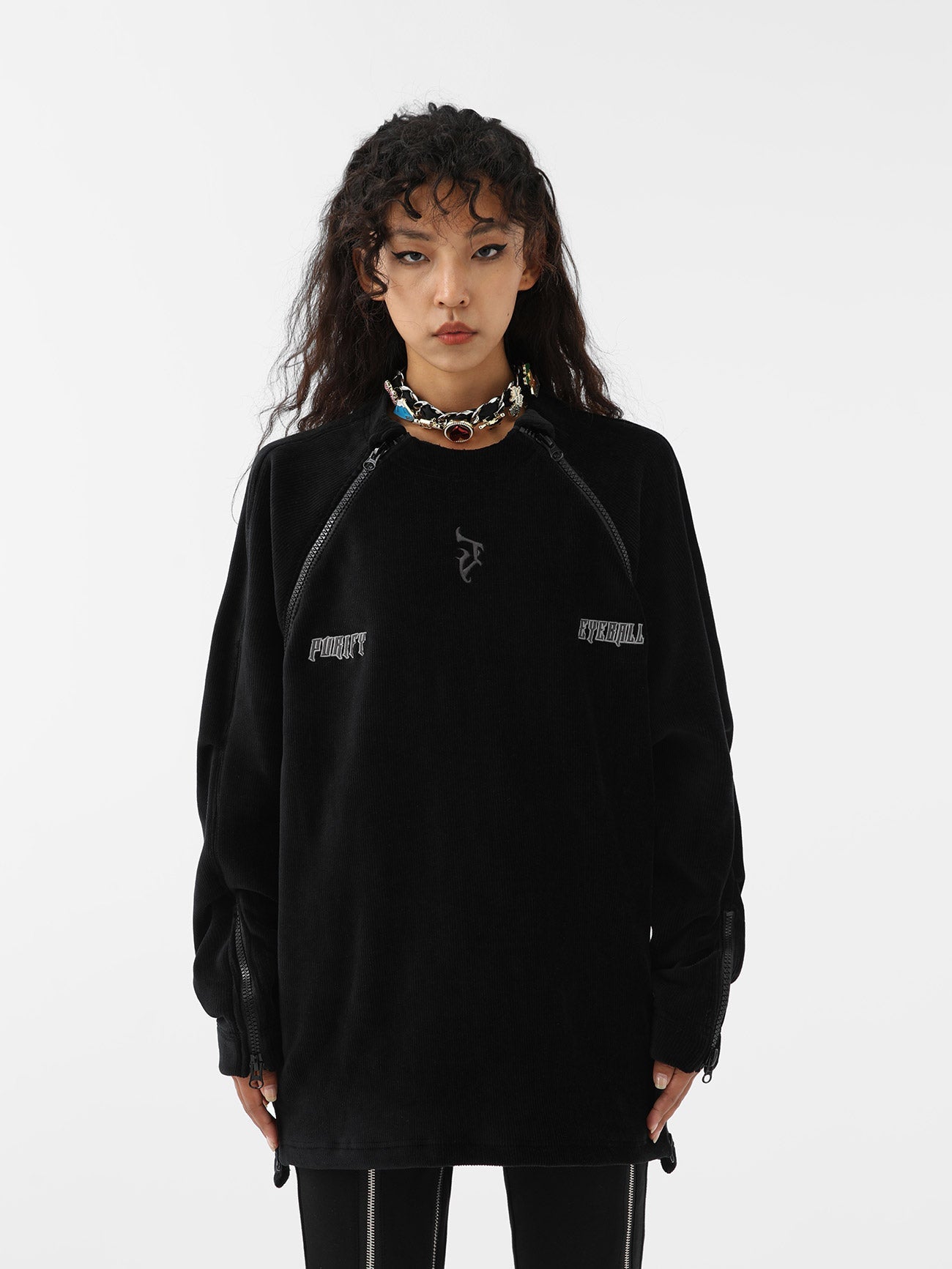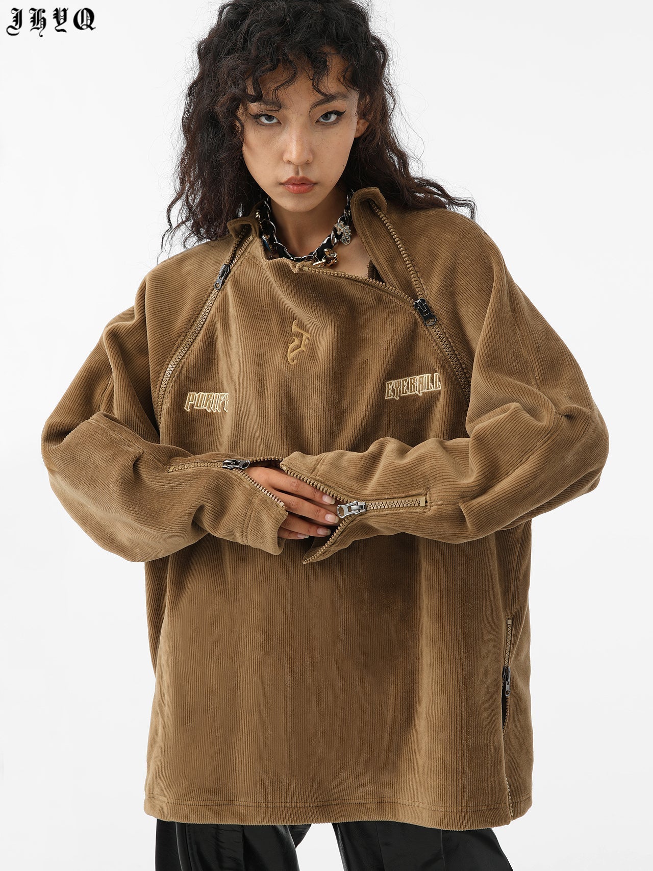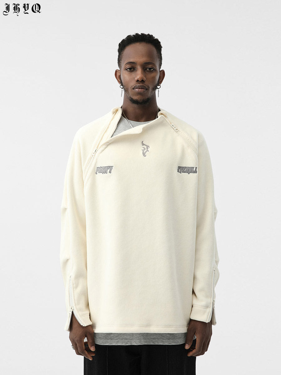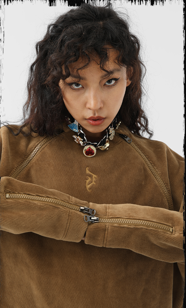 Corduroy Sweatshirt With Embroidered Neck And Zipper