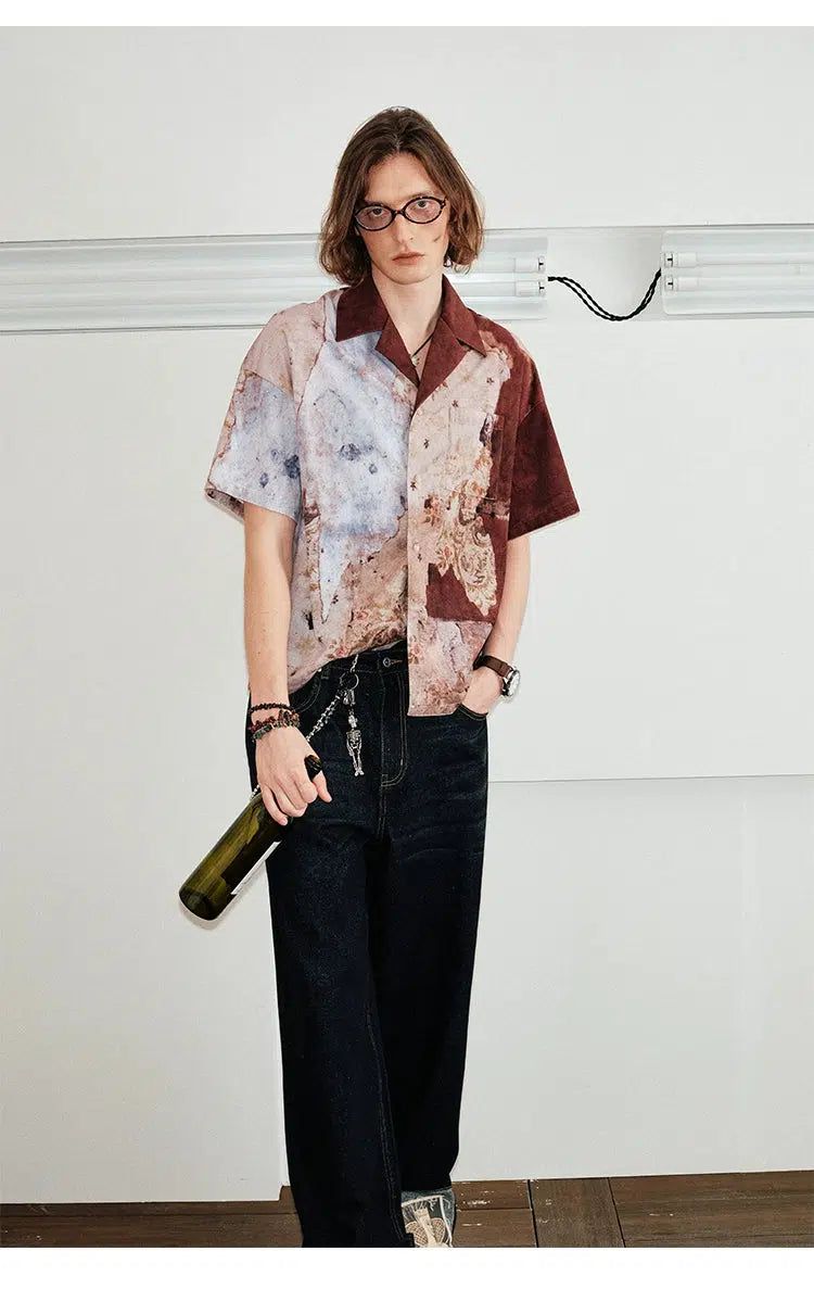 Discover the stylish and comfortable Corduroy Shirt with Floral Wallpaper Print. Perfect for any occasion. this unique shirt combines classic corduroy with a vibrant floral design to create a standout piece in your wardrobe.