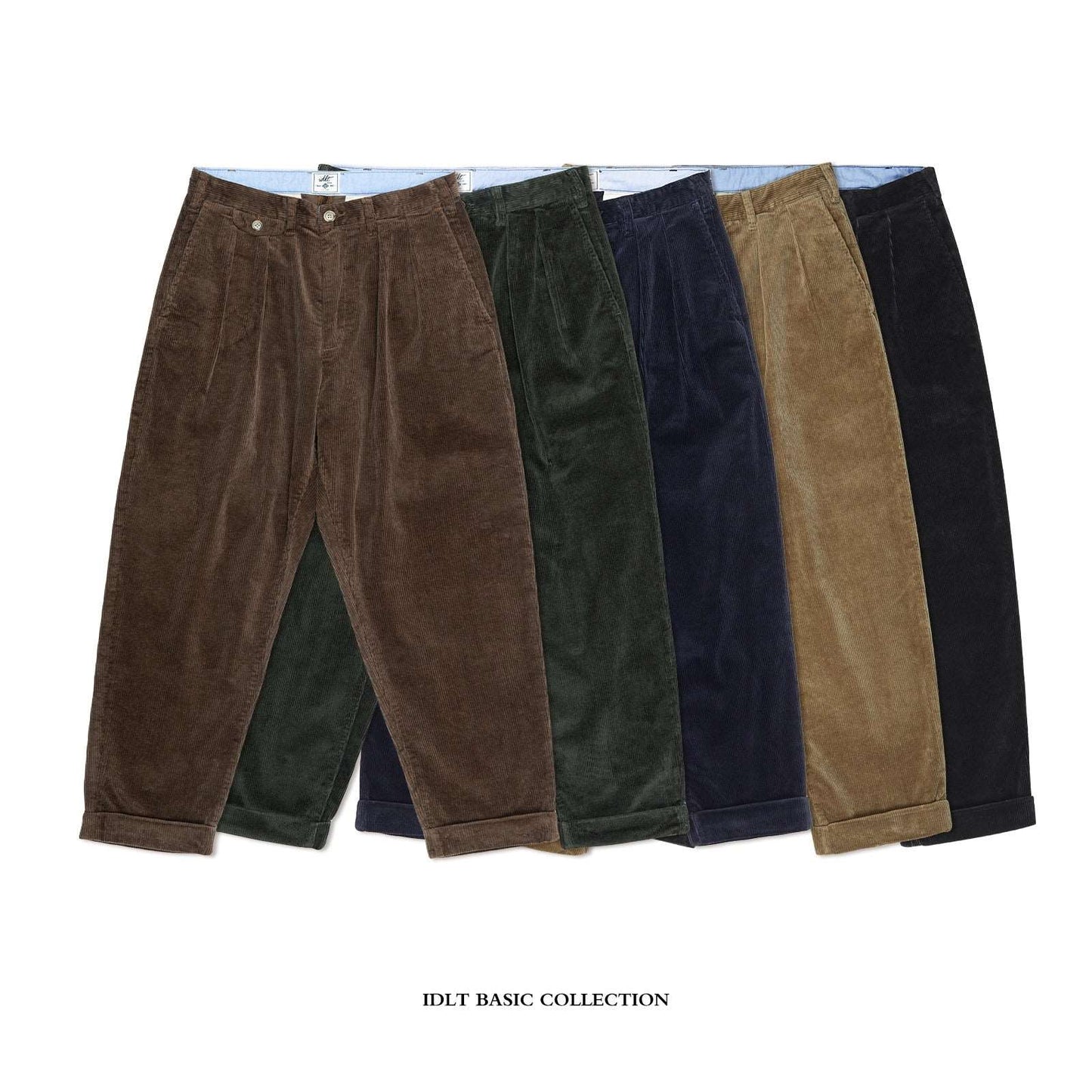 Introducing the Corduroy Trousers v3 from IDLT's Autumn/Winter '22 collection. Available in navy blue. brown. army green. khaki. and black. these unisex trousers are crafted from 98% cotton and 2% spandex for an oversized fit. Perfect for any occasion. they can be machine or hand washed under 40°C—no bleach needed. Iron on low temperature inside out and lay flat to dry. Model wears Small (1.76m/60kg).