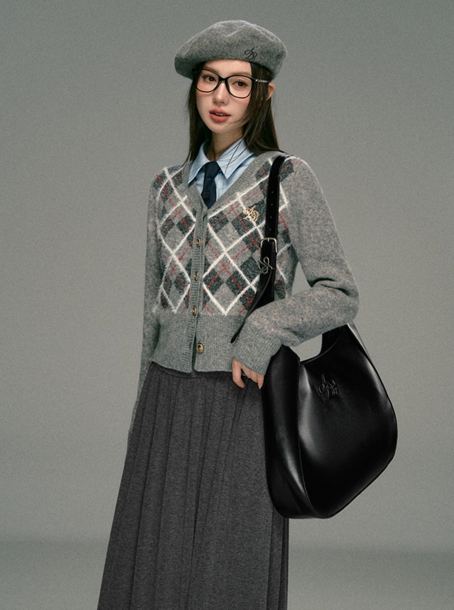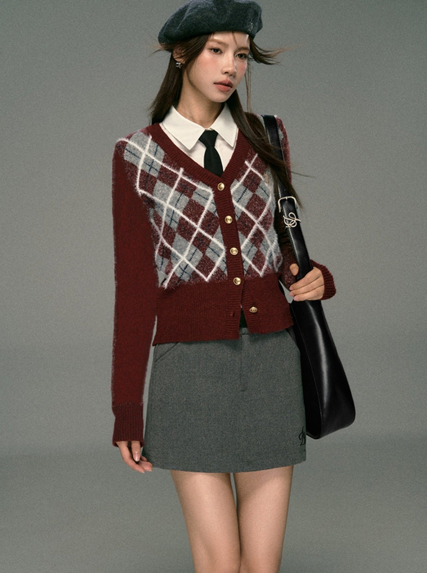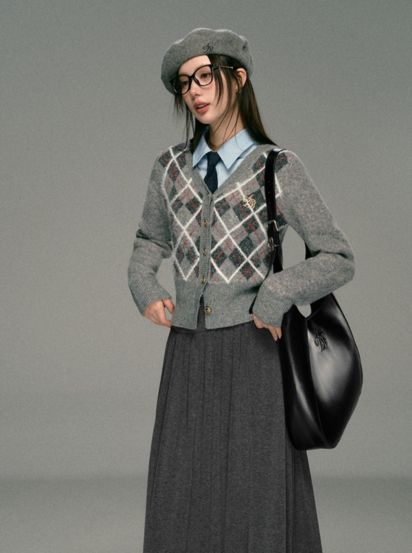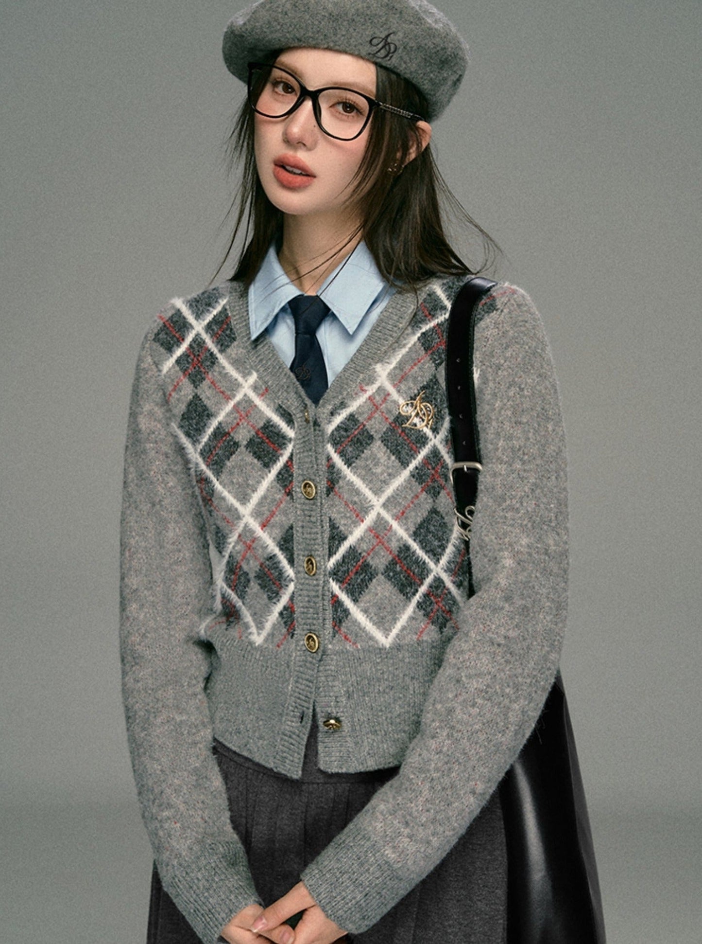 Cozy Argyle Cardigan: Vintage-Inspired Cropped Sweater