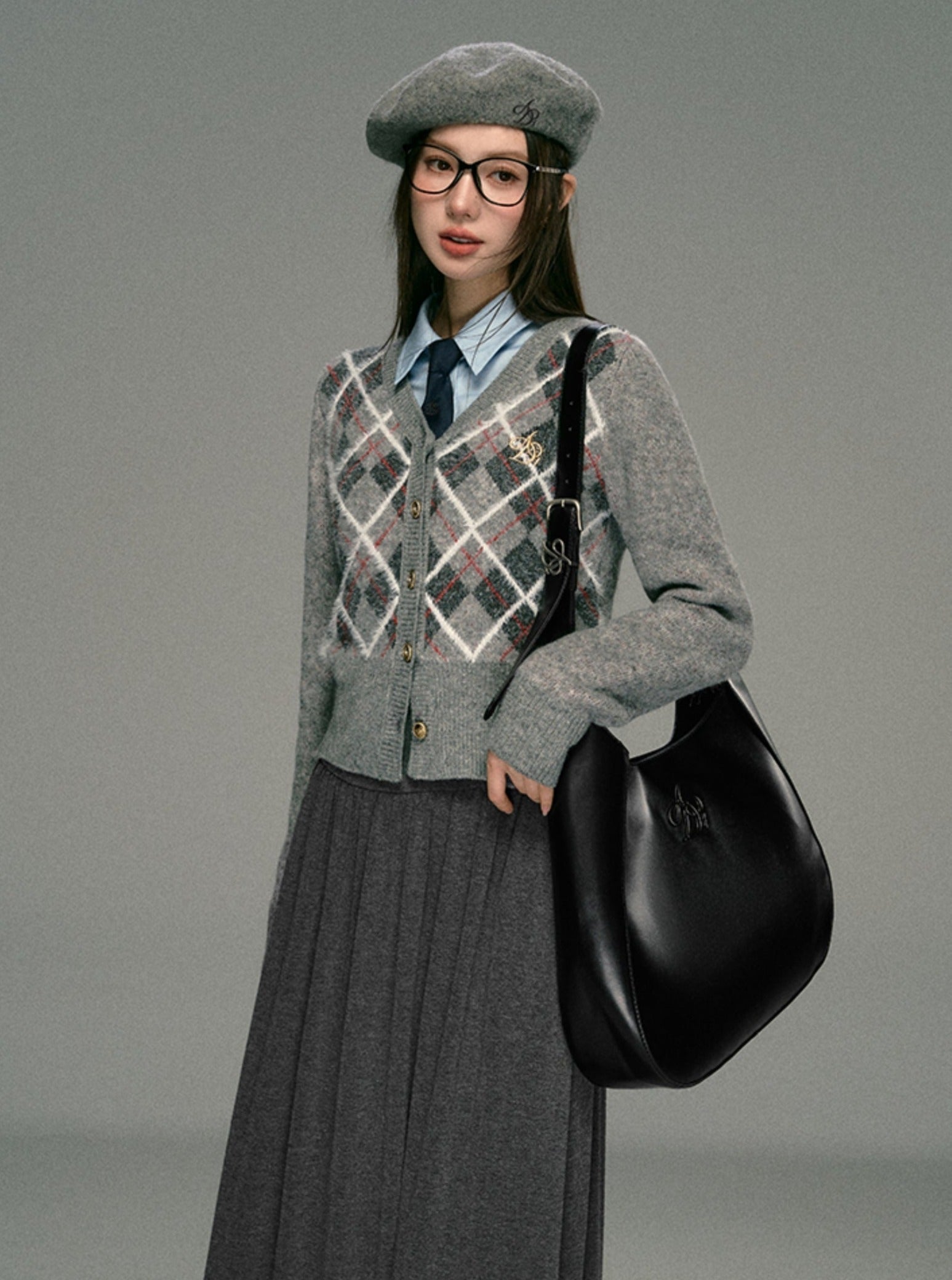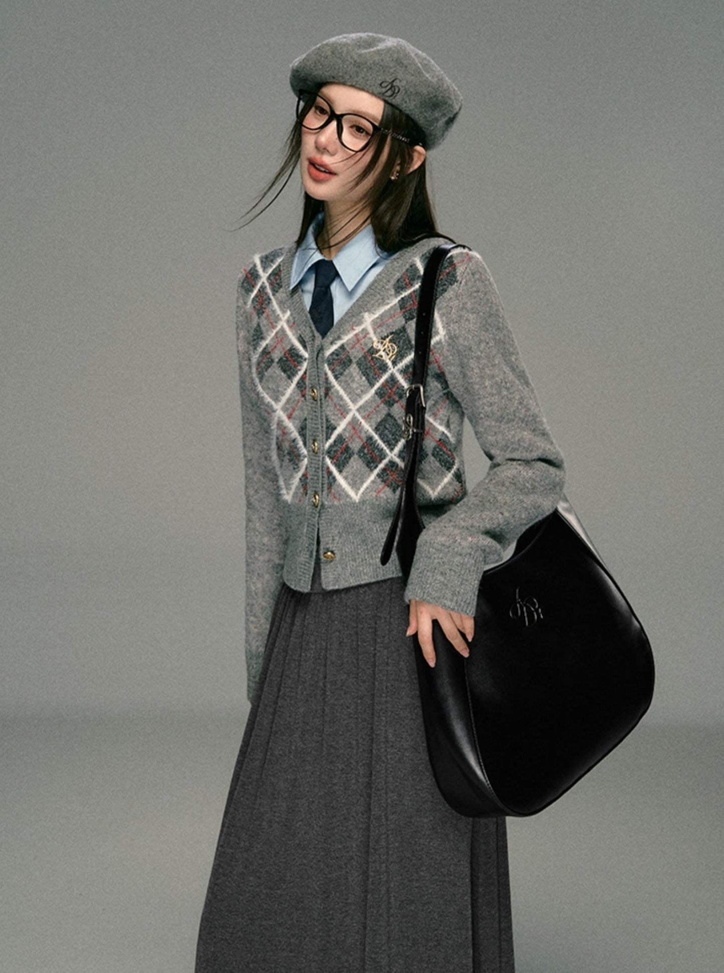 This cozy argyle cardigan is a vintage-inspired cropped sweater that is perfect for adding a touch of warmth and style to any outfit. Its classic argyle pattern brings a timeless charm. while the cropped style adds a modern flair. Made from soft and comfortable material. it is both functional and fashionable. Perfect for staying warm and stylish all season long.