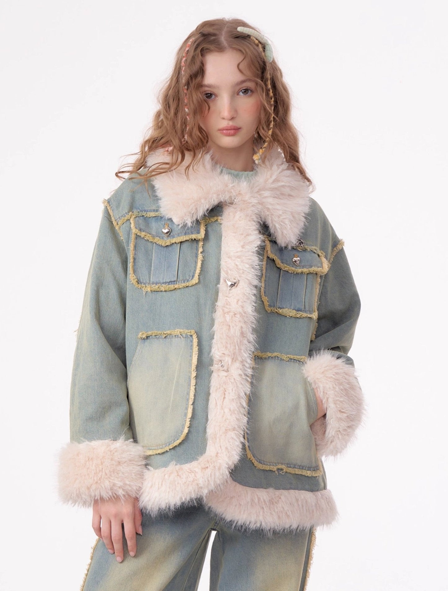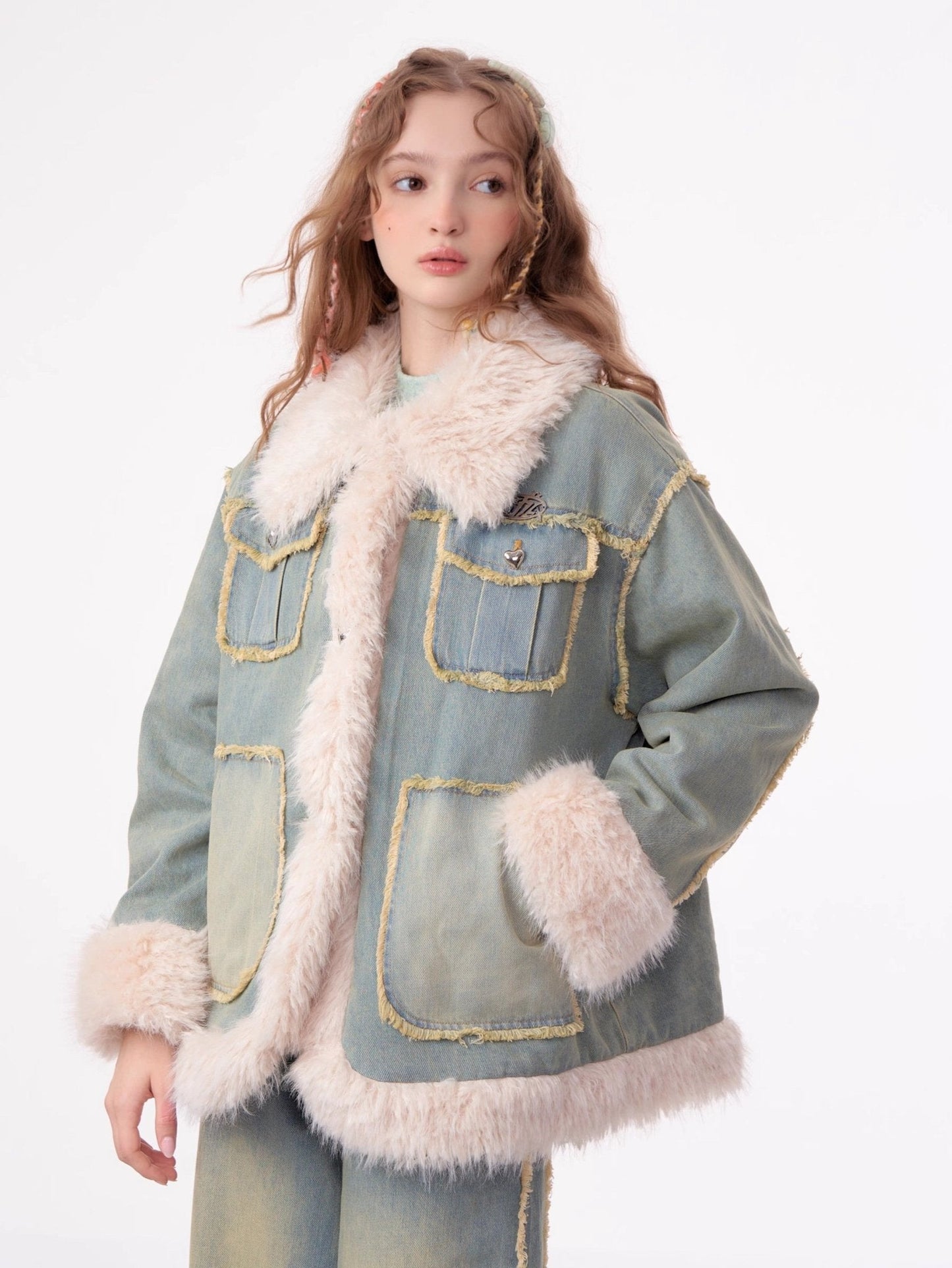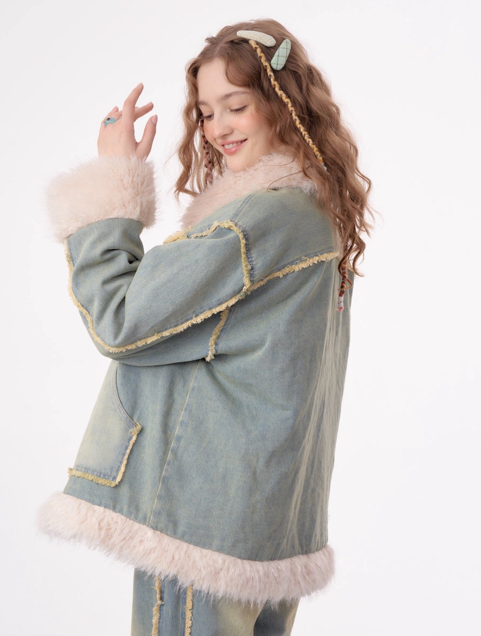 - Style: Denim jacket with faux fur lining
