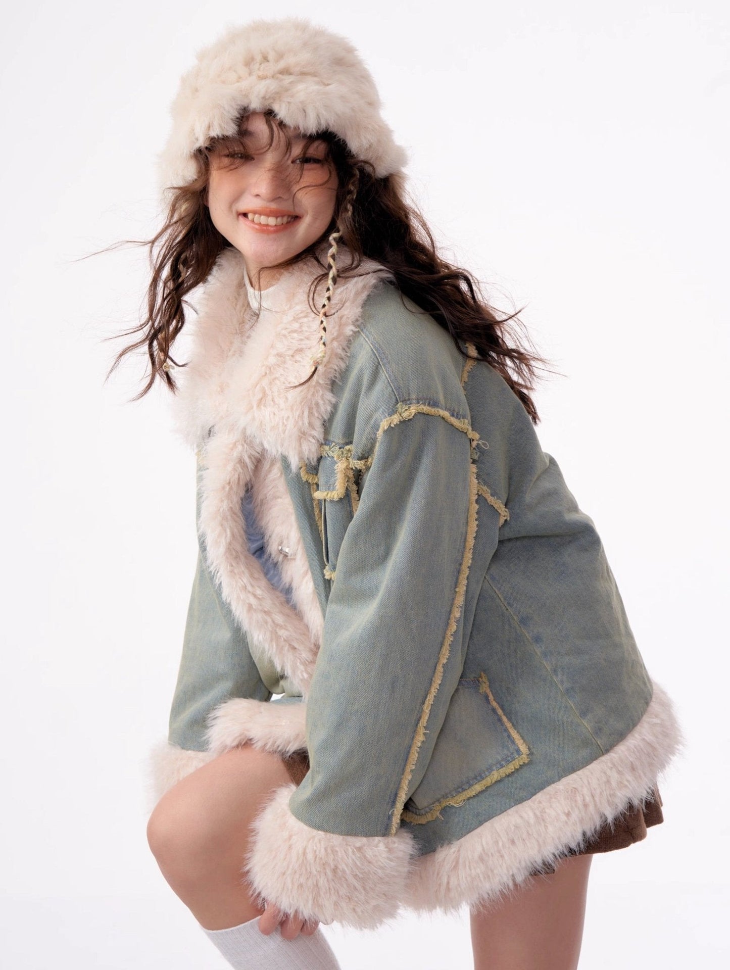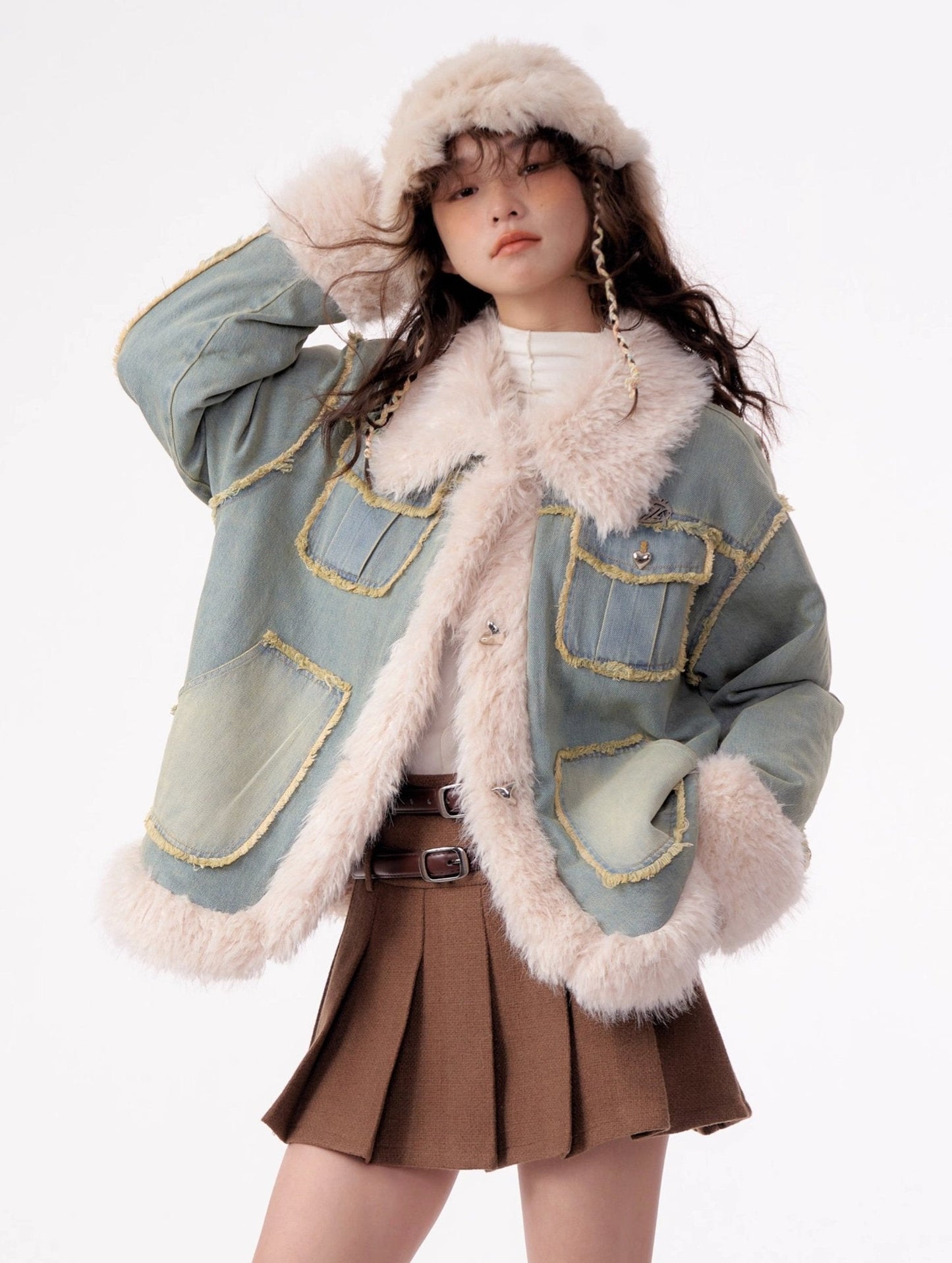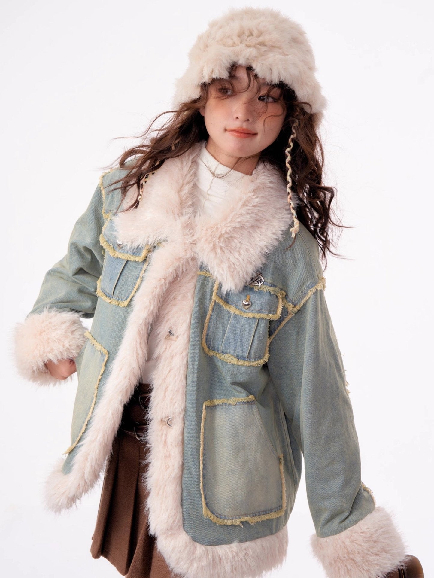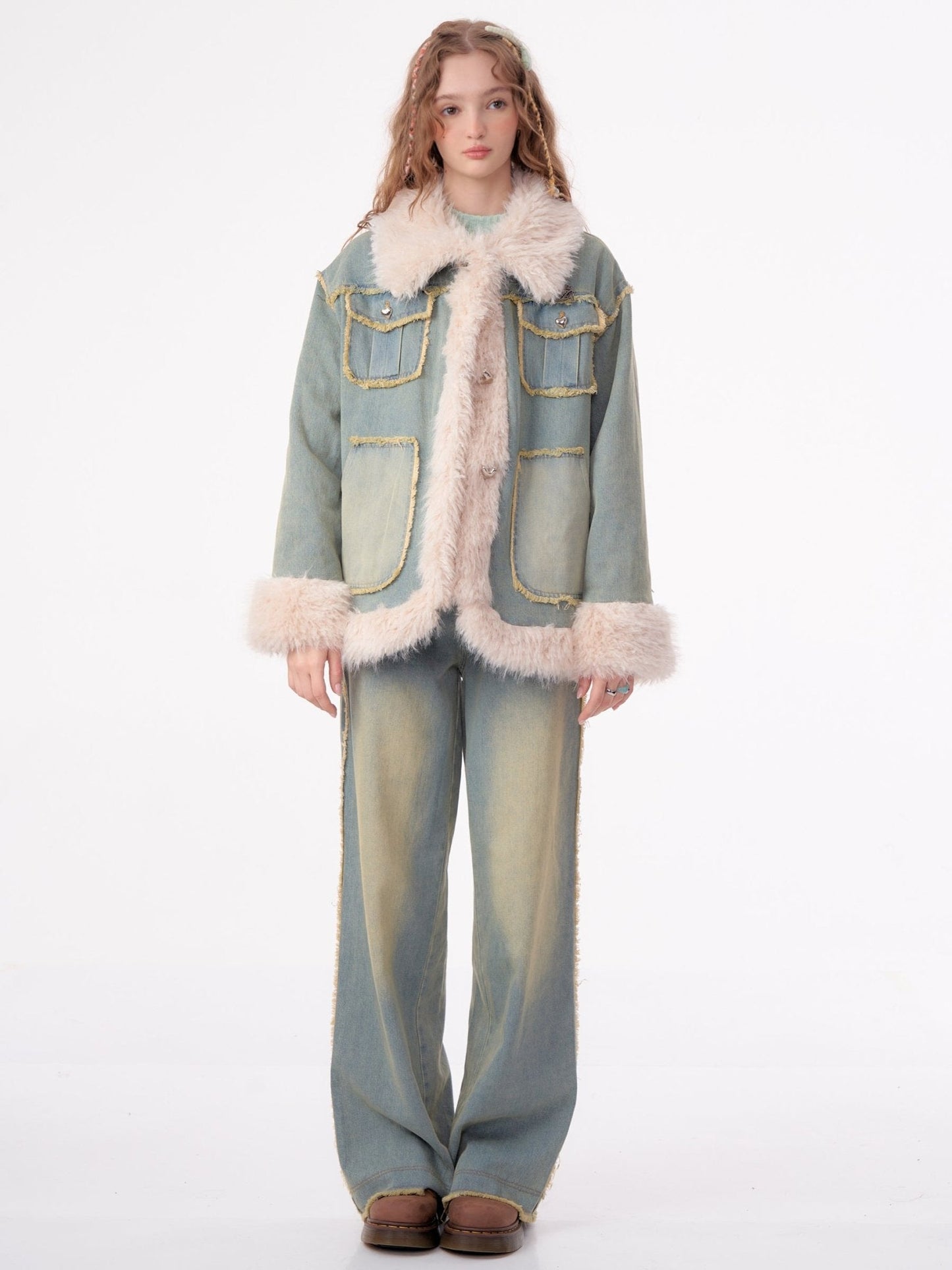 - Style: Denim jacket with faux fur lining