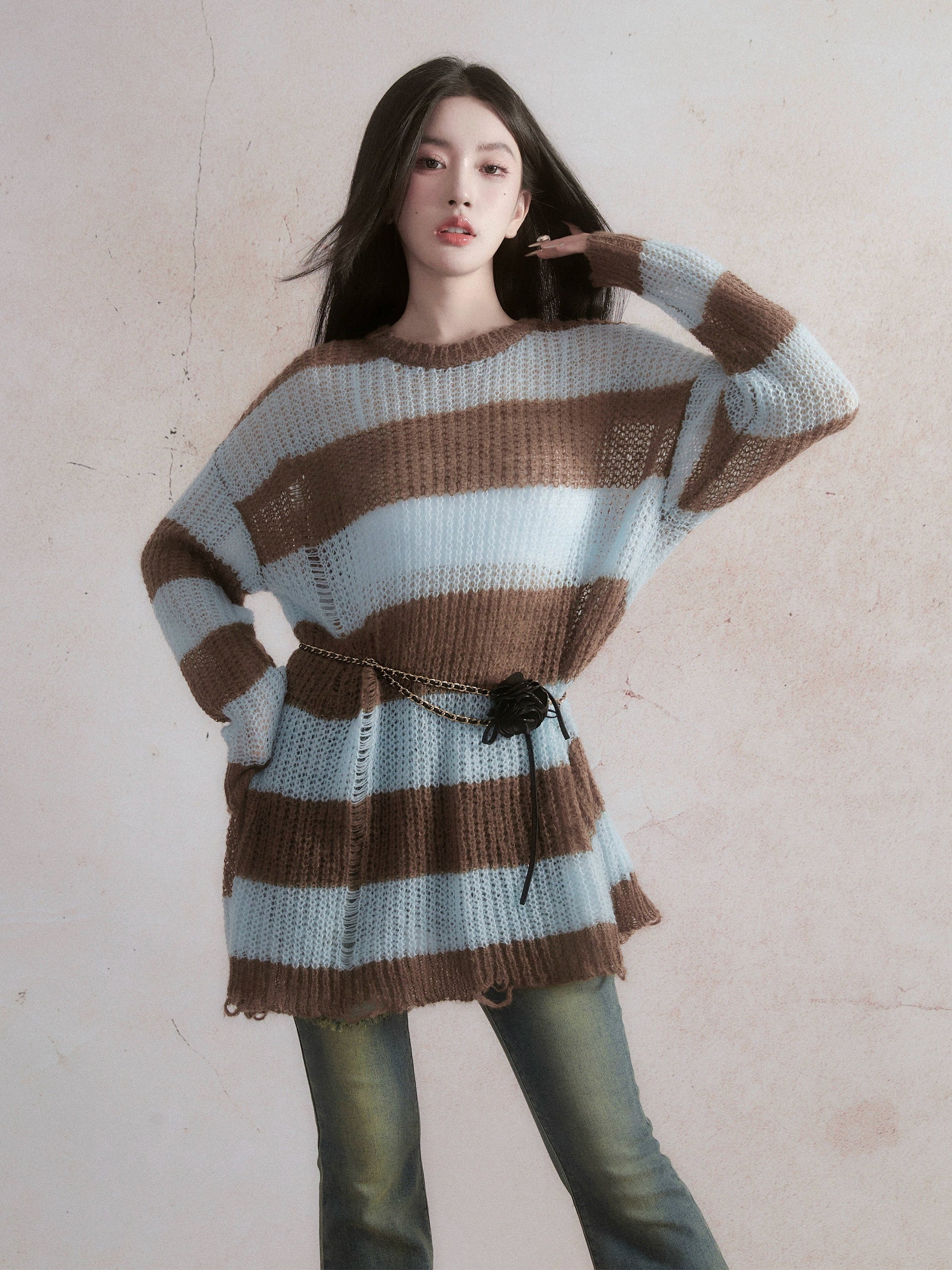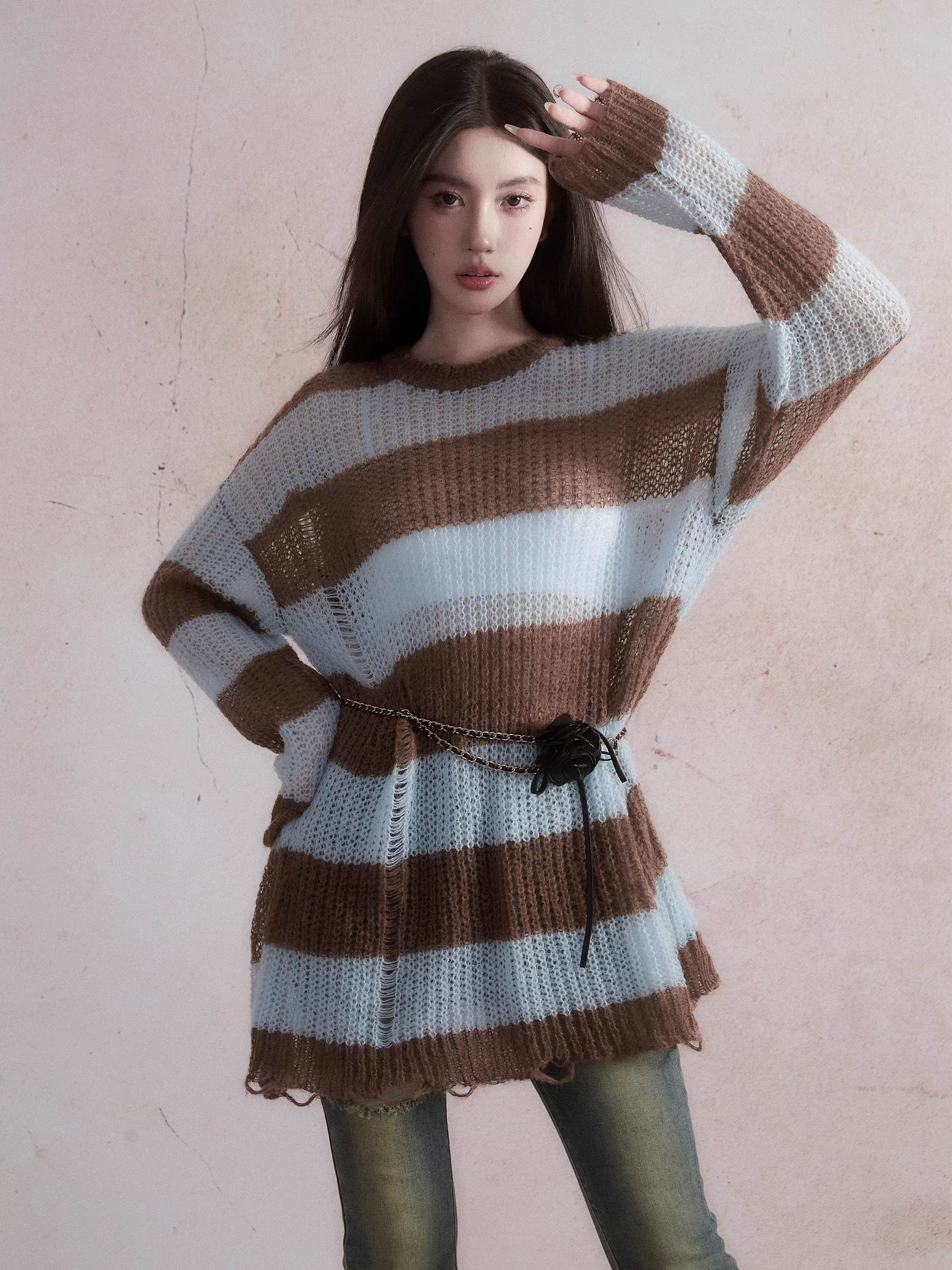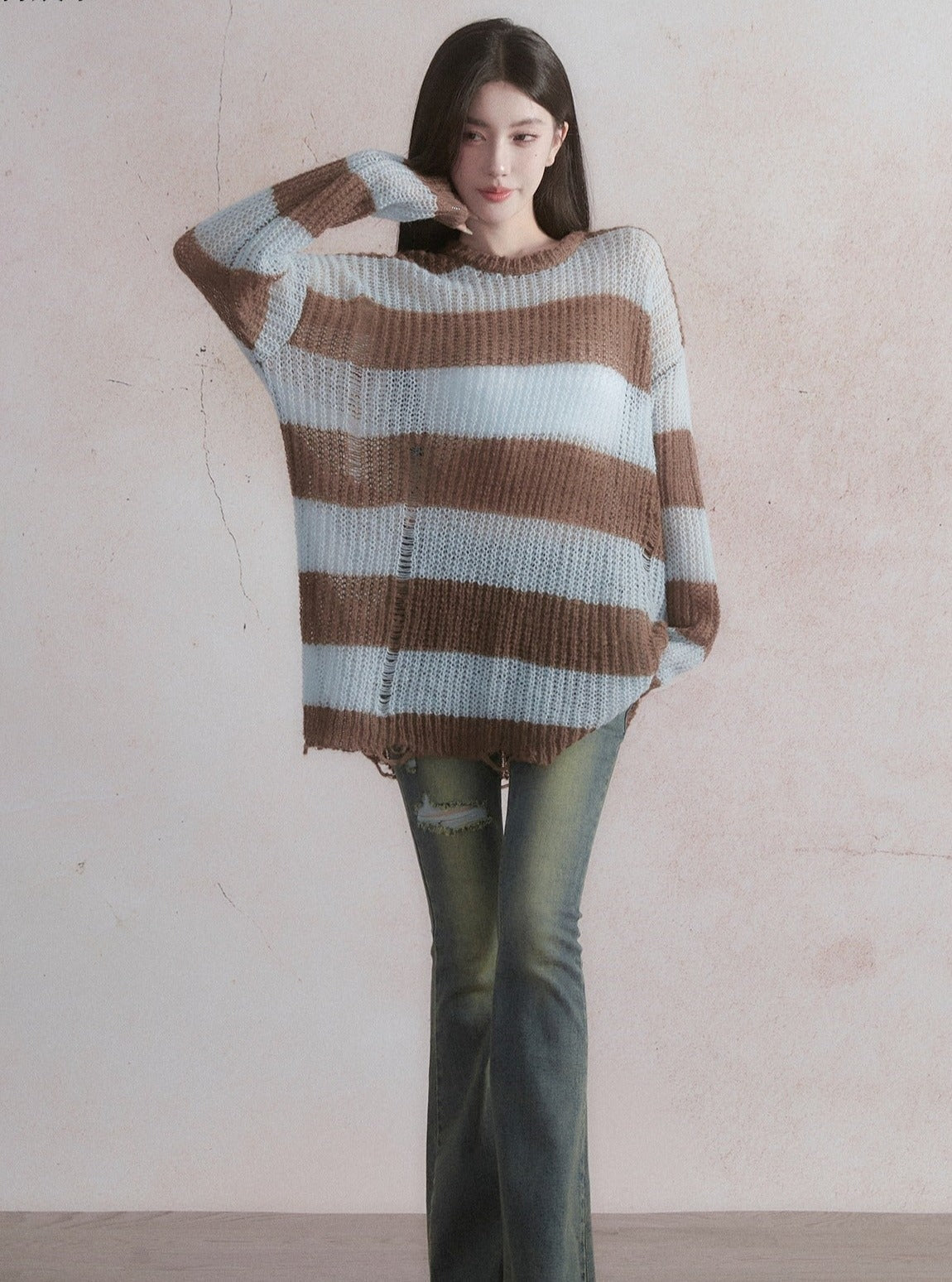 This Cozy Stripes Oversized Knit Pullover is made with soft and comfortable fabric. perfect for keeping you warm during the colder months. The oversized fit is both trendy and comfortable. while the striped pattern adds a touch of style. Stay cozy and stylish with this must-have pullover.