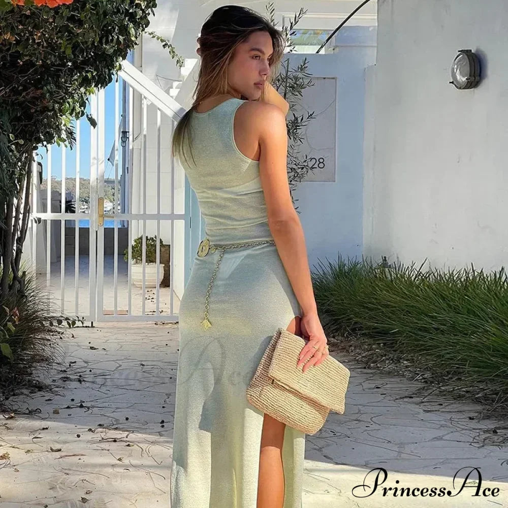 Sleeveless Split Chic Rave Festival See Through Glitter Midi Dress