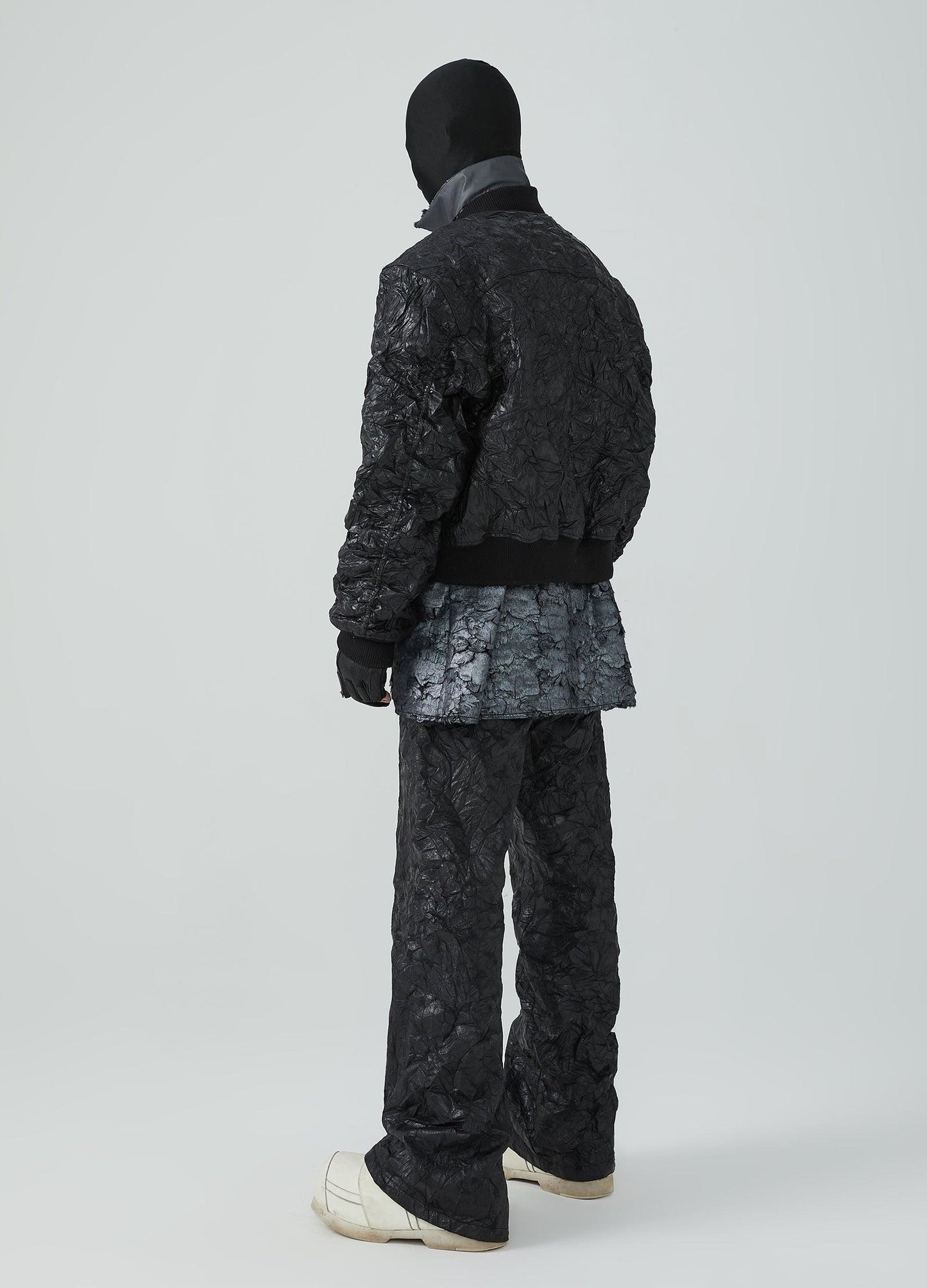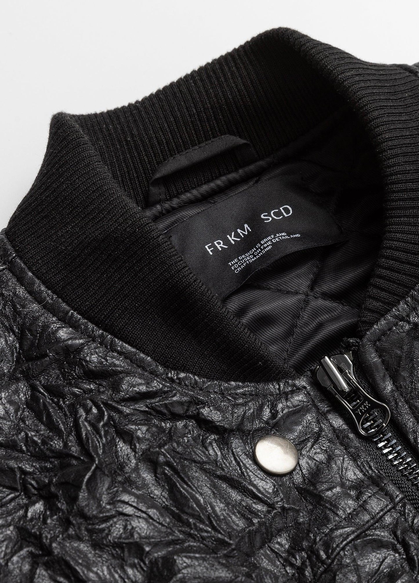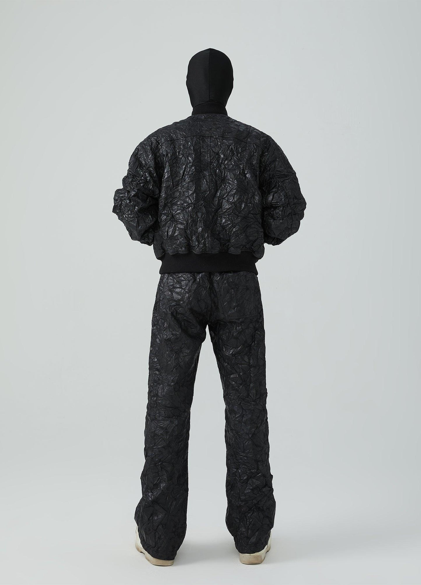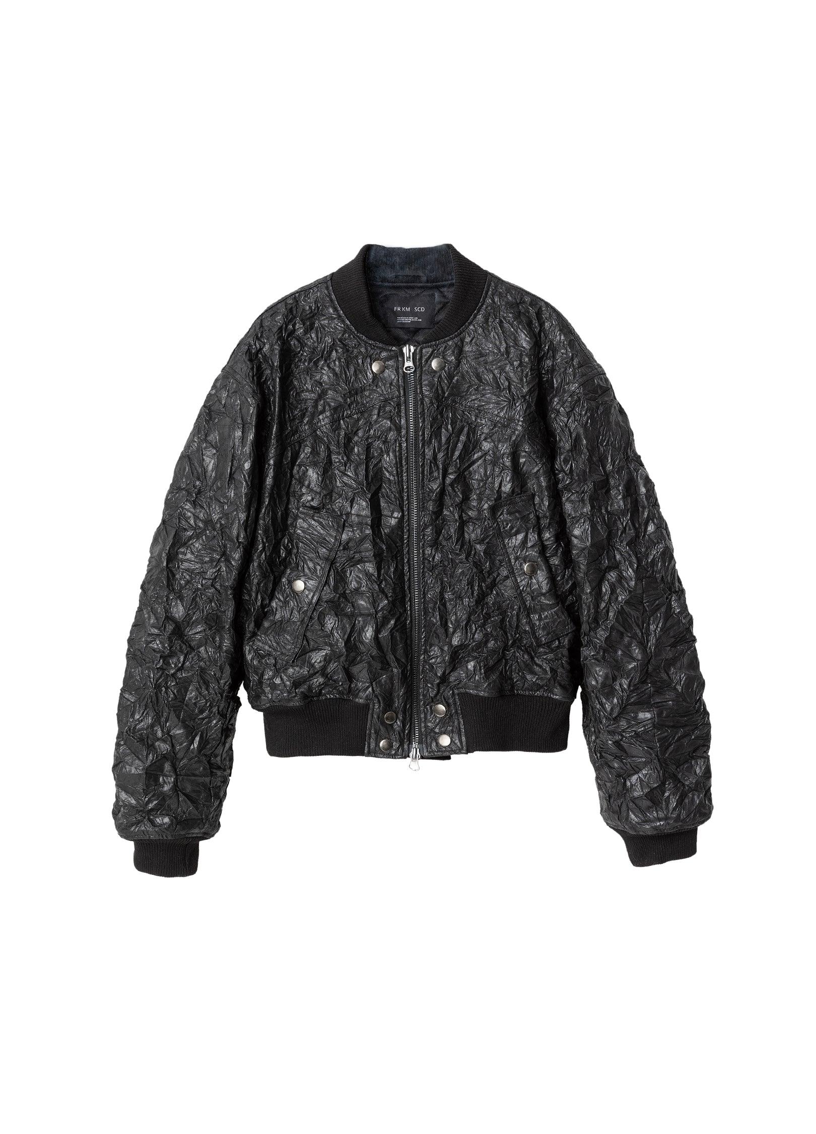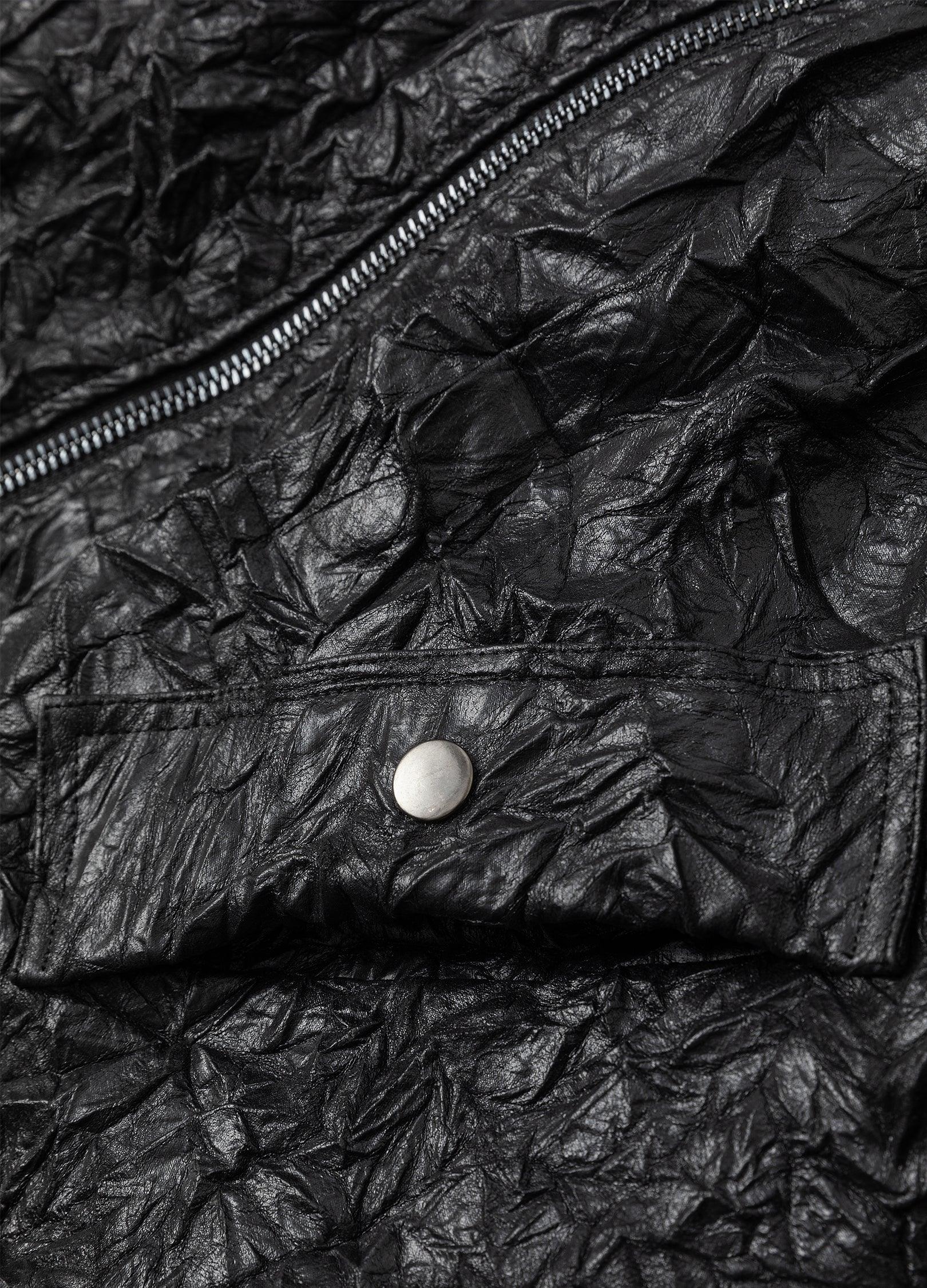 Step up your fashion game with our Cracked Patent Leather Bomber Jacket. This cropped fitting bomber jacket features a high collar neckline. tight elastic bottom hem. and extended boxy sleeves. Crafted from distressed cracked PU leather. it boasts a patent. glossy finish. Perfect for autumn and winter. this unisex jacket is equipped with custom metal zippers. Available in sizes from Small to Extra Large. Model (175cm) is wearing a size Medium.