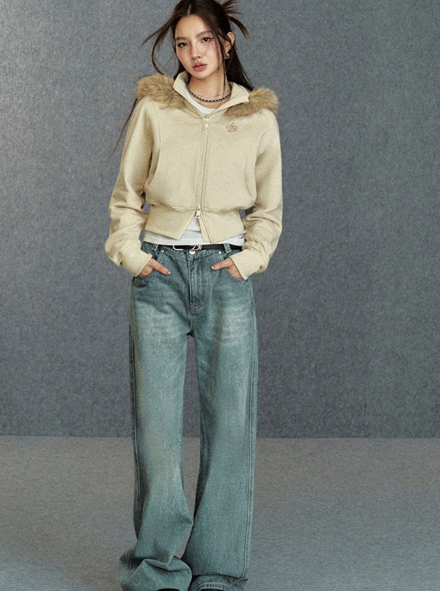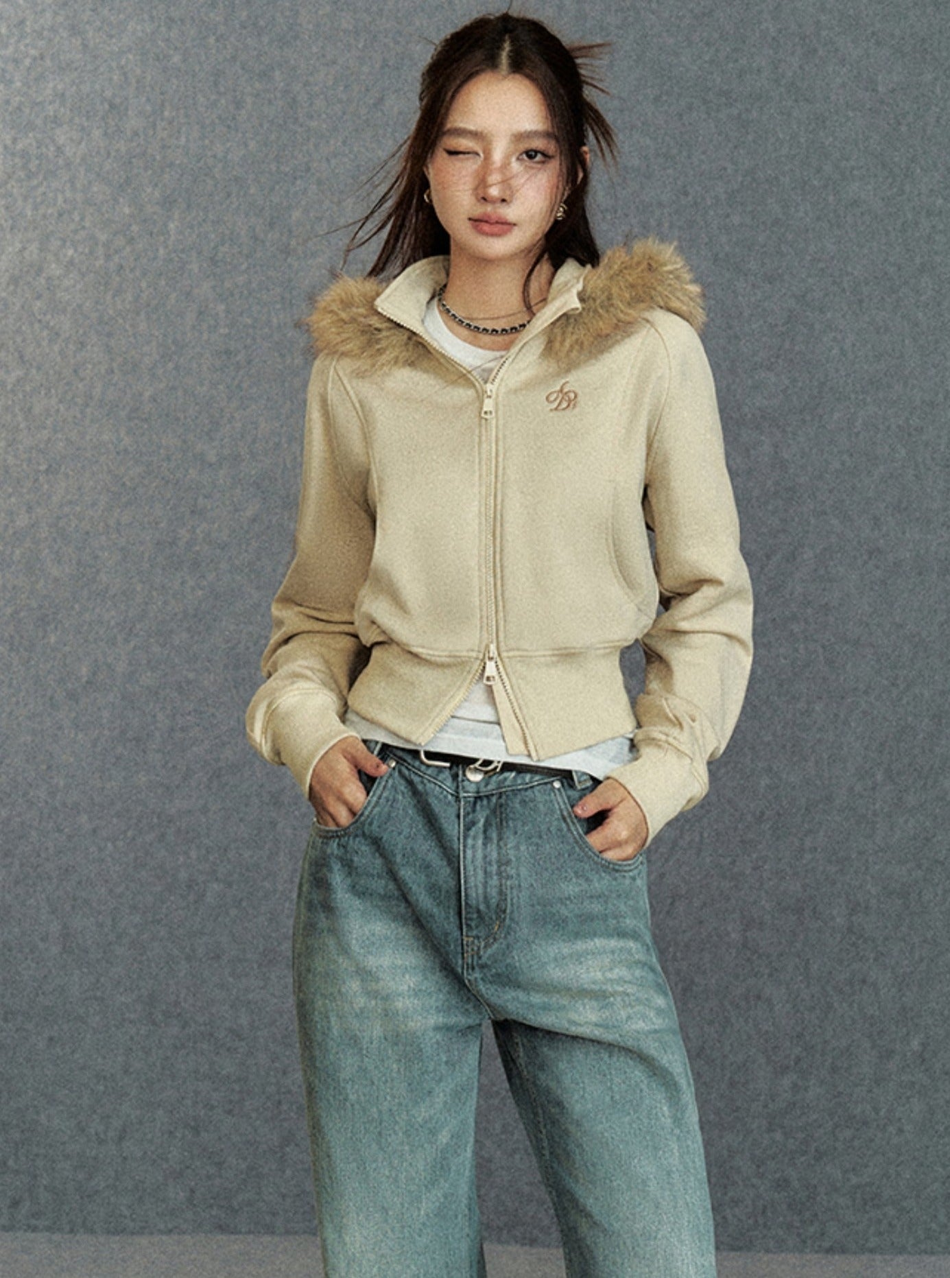 This Cropped Fur-Trimmed Hoodie is the perfect addition to any wardrobe. Made of high-quality materials. this zip-up sweatshirt features a luxurious fur trim and embroidered logo. providing both style and warmth. Stay on-trend with this chic and versatile piece.